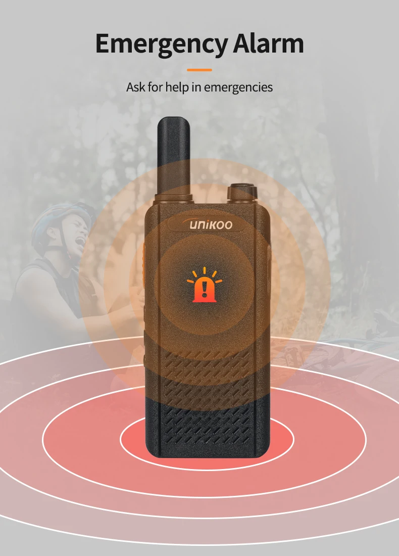 In the event of an emergency, activating the emergency alarm is a convenient way to ask for help. Long pressing the down key of the radio can turn on the alarm.
