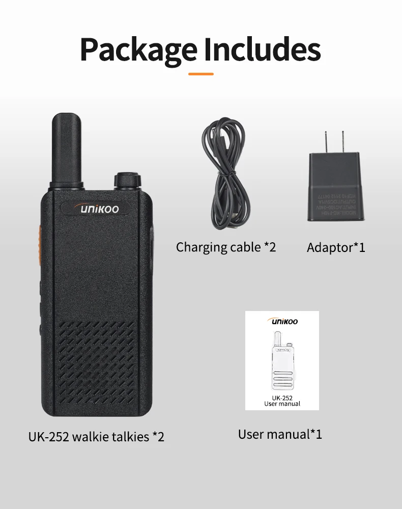 Unikoo UK252 FRS two way radio does not require a license and is extremely convenient to use, allowing you to start using them right away, straight out of the box