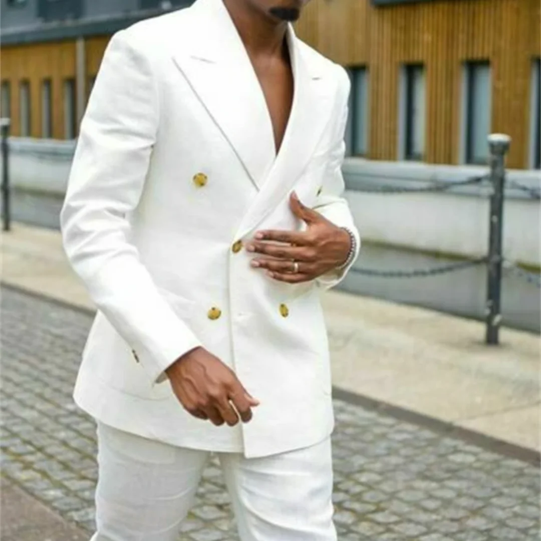 2 Piece New Ivory Men Tuxedos Business Suit Groom Double Breasted Groomsman Prom Wedding Party Formal Set Jacket And Pants