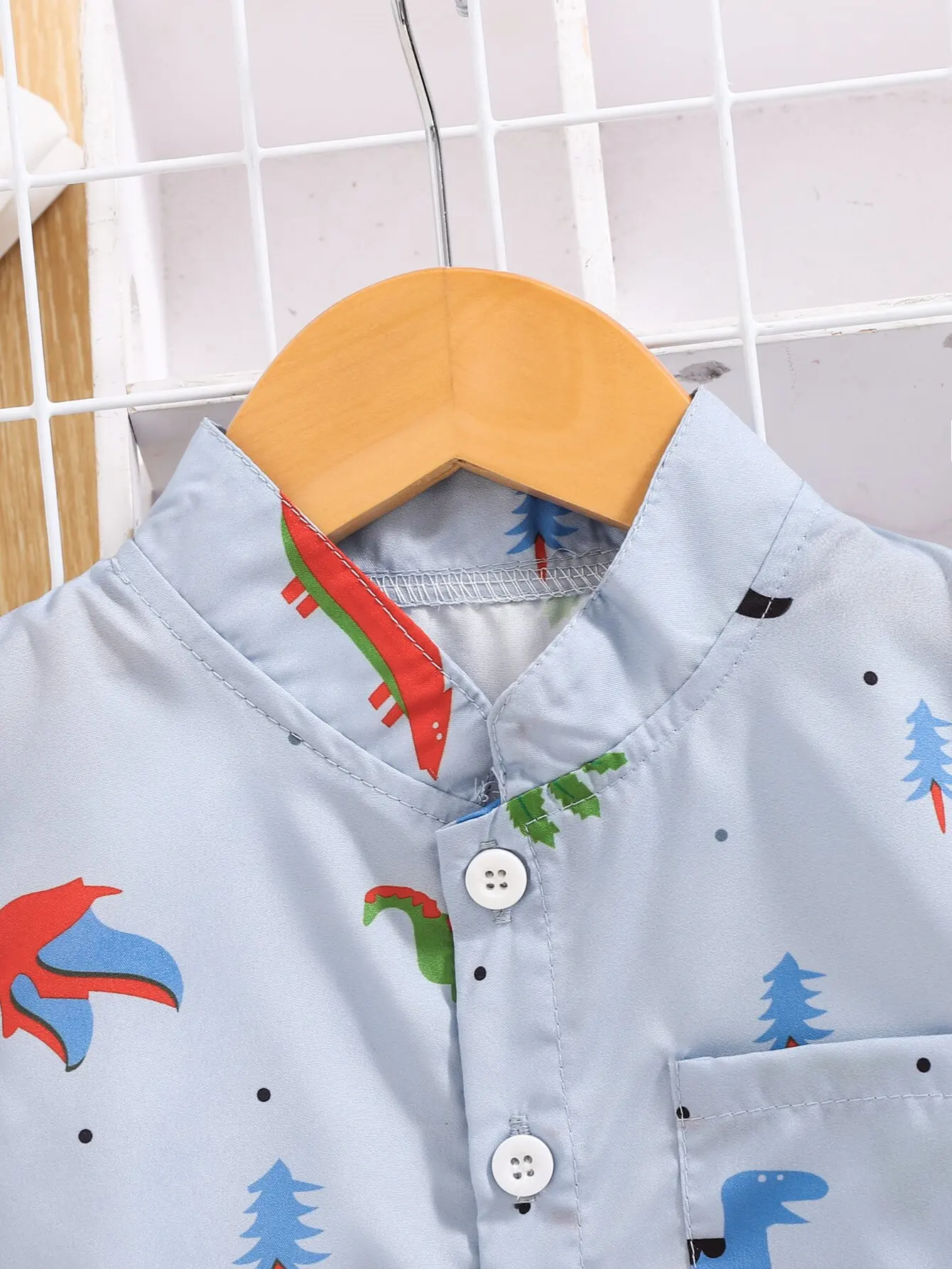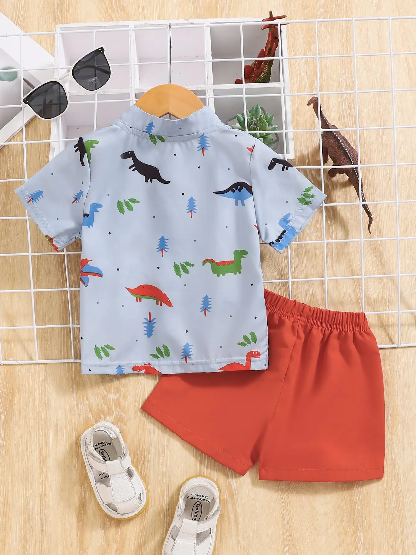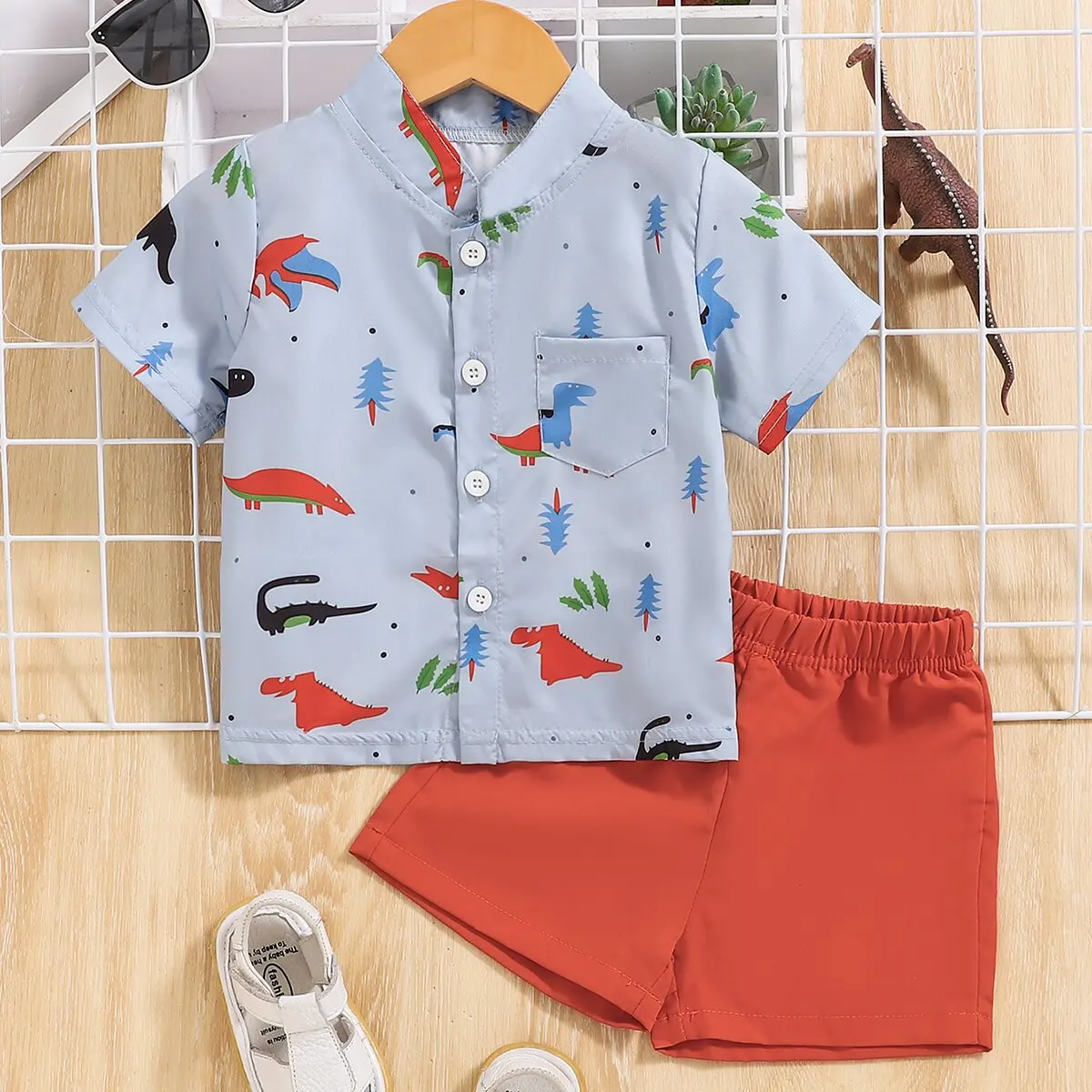 2 Piece Summer Baby Boy Casual Sport Cute Casual Baby Dinosaur Print Shirt Orange Shorts Comfortable Breathable Baby Set
