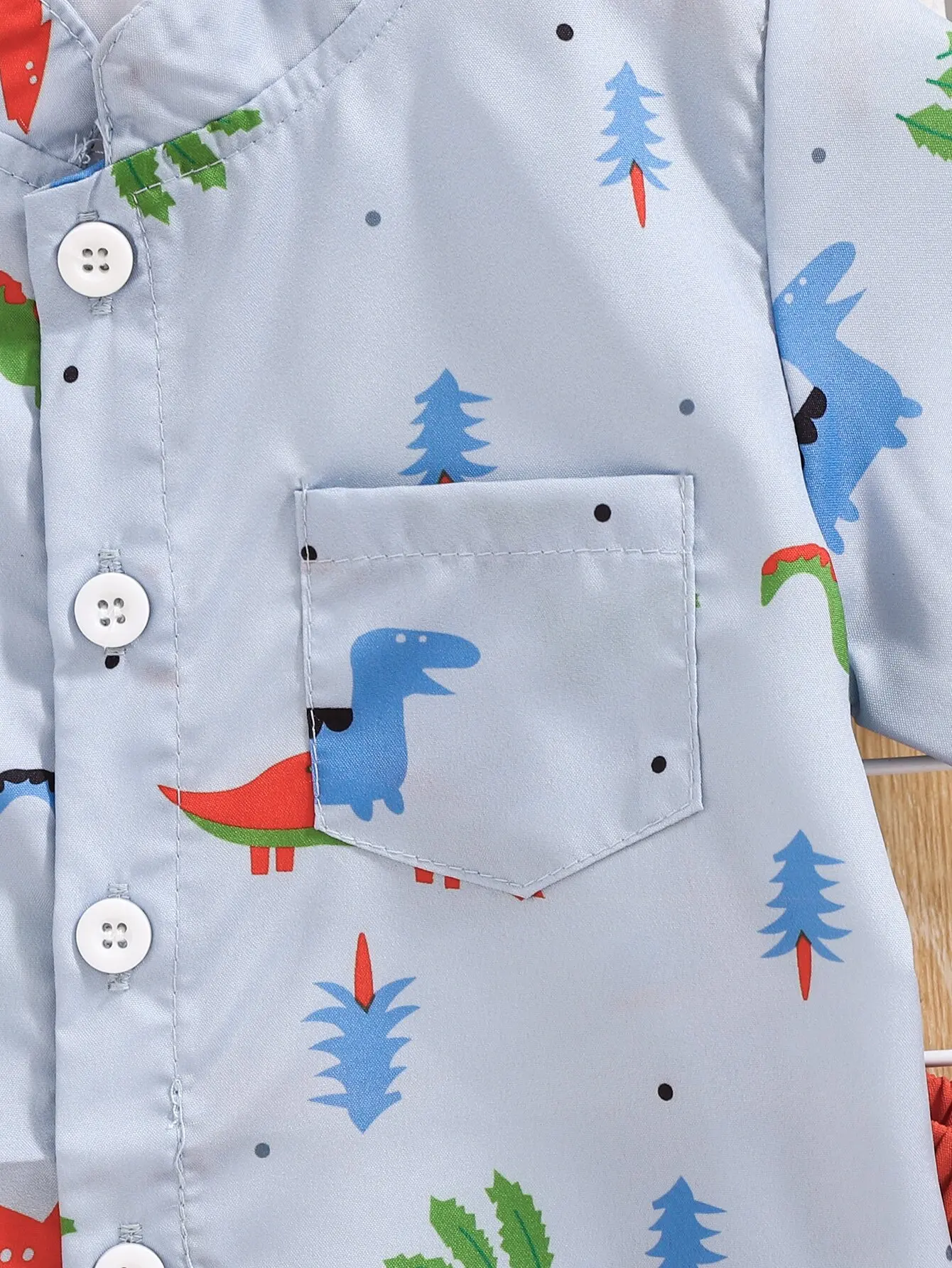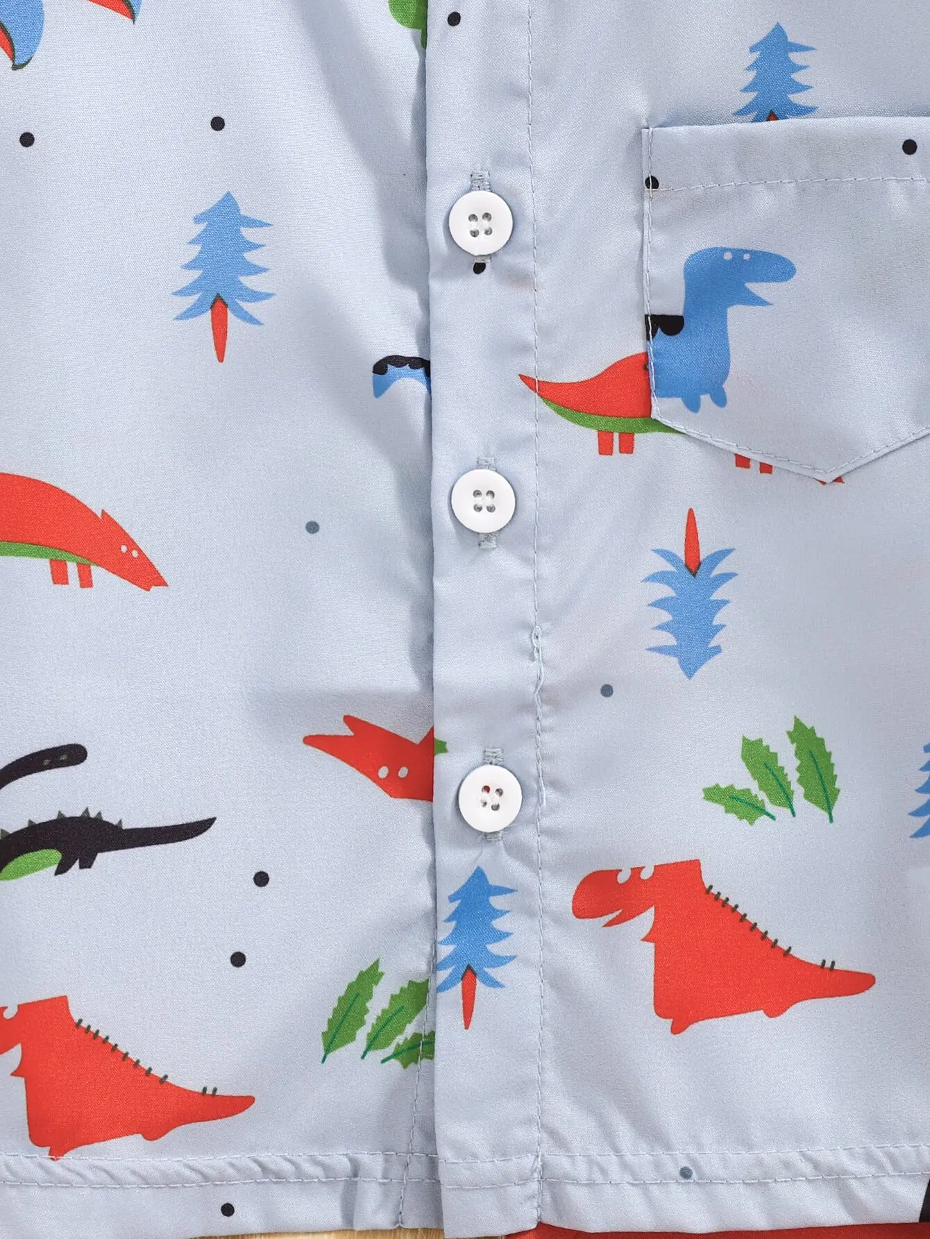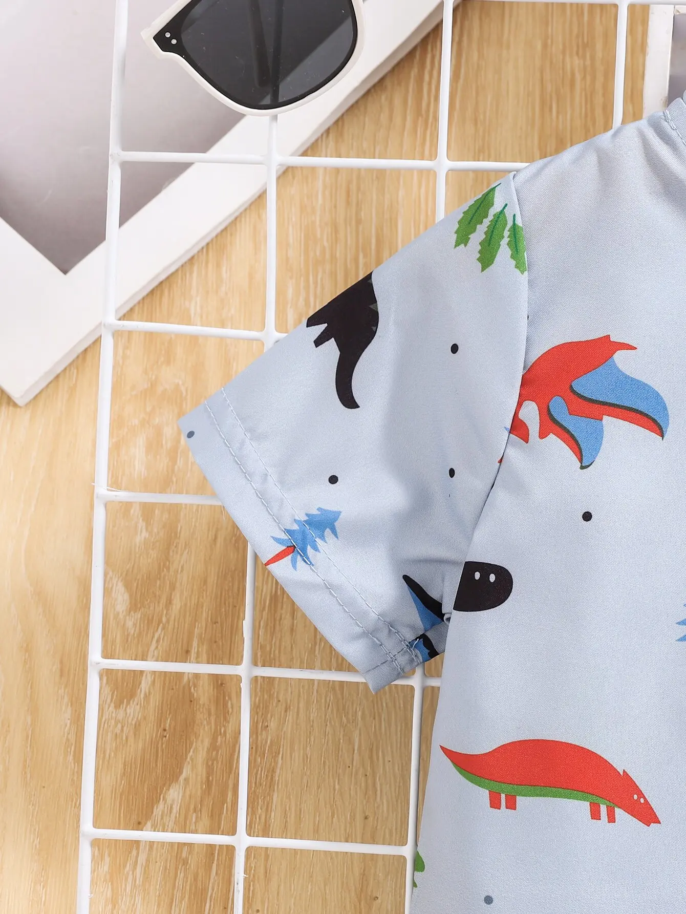 2 Piece Summer Baby Boy Casual Sport Cute Casual Baby Dinosaur Print Shirt Orange Shorts Comfortable Breathable Baby Set