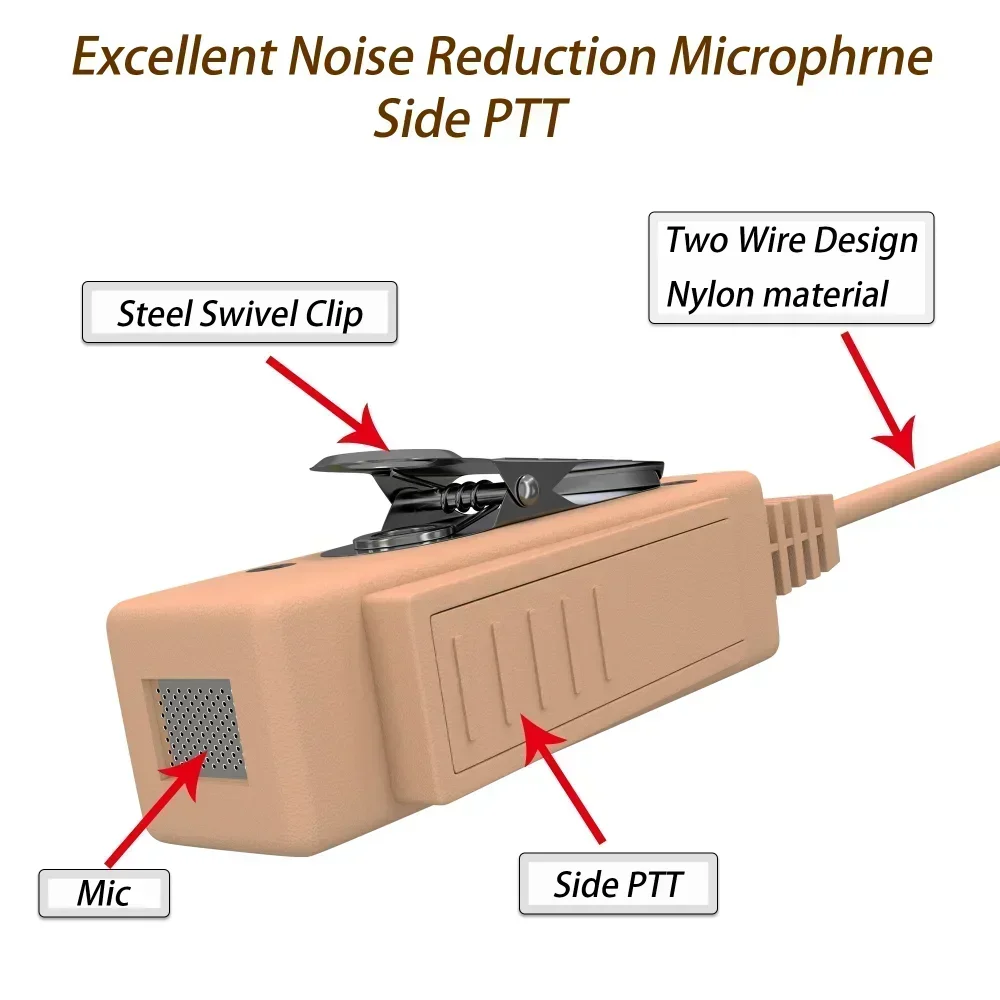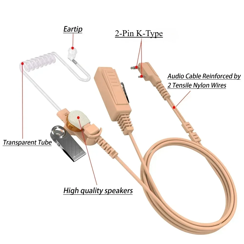 2-Pin K Type Beige AirTube Headset UV-K6 Acoustic Headphone Compatible with Baofeng radio QUANSHENG Walkie Talkie Accessories