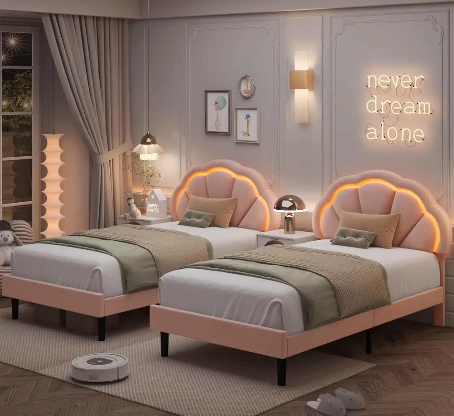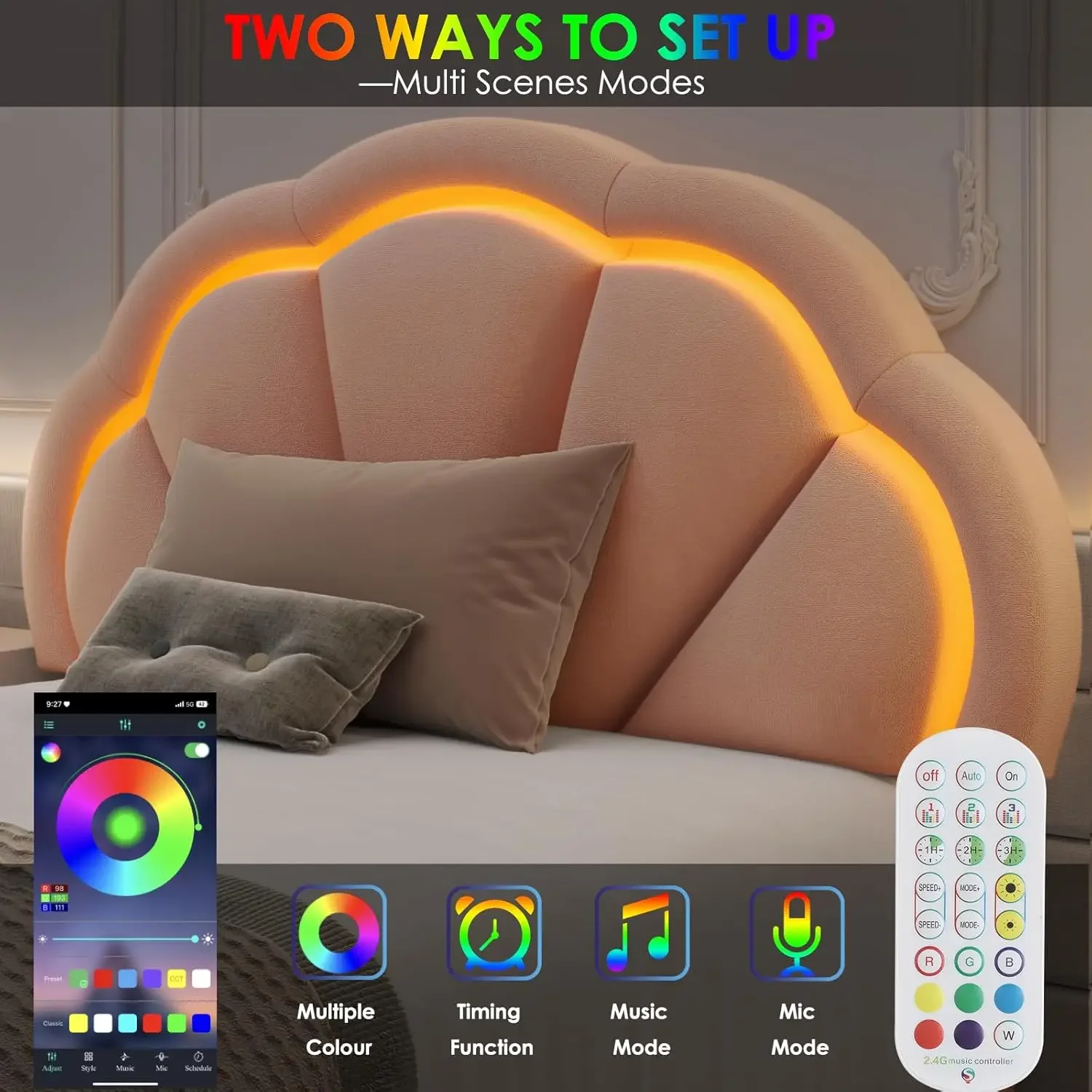 - 【BEST GIFTS FOR GIRLS】We believe that every girl deserves a magical and cozy bed to call her own, where she can feel safe, relaxed, and inspired. The HIFIT LED bed frame with an upholstered petal headboard is ideal for her. The playful and imaginative petal headboard is adorned with colorful LED lights that are sure to ignite creativity, while the bright yet elegant color options bring a touch of fun and vibrancy to the sleeping space. Let’s enjoy your best bedtime with this dreamy princess bed