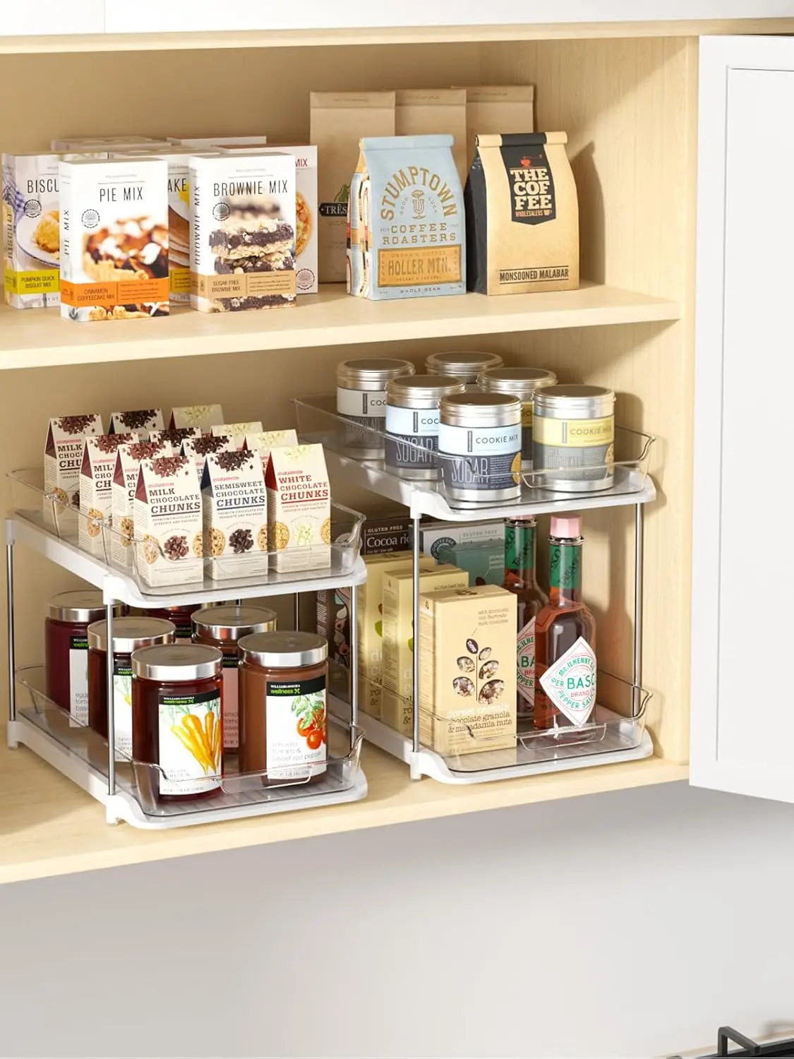 2 Sets of 2-Tier Multi-Purpose Bathroom Under Sink Organizers and Storage, Stackable Kitchen Pantry Organization
