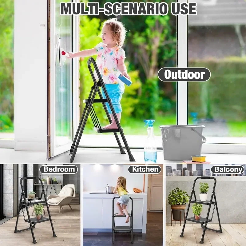 2 Step Folding Ladder Stool, 330 lbs Capacity with Wide Anti-Slip Pedal Ergonomic Design for Outdoor Camper Trips