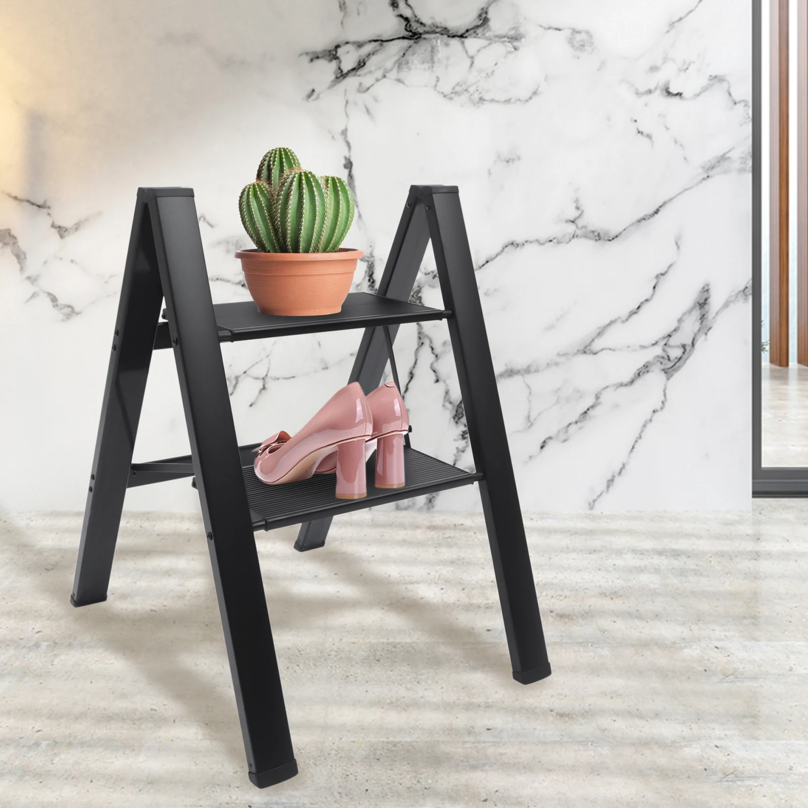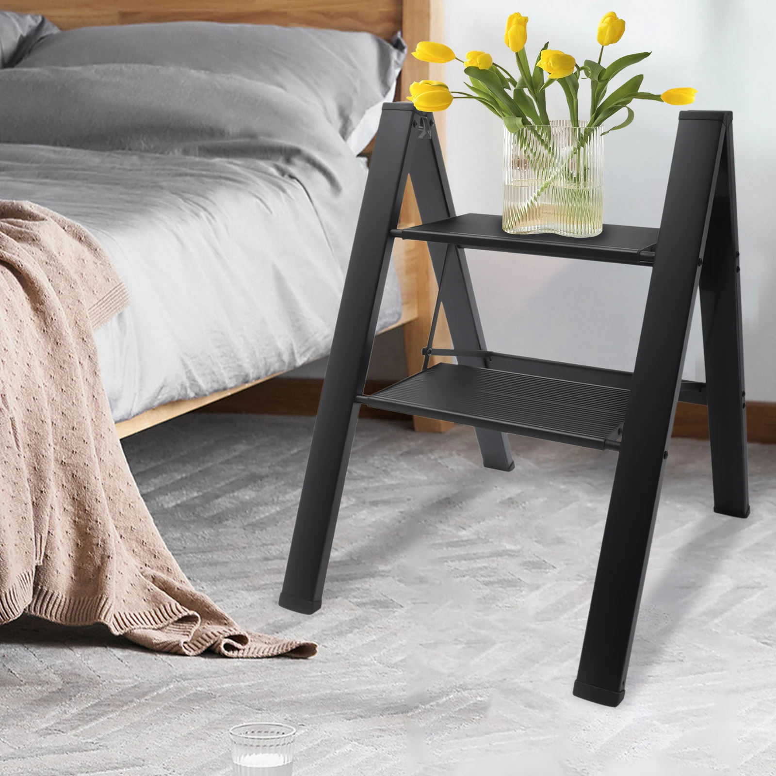 2 Step Ladder Folding Step Ladder Stool Portable Anti-Slip Pedal Platform Stool Aluminum Alloy 330 lbs Load Capacity