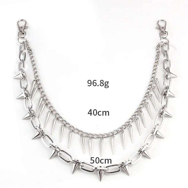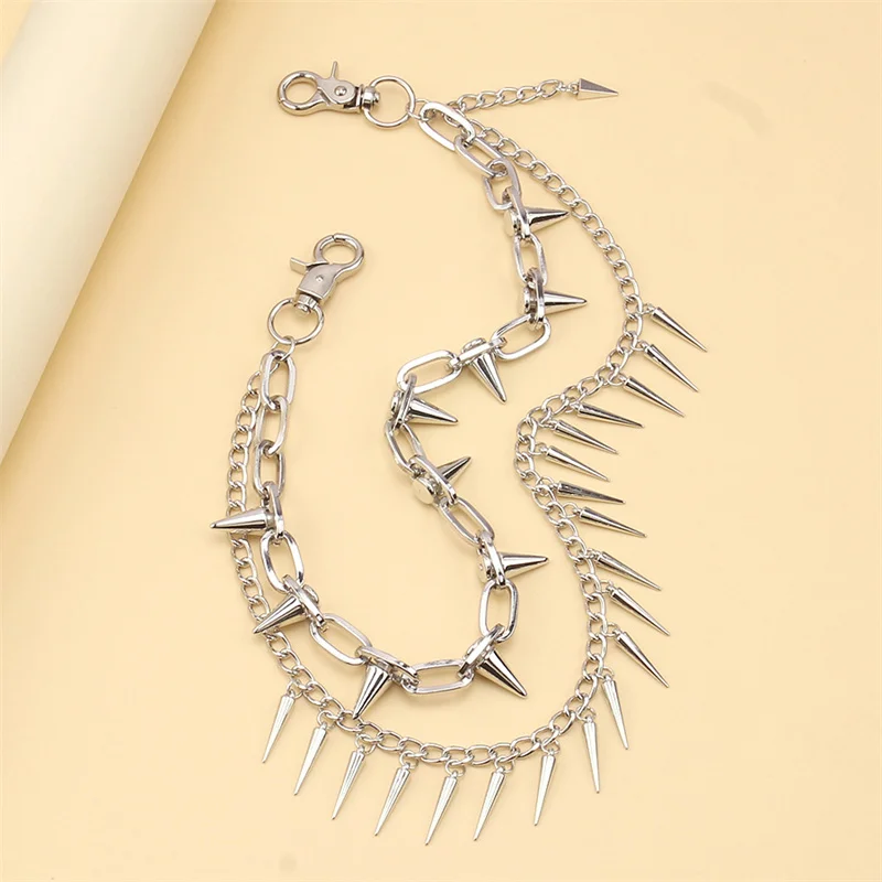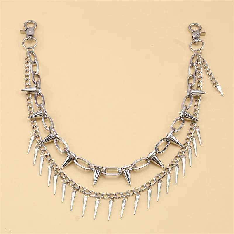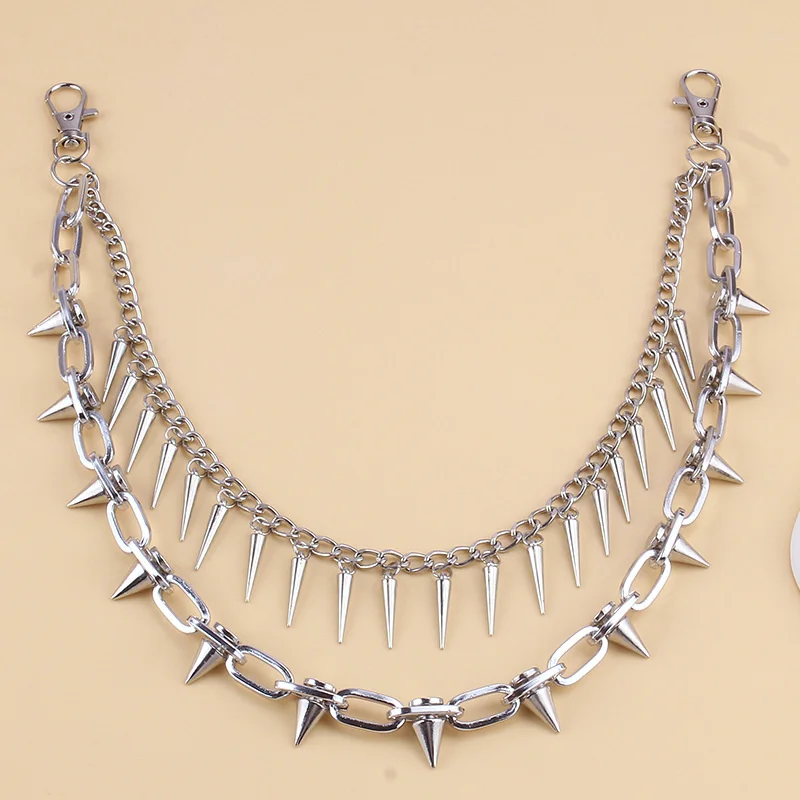 2 Styles Layered Punk Chain On The Jeans Pants Women Spike Keychains for Men Hip Hop Cool Versatile Men’s Waist Chain Ornaments