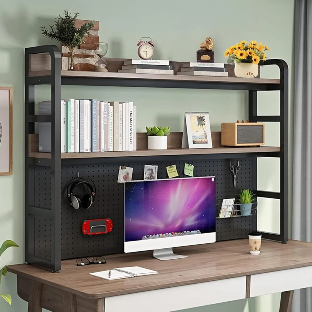 2 Tier Industrial Desktop Bookshelf, Desktop Bookcase for Computer Desk, Multifunctional Freestanding Storage Rack Displ