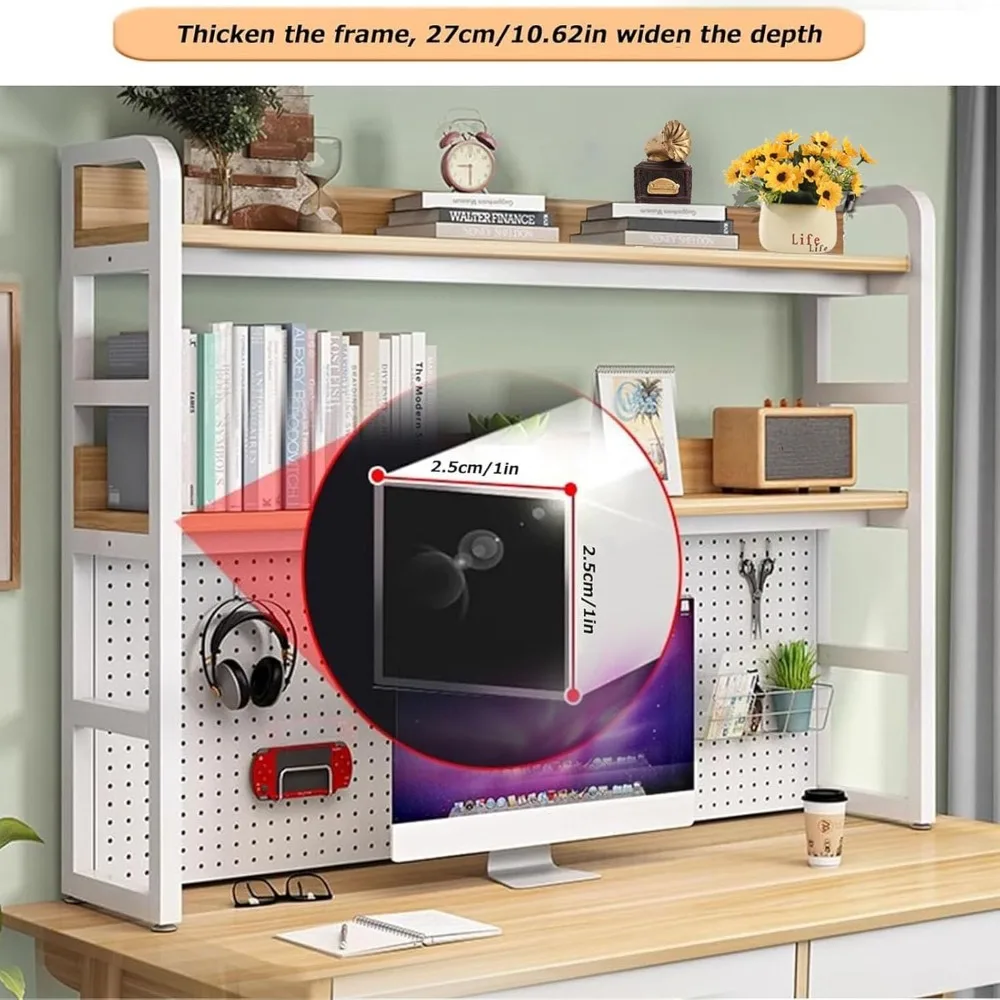 - 【Optimize Desktop Space】:3-layer storage space, with a metal perforated plate design at the bottom, to store small desktop items and let them float, saying goodbye to a messy desktop. Plan the countertop space easily and reasonably, store needed items, and access them quickly and clearly.