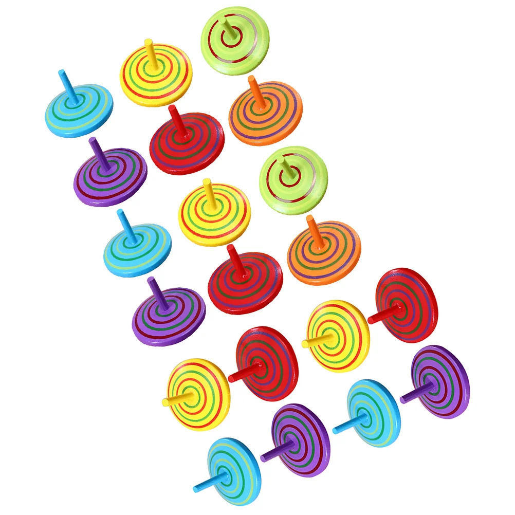 20 Pcs Wooden Spinning Top Cartoon Gyro Toys Kids Small Baby Children Accessory for