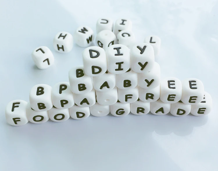 200-1000pcs Silicone Alphabet Letter Beads for DIY Name on Pacifier Chain Clips 12MM Chewing Beads for Baby Necklace Bracelets