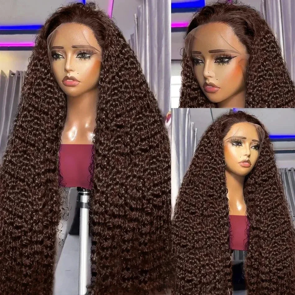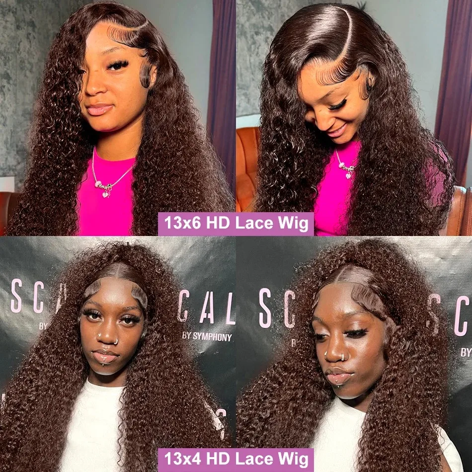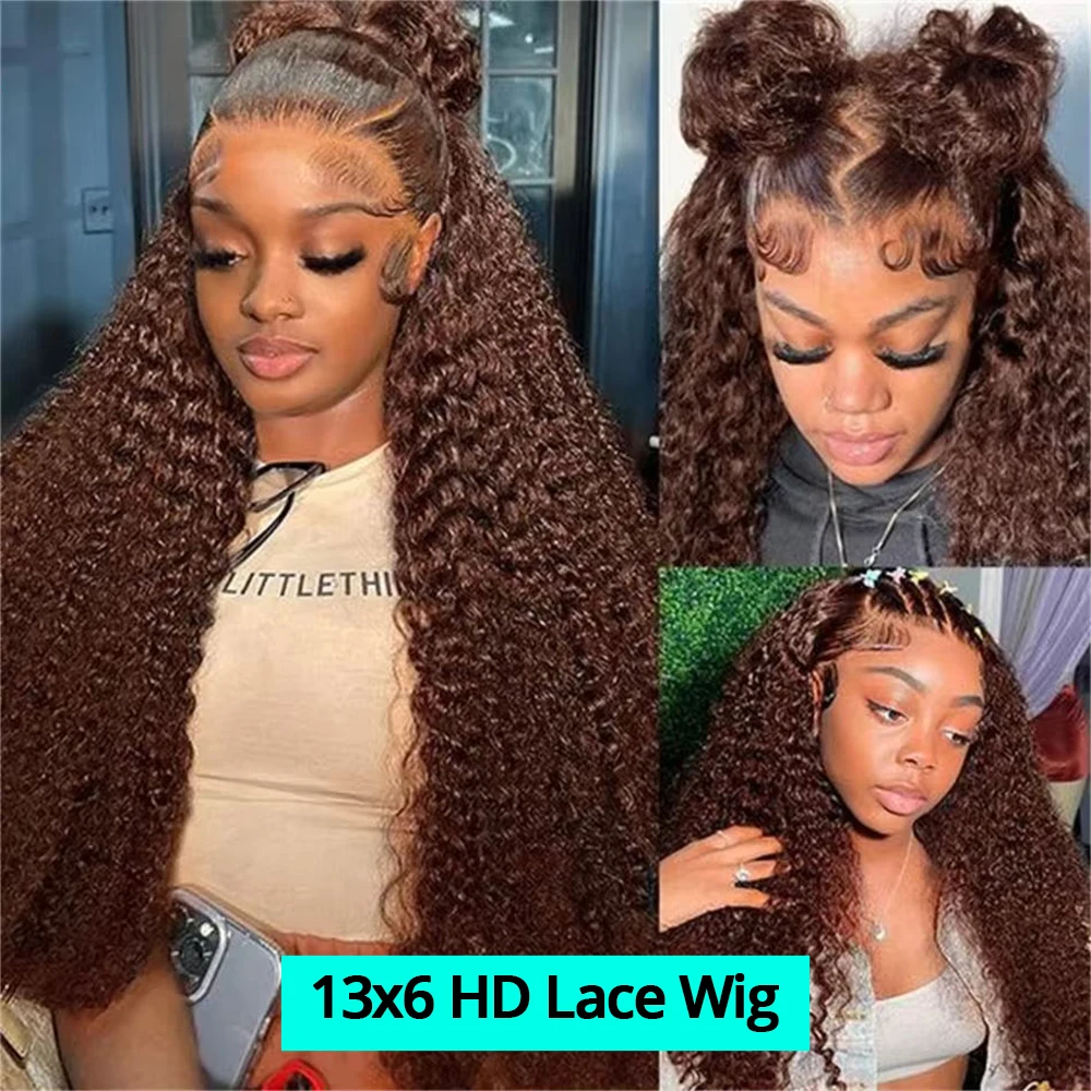 200% 13×6 Chocolate Brown Deep Wave Human Hair Wigs 13×4 Curly HD Lace Front Water Wave 30 40 Inch Transparent Lace Frontal Wig