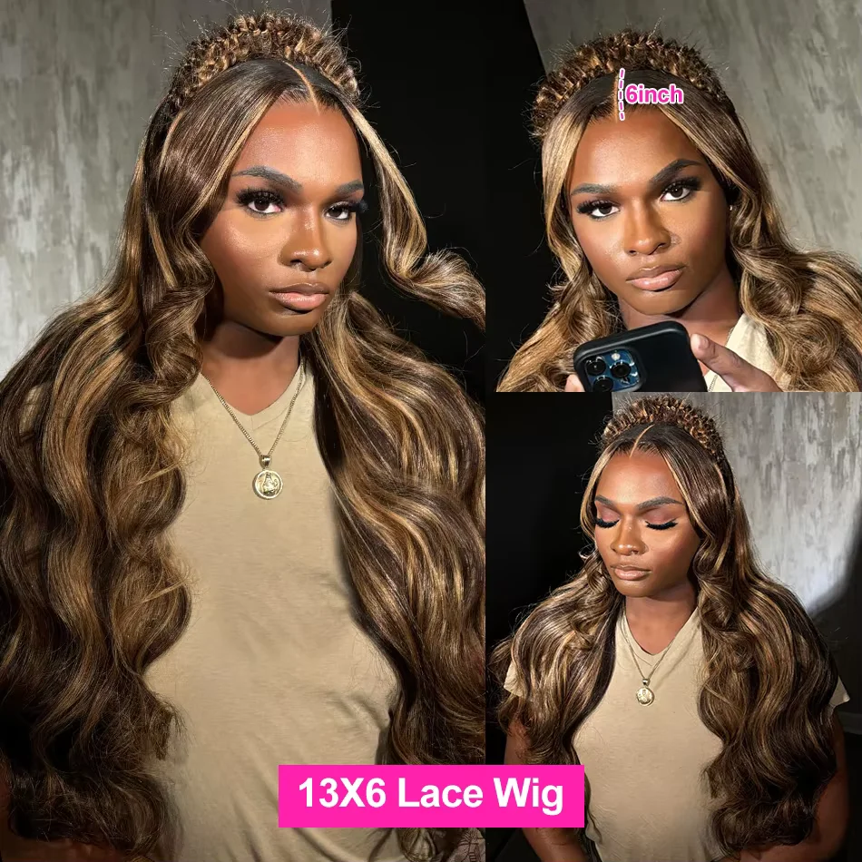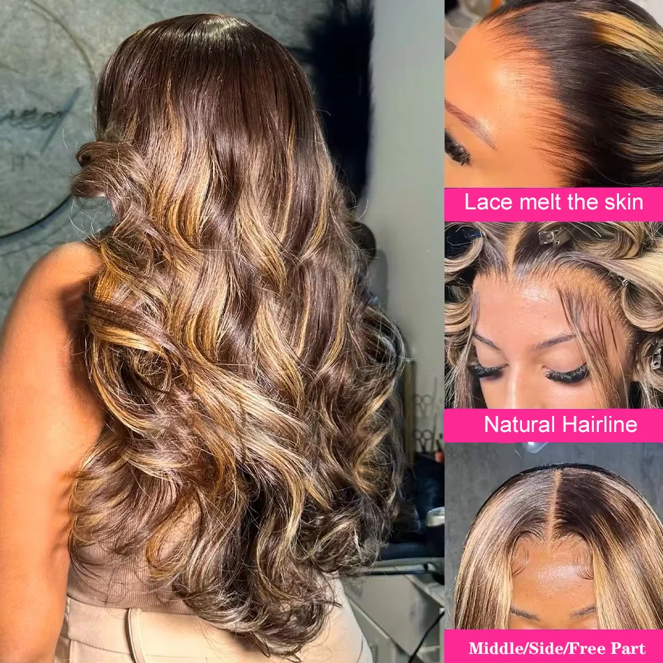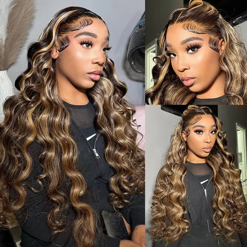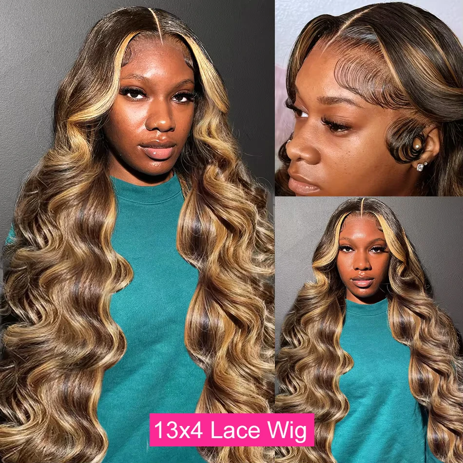 200 Density 13×6 Hd Lace Frontal Highlight Wig Body Wave Human Hair Wigs Brazilian Ombre Honey Blonde Colored Wigs For Women