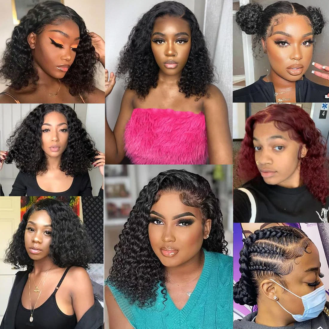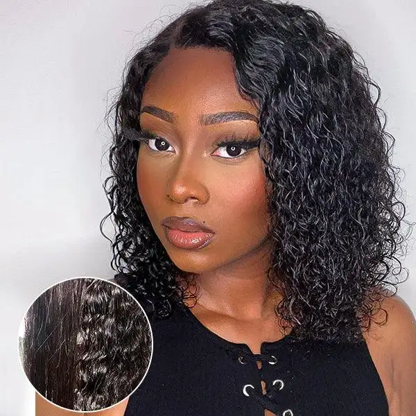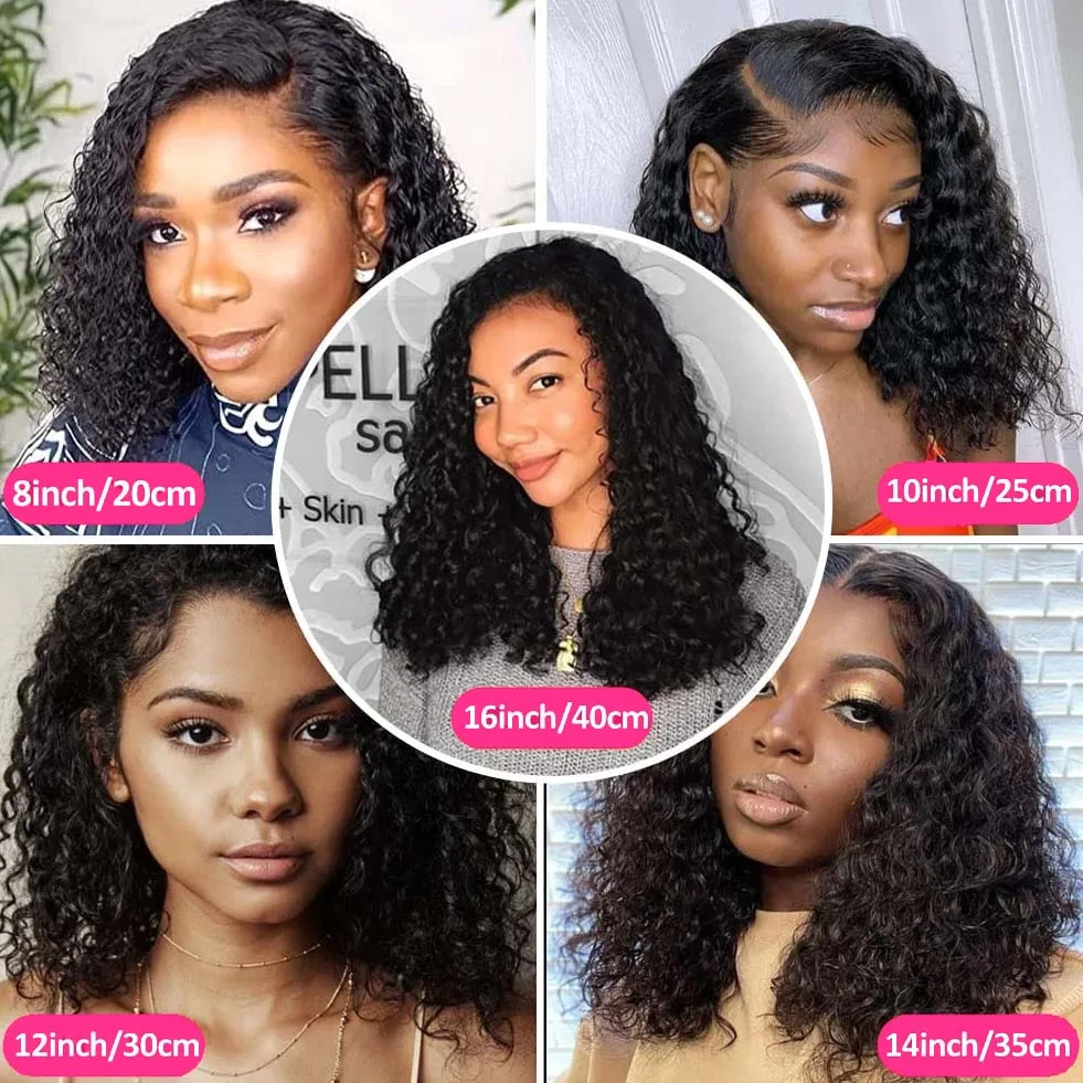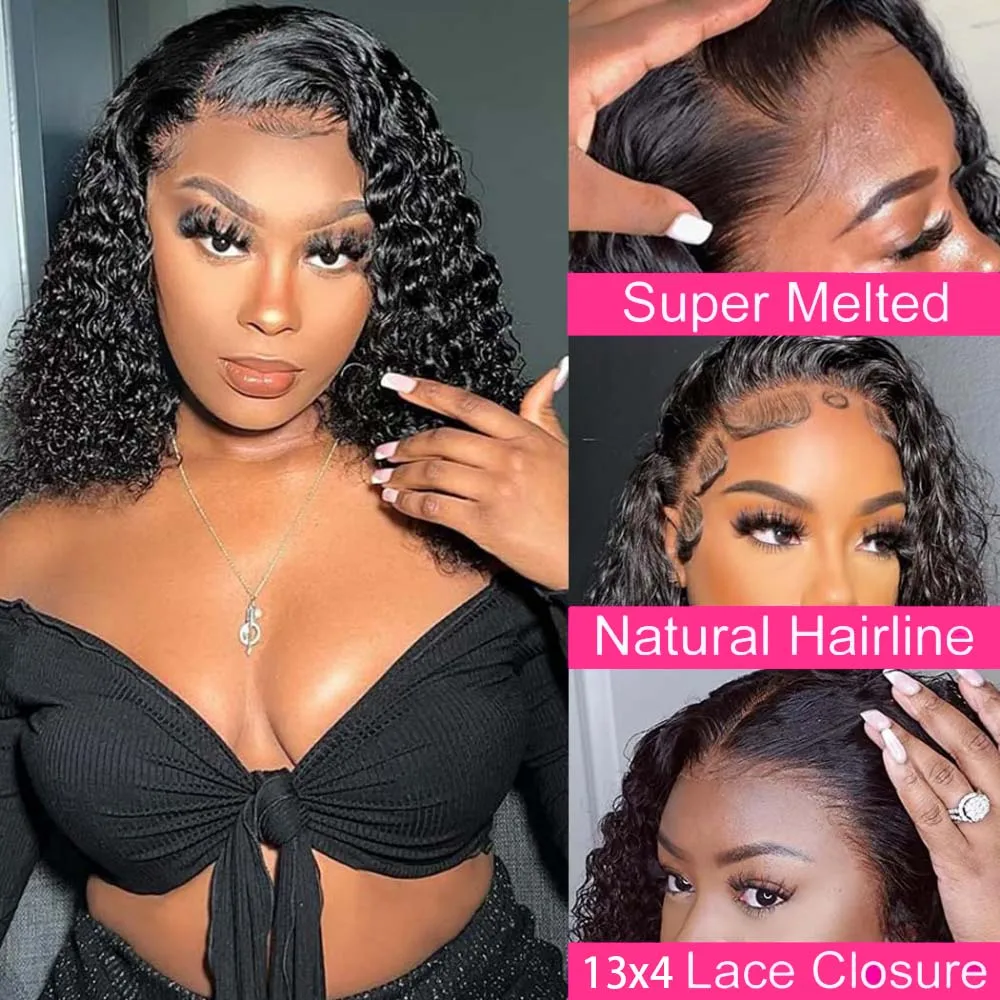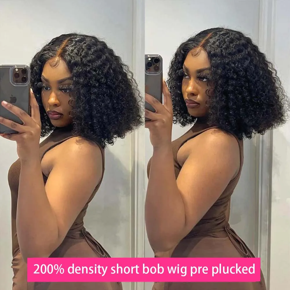 200% Density Deep Wave Bob Wig 13×4 Lace Front Wig Human Hair Wig 100% Human Hair Pre Plucked Deep Curly Short Bob Wig For Women
