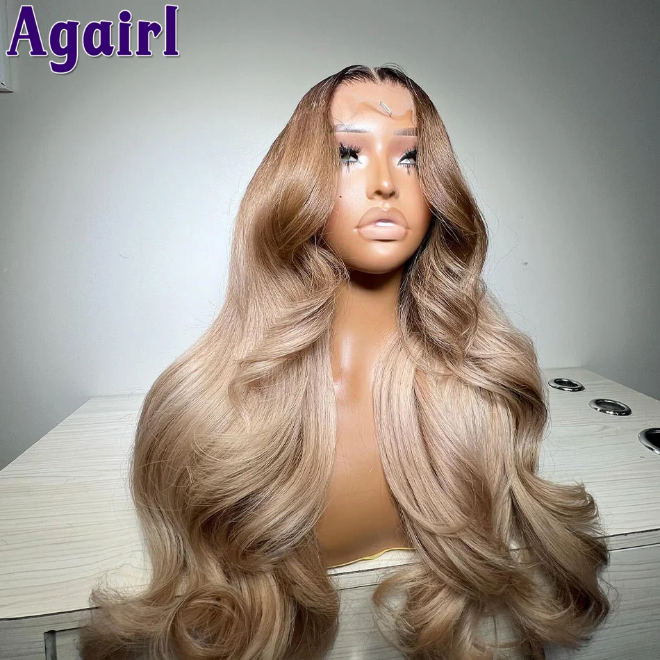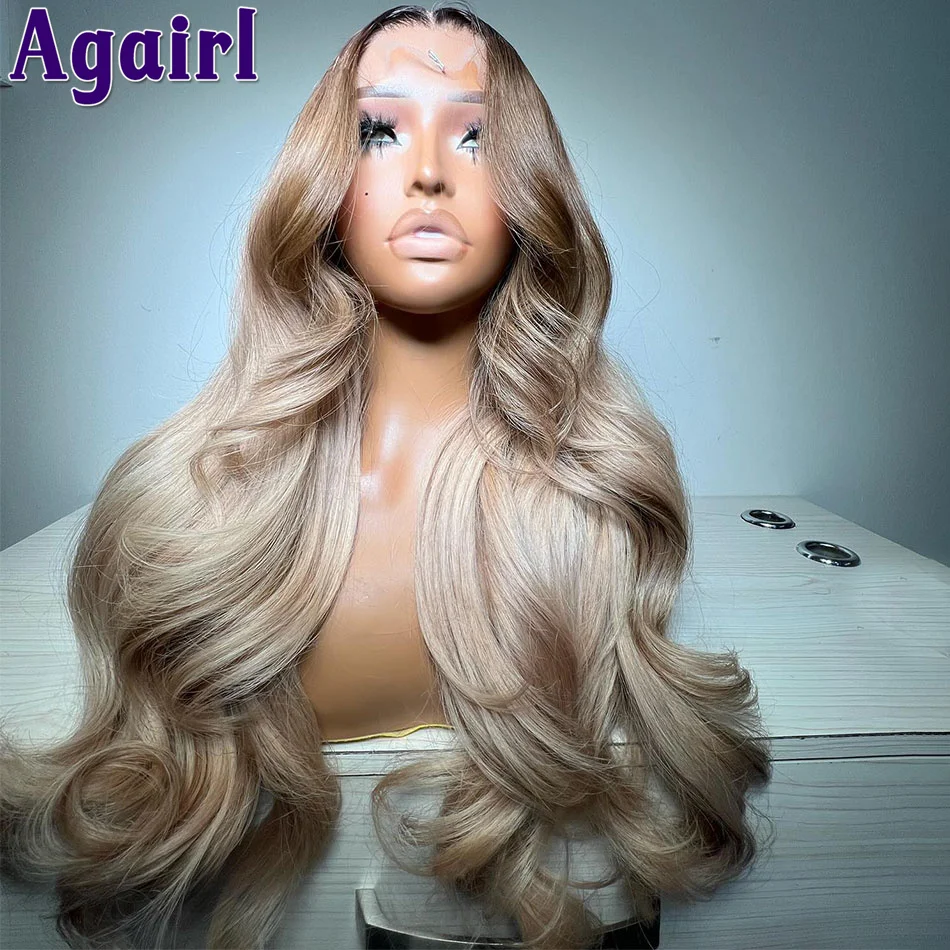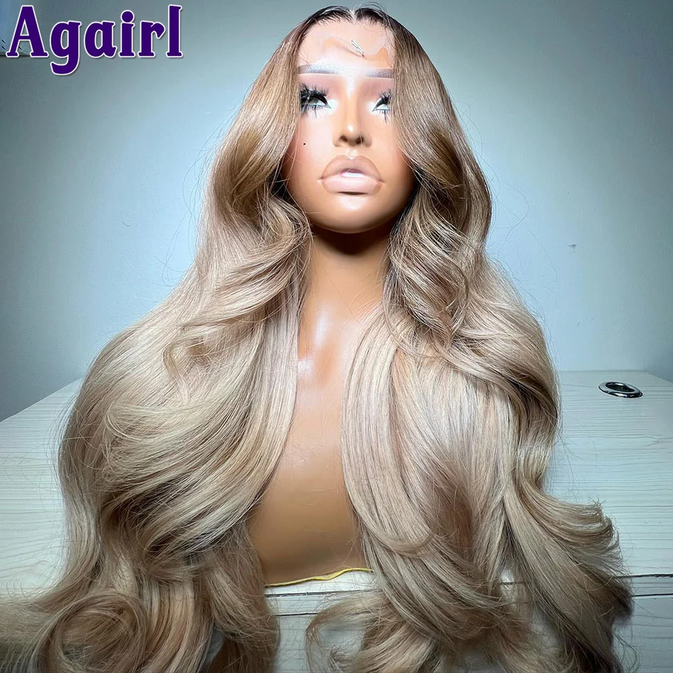 200% Ombre Ash Blonde 13×6 Body Wave Lace Front Wig PrePlucked Brown Root Blonde Wig 13×4 Lace Frontal Human Hair Wigs for Women
