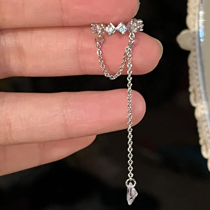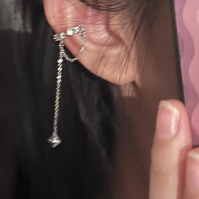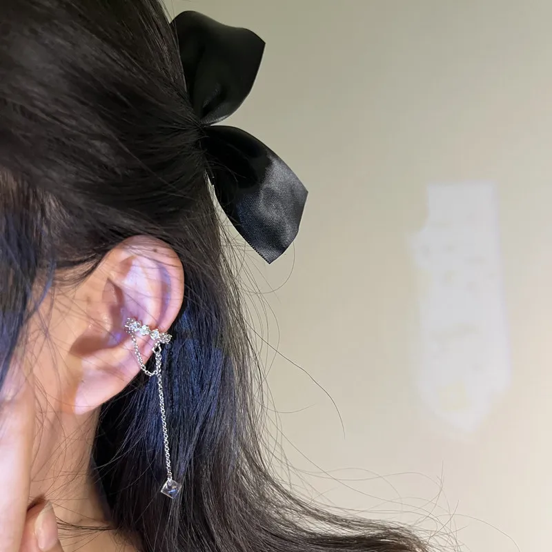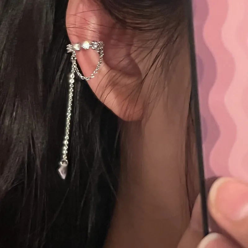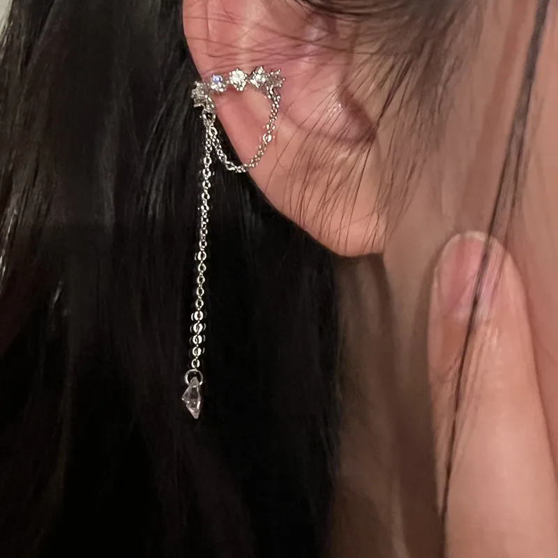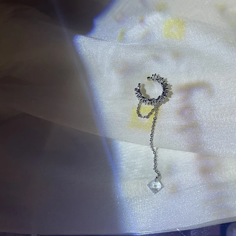 2022 Fashion Zircon Shining Long Tassel Ear Cuff No Piercing Earrings Female Trendy Design Ear Clip Earrings Party Jewelry