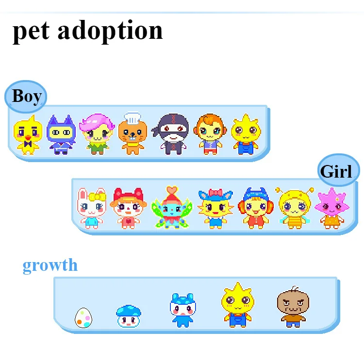 2、Optimized Design: Made with safe materials to optimize the display page, animation and sound of the original virtual Digitai pet, as well as shape design, including more pet characters.