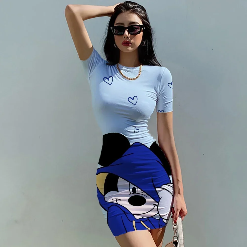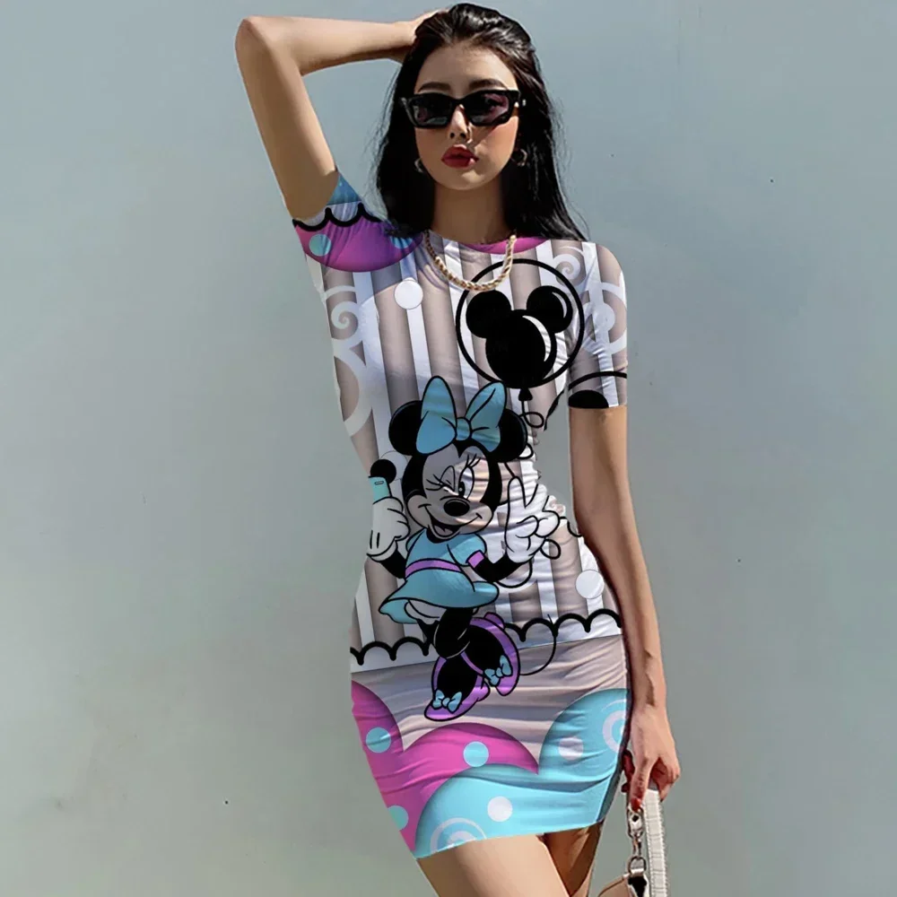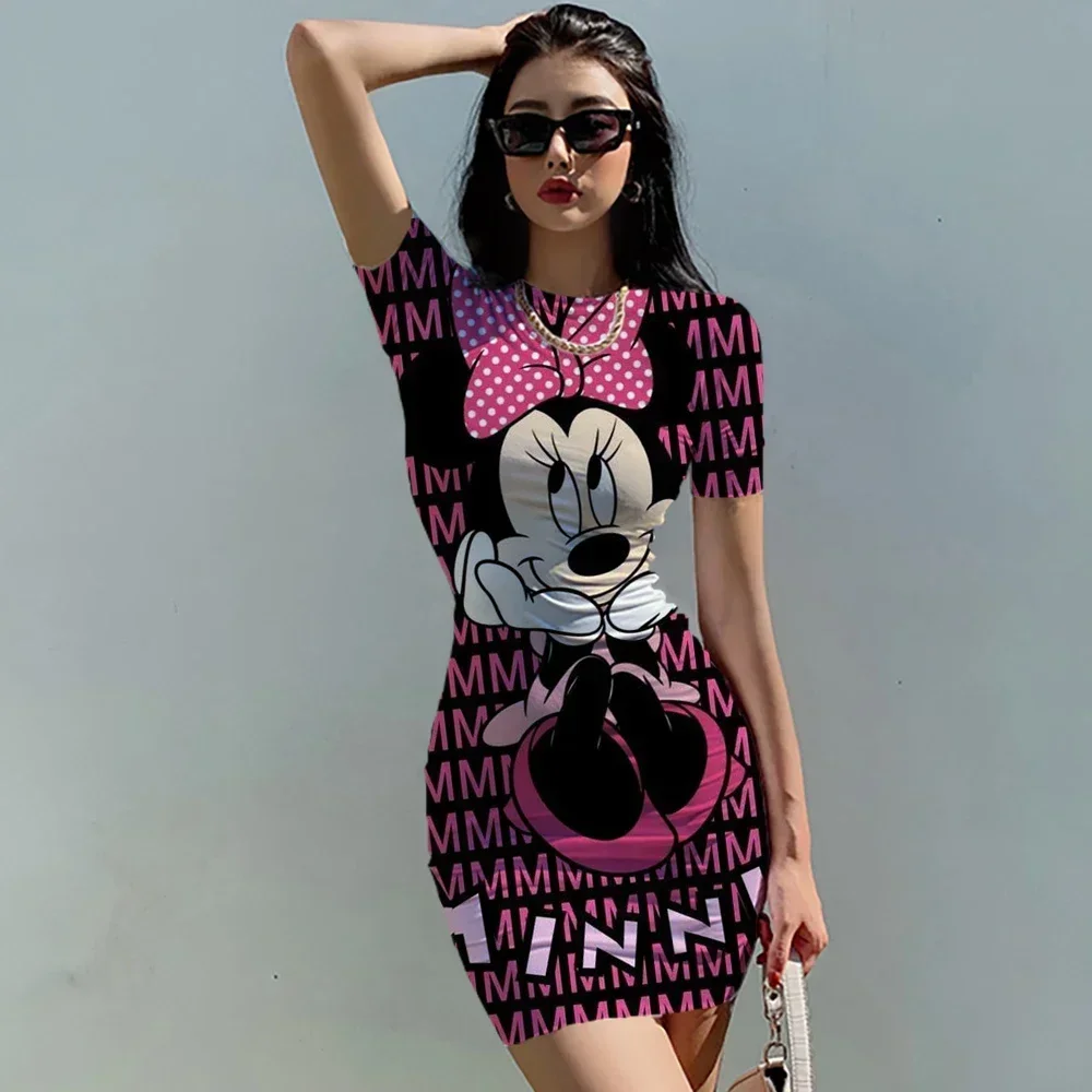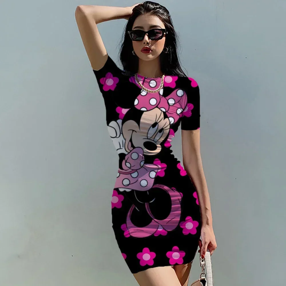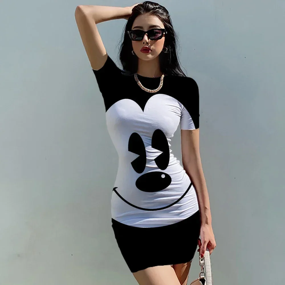 2022 Summer New sexy ladies tight dress elegant fashion women’s Minnie Mickey Mouse print casual Mini dress Disney brand