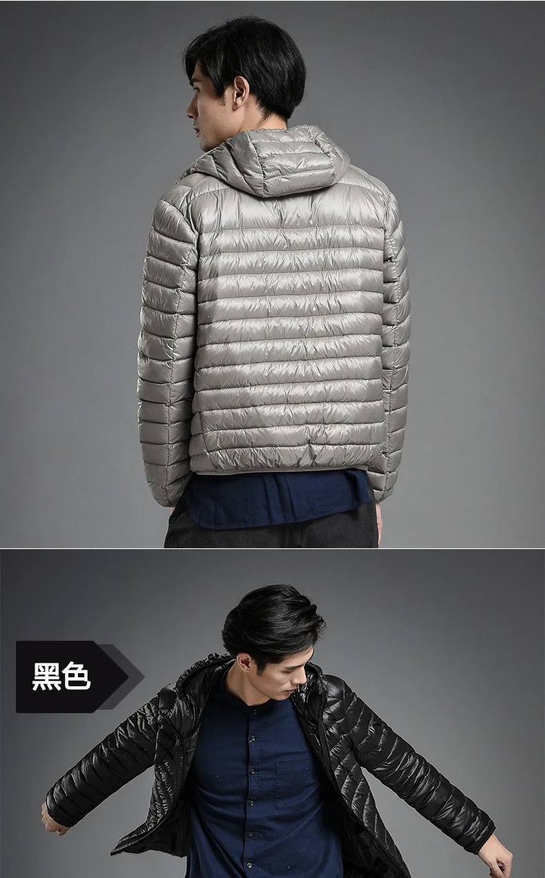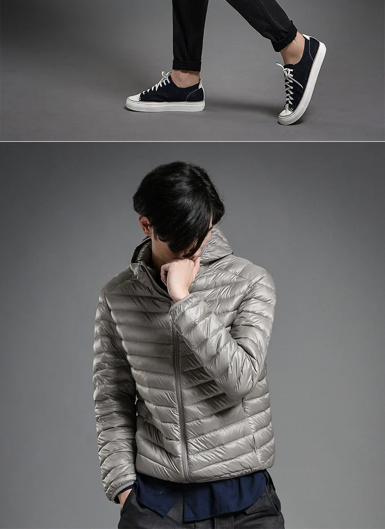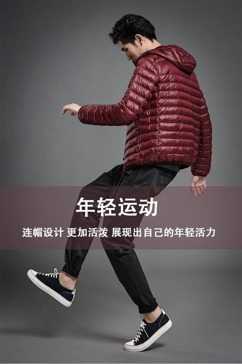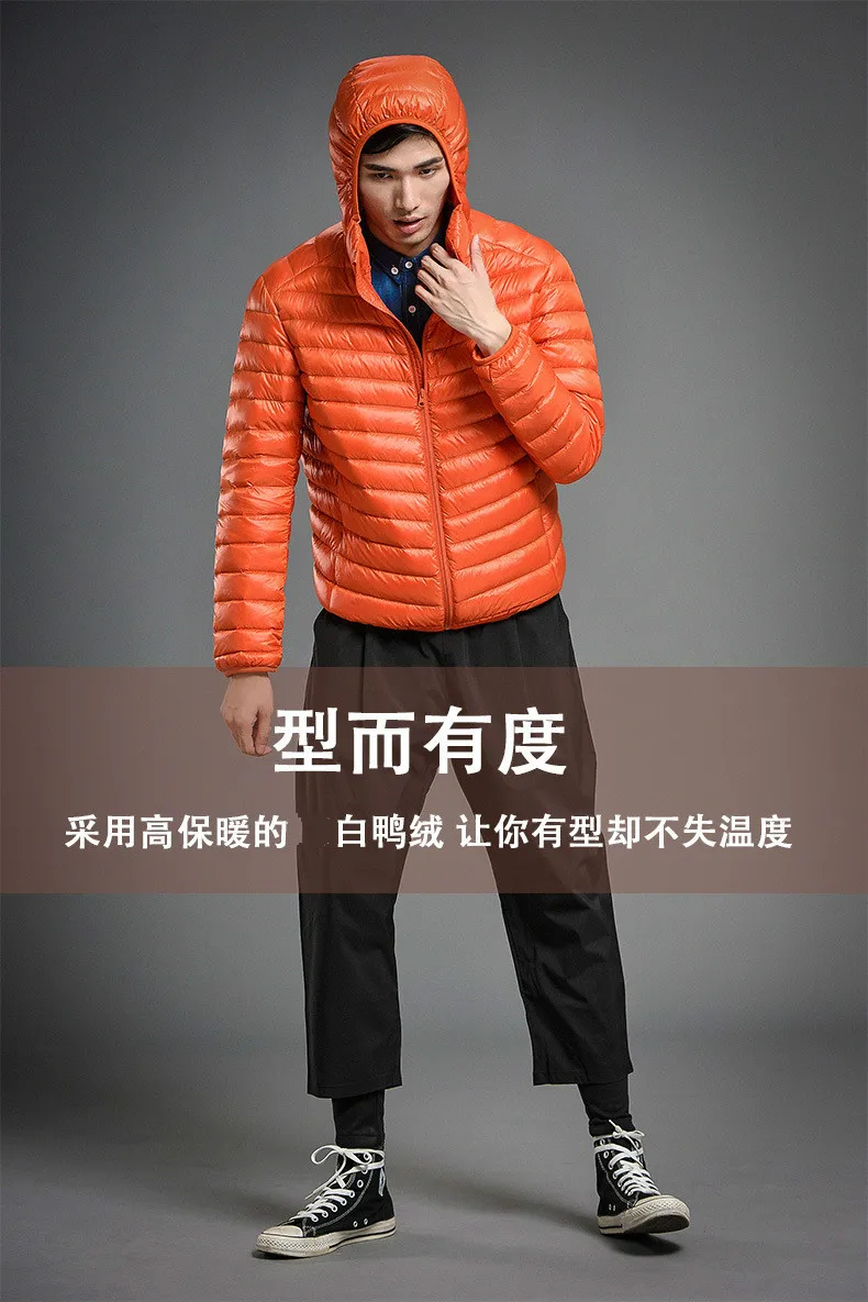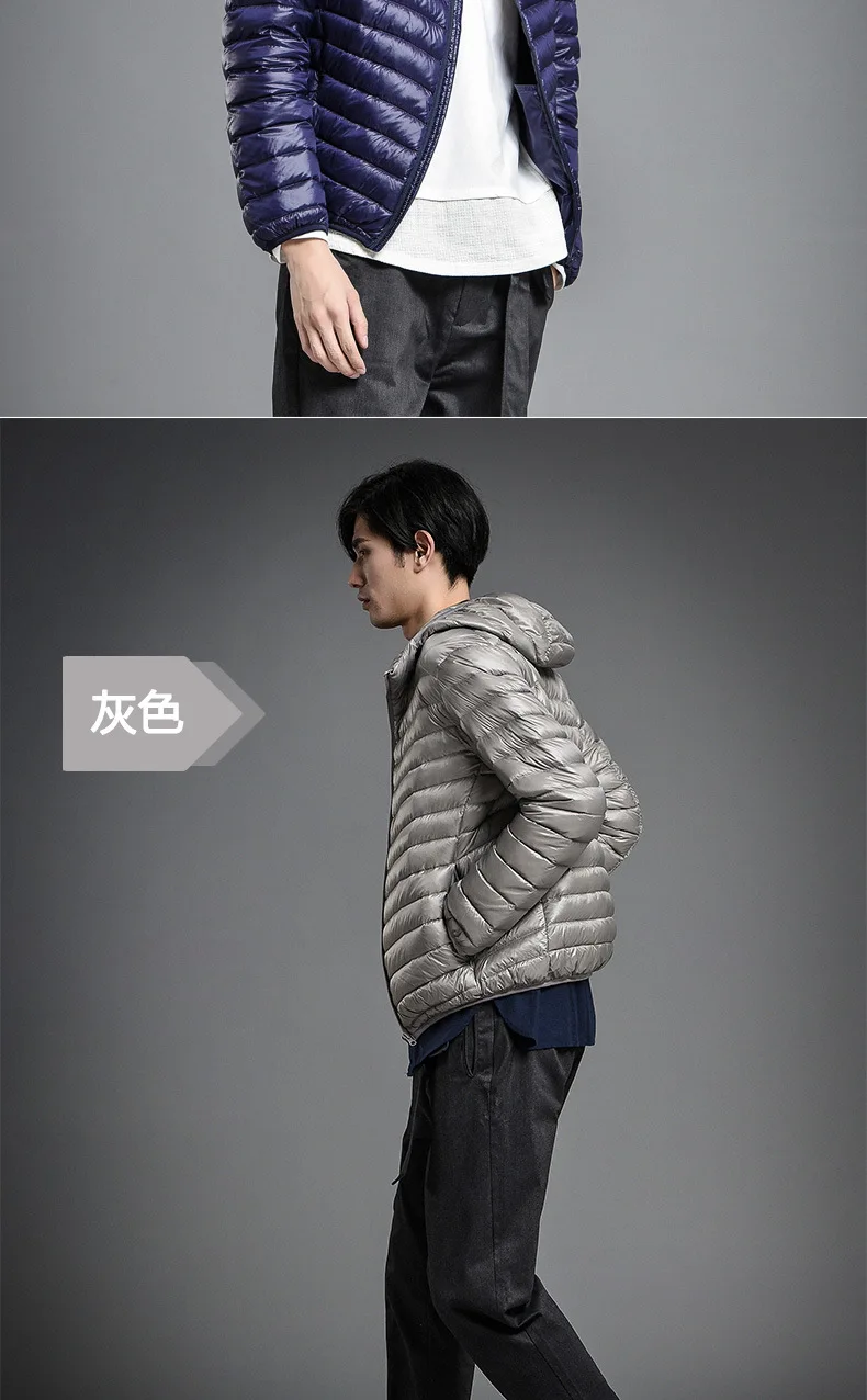 2023 Autumn and Winter Lightweight White Duck Down Jacket Men Sports Hooded Short Large Size Stand Collar Jacket Ultralight Tops