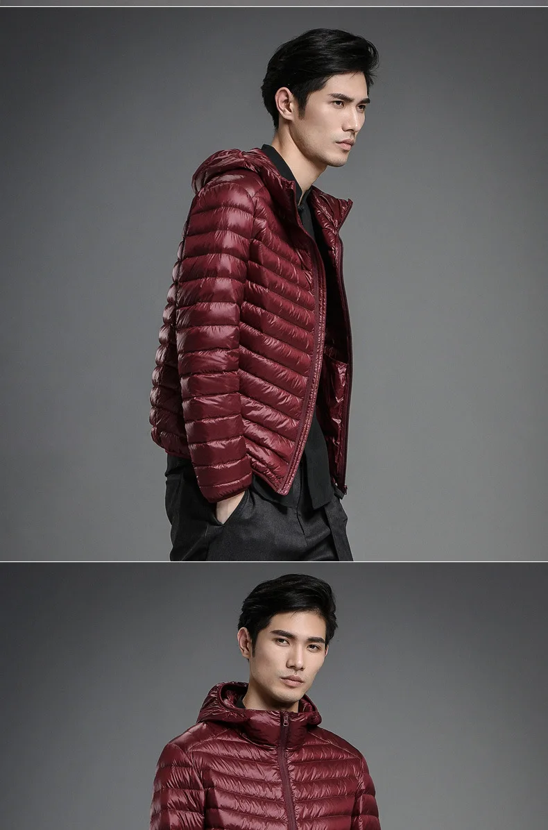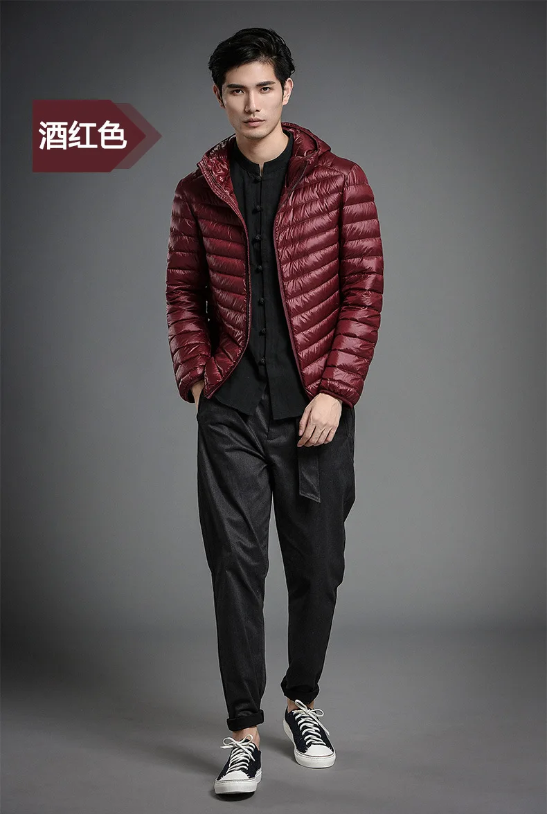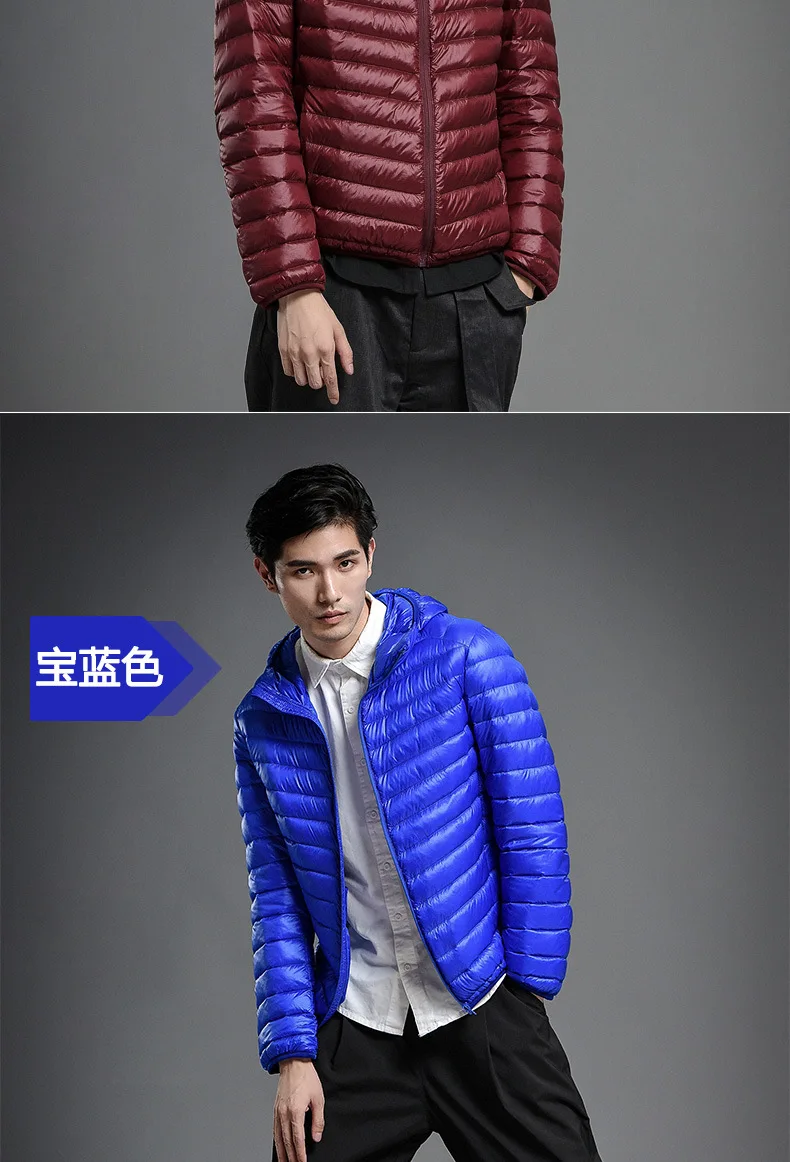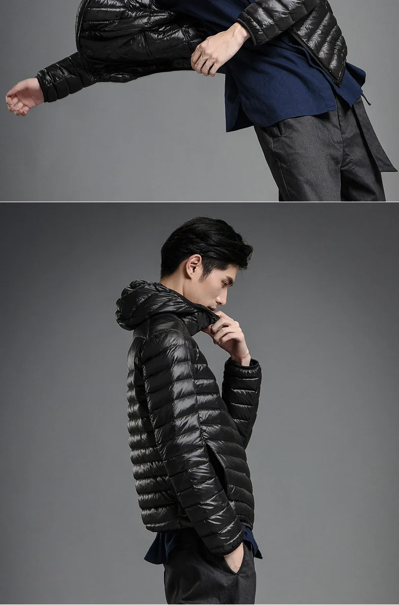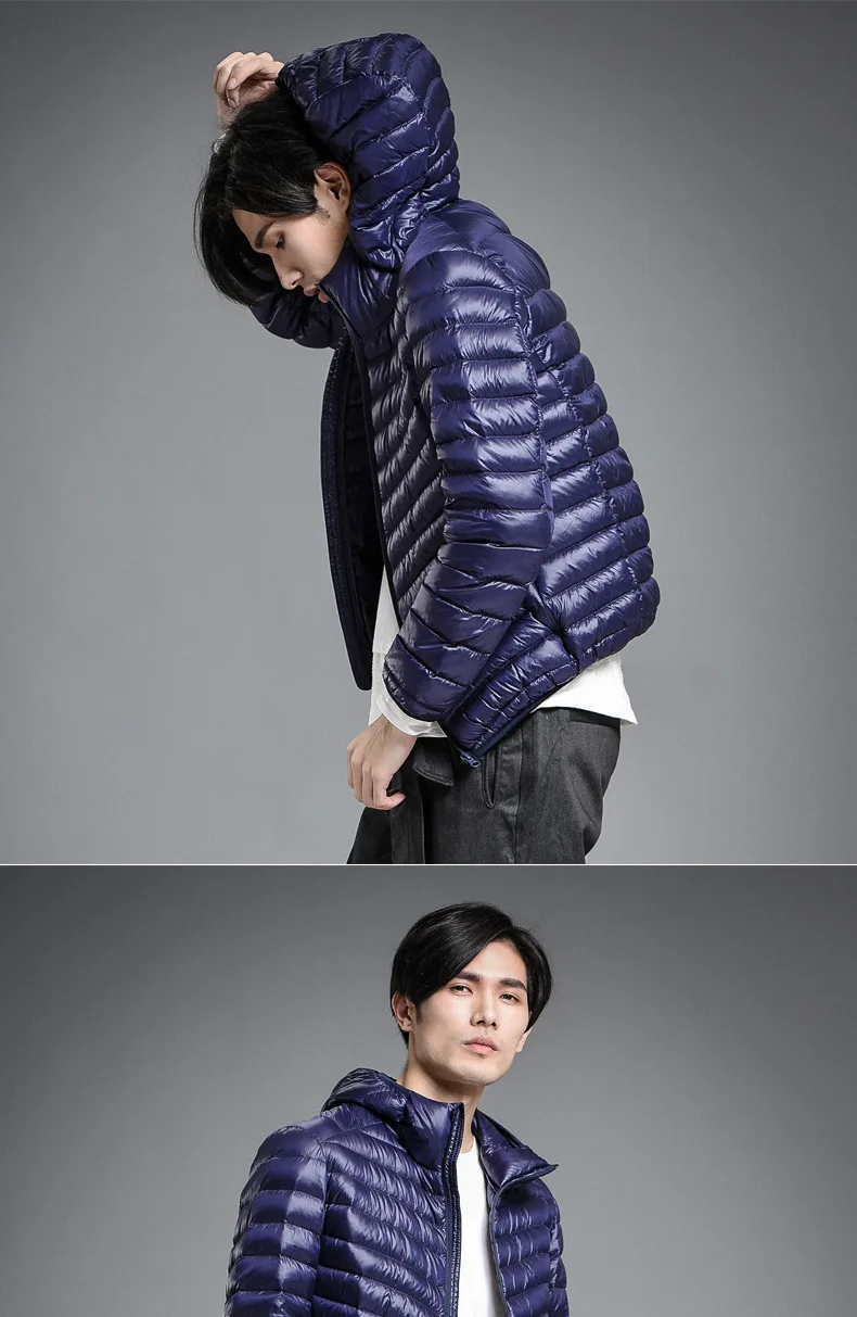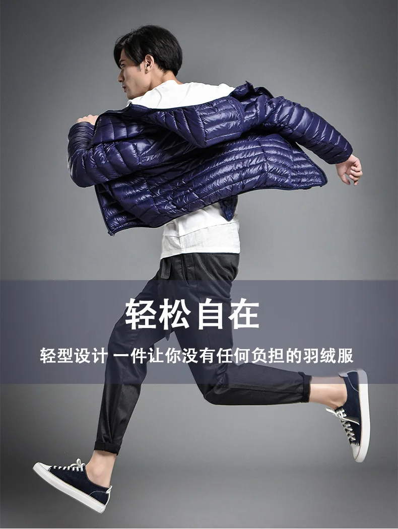2023 Autumn and Winter Lightweight White Duck Down Jacket Men Sports Hooded Short Large Size Stand Collar Jacket Ultralight Tops