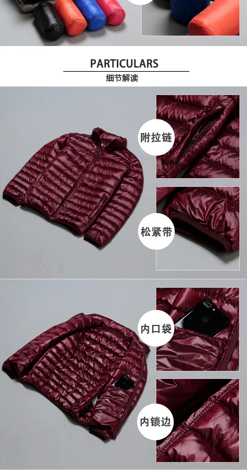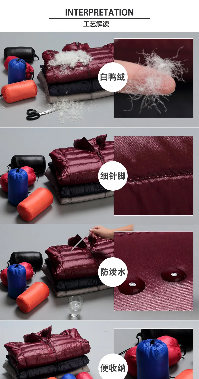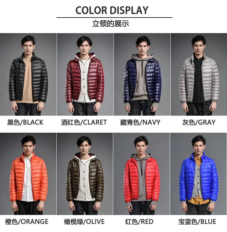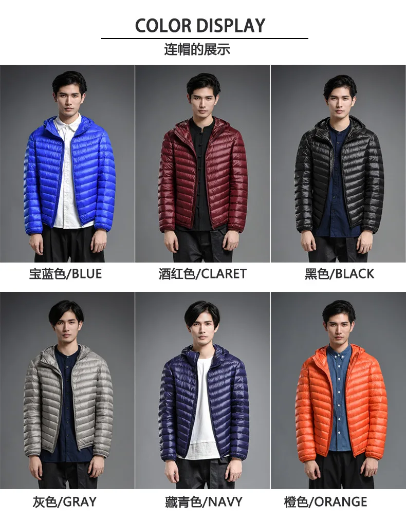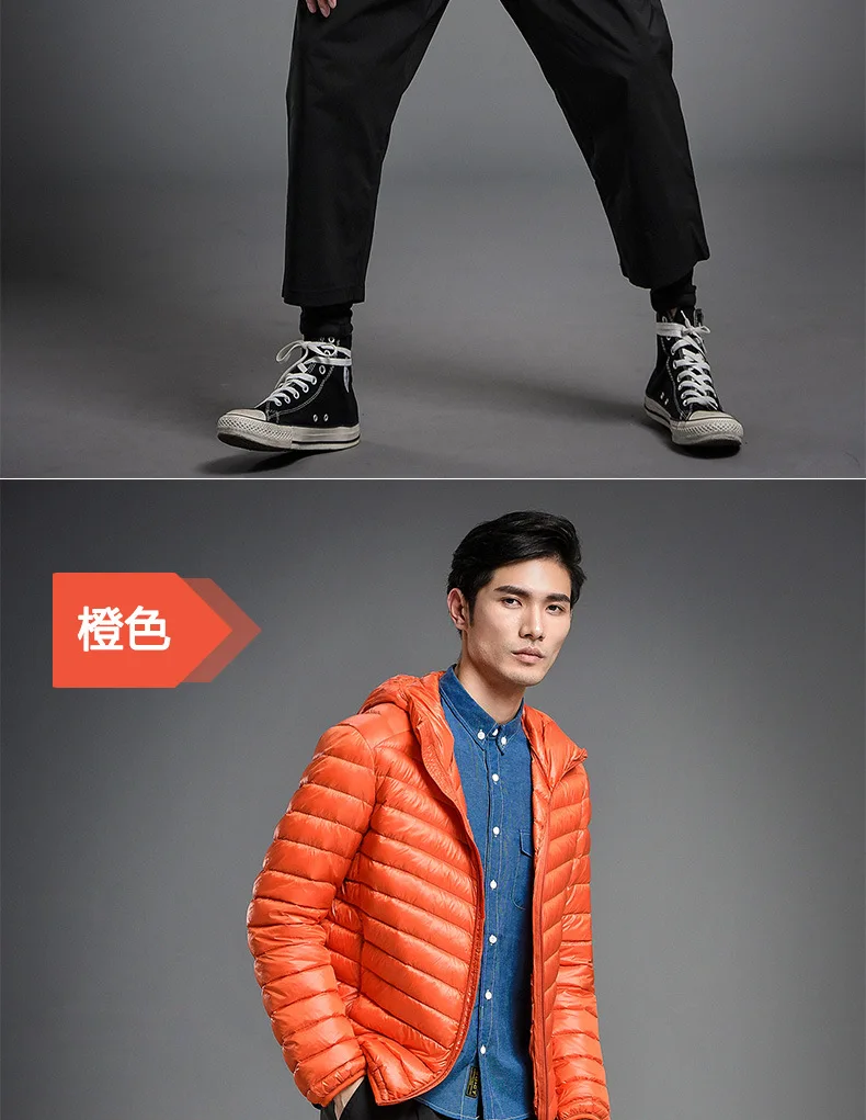 2023 Autumn and Winter Lightweight White Duck Down Jacket Men Sports Hooded Short Large Size Stand Collar Jacket Ultralight Tops