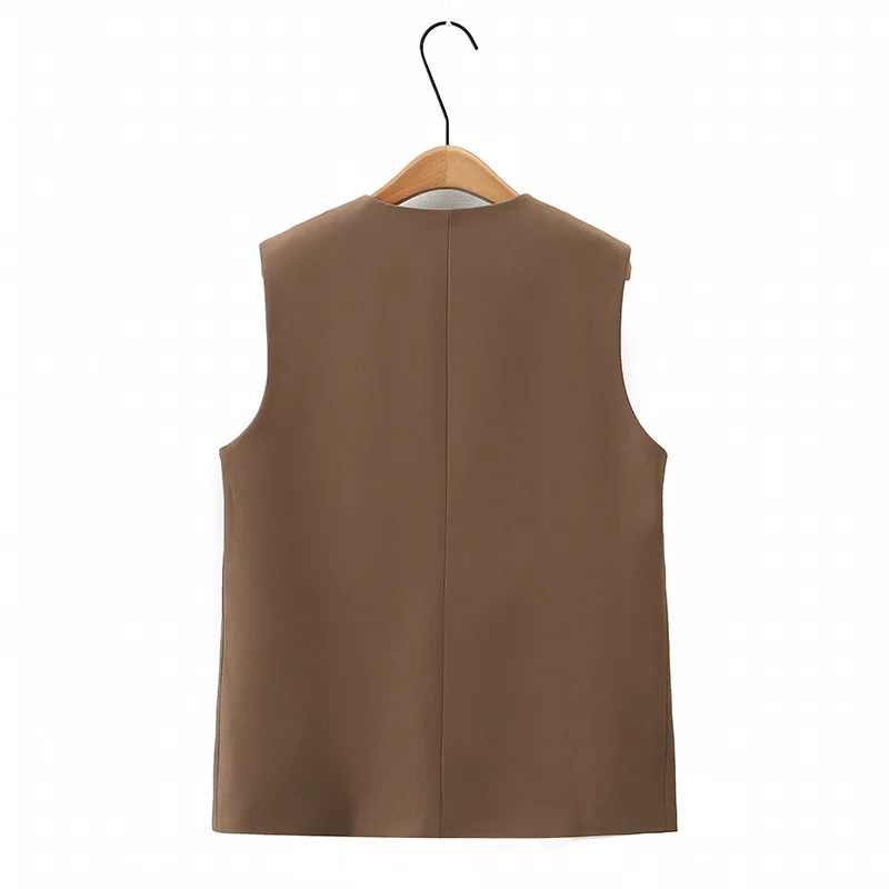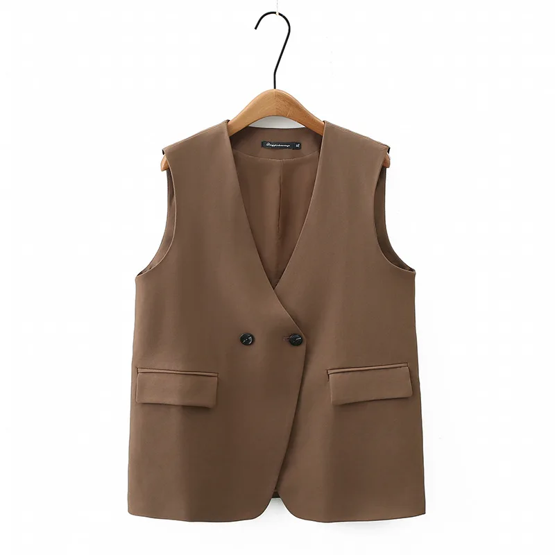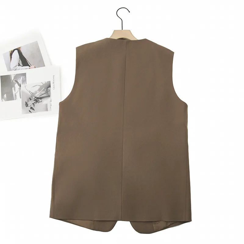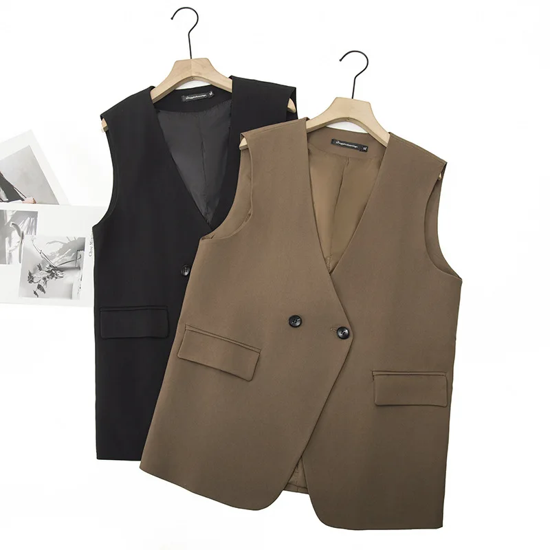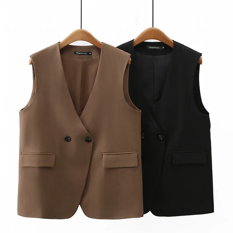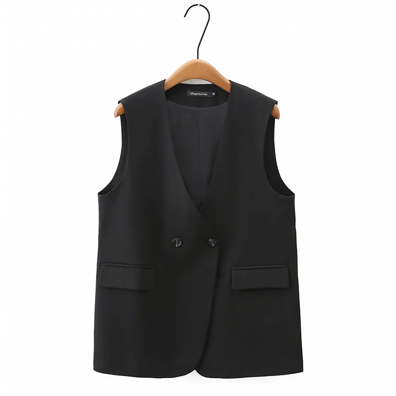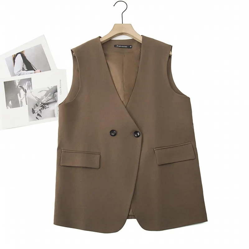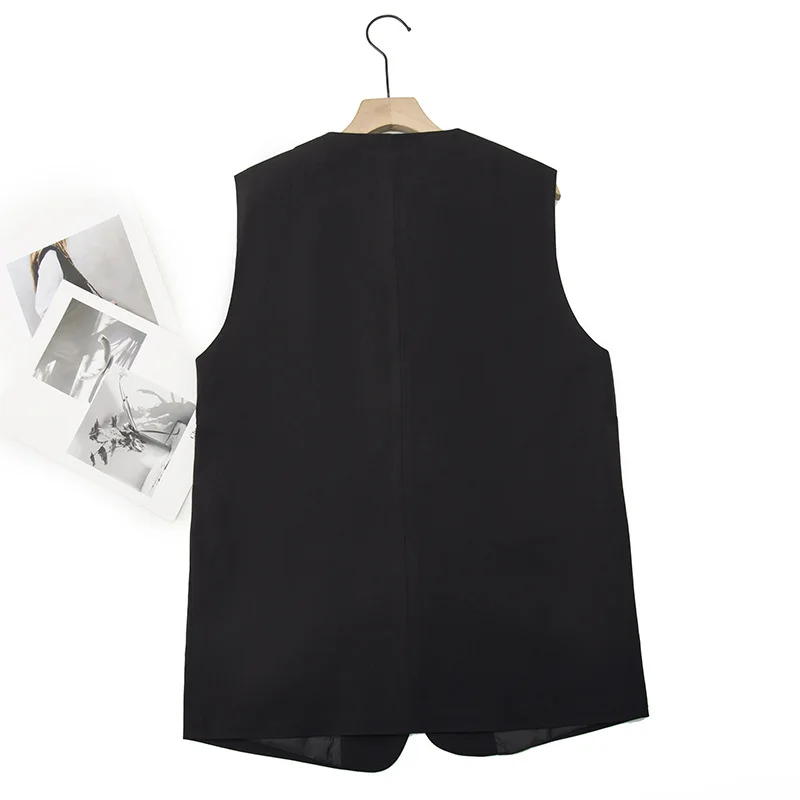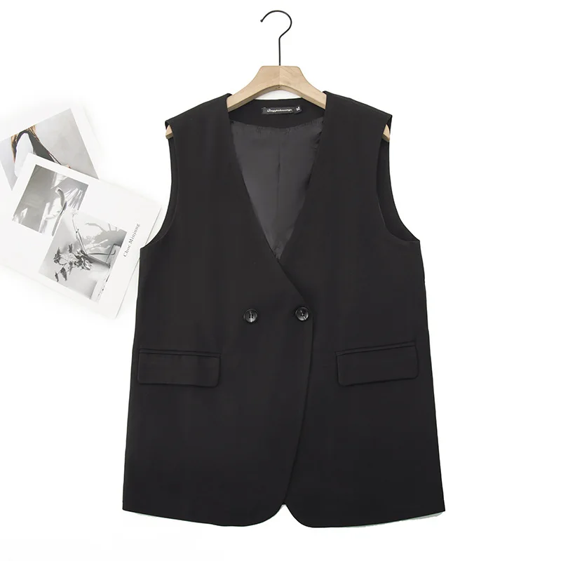 2023 Autumn Women Sleeveless Jacket Plus Size Casual Clothing MD-LONG Double Breasted Suit Vest Curve Outwear K6 2326