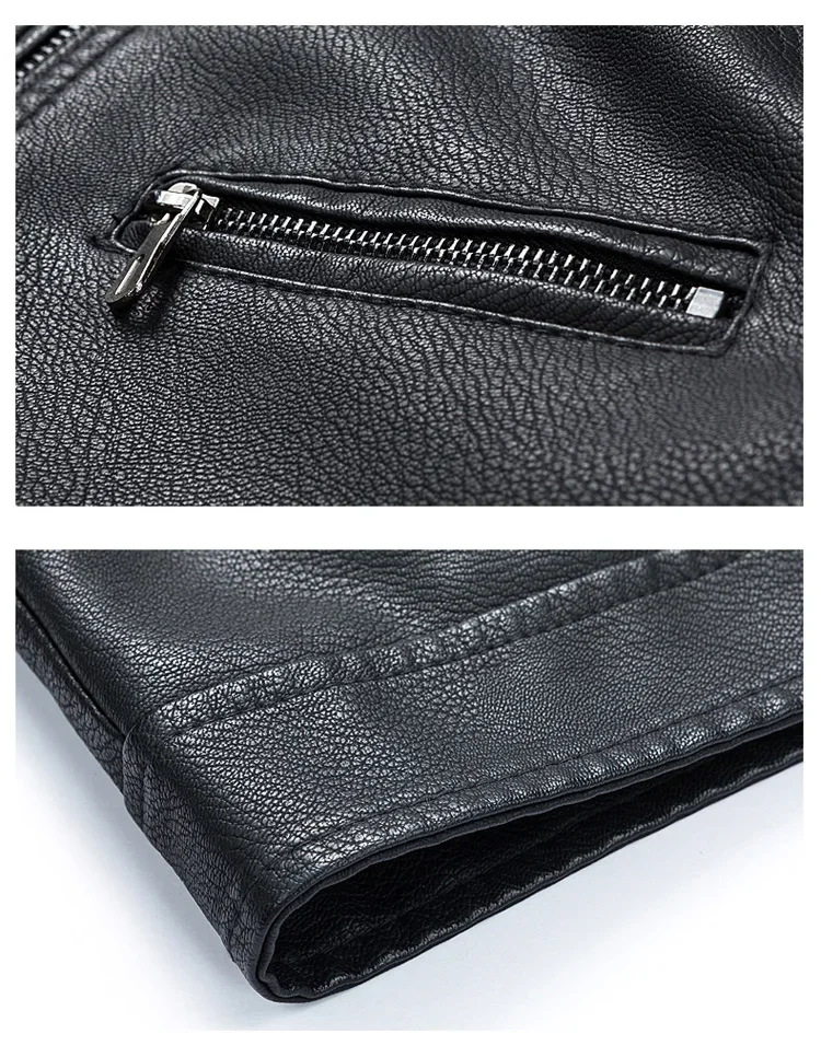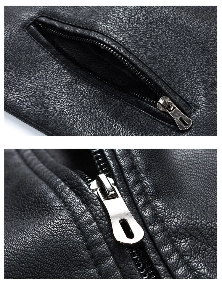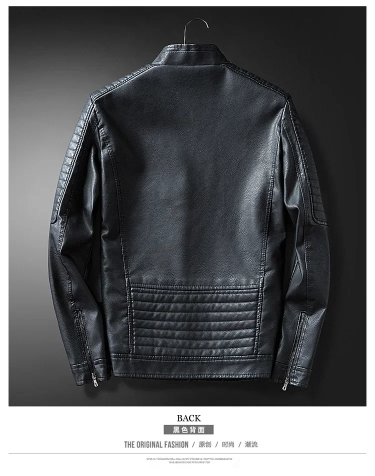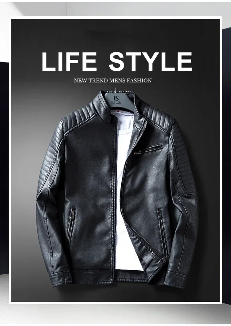 2023 Casual Motorcycle Windbreaker Zip Stand Collar Faux Leather Jacket Men Slim High Quality Fashion Wool Liner Coat Streetwear