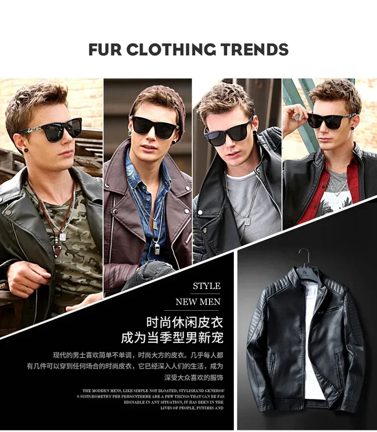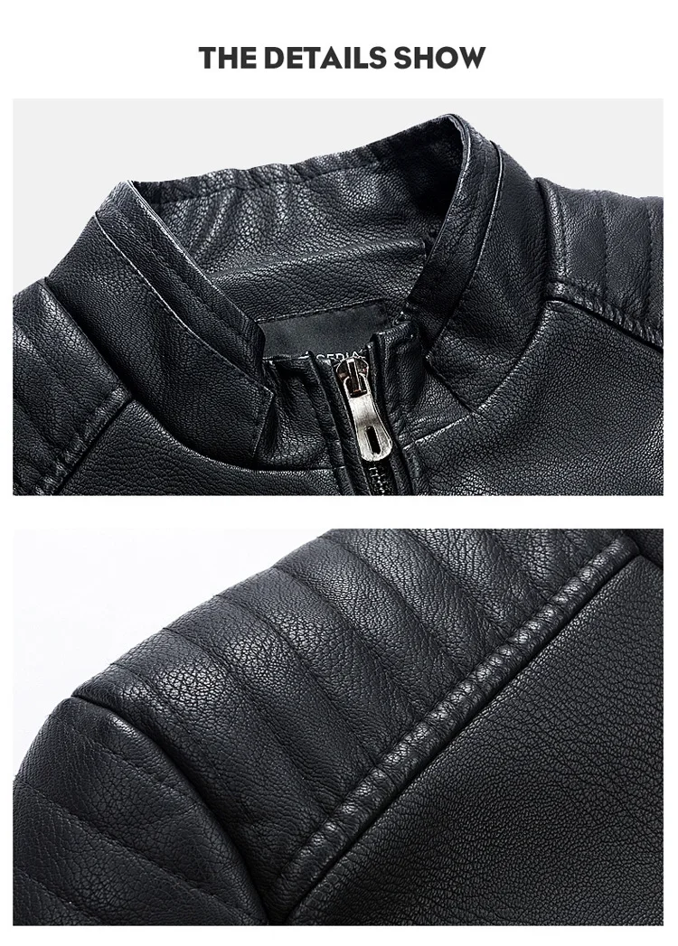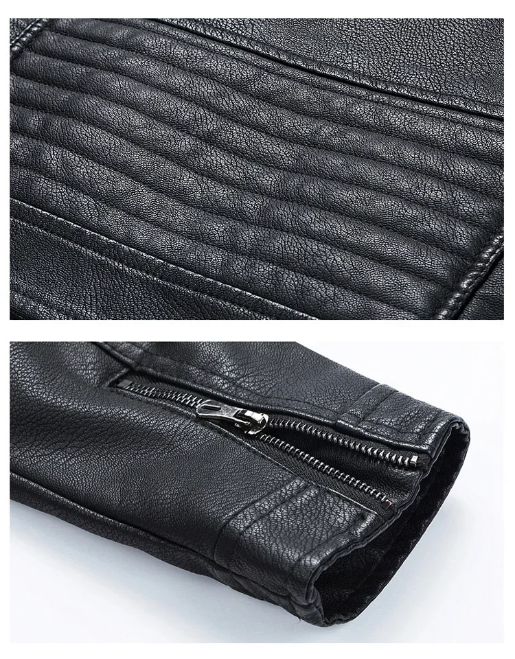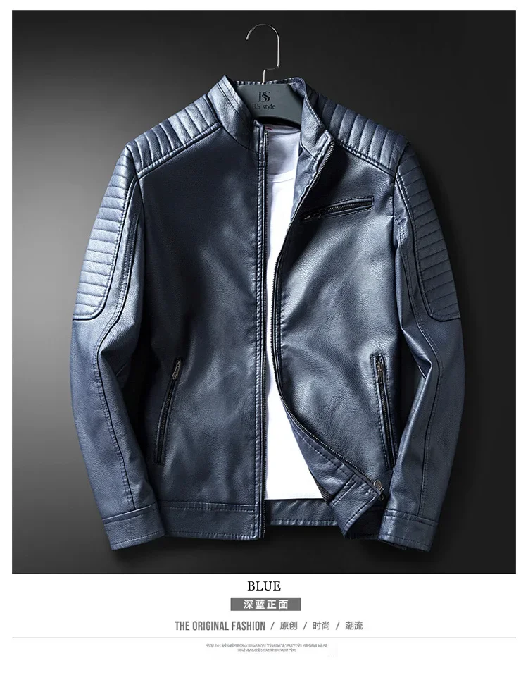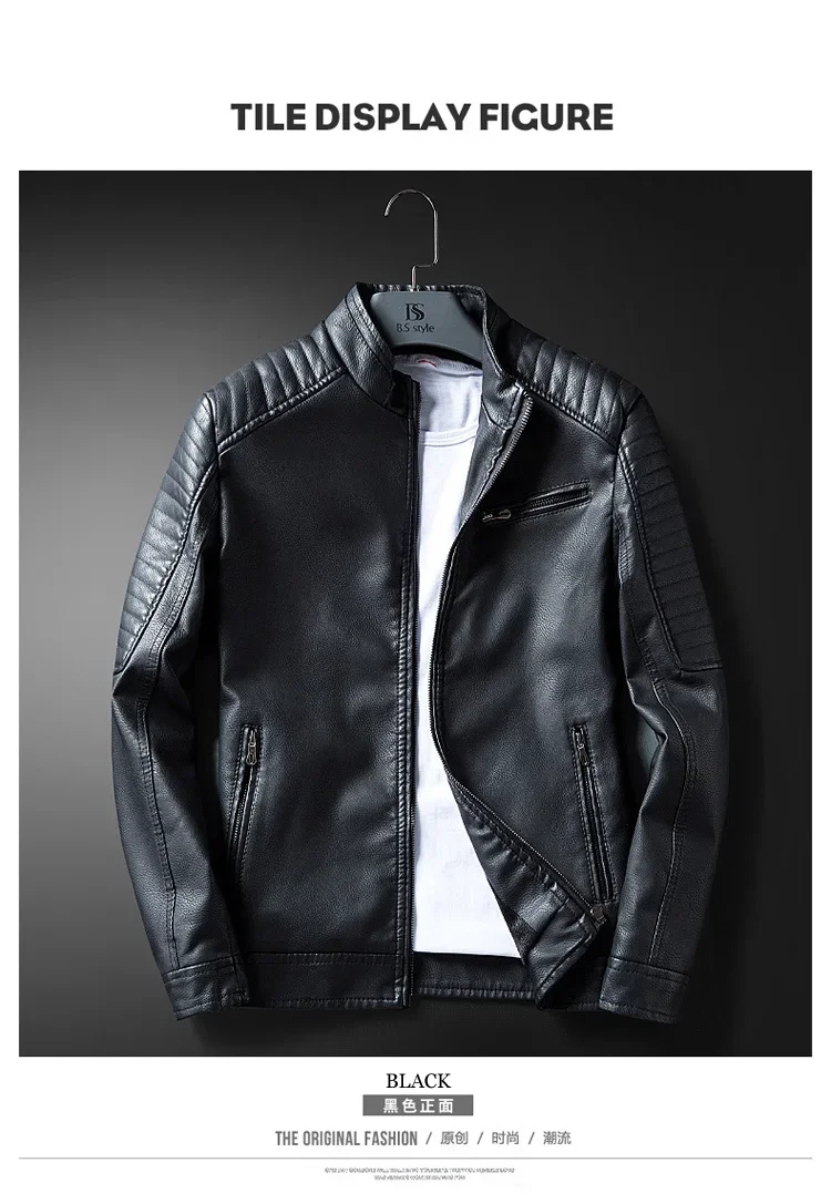 2023 Casual Motorcycle Windbreaker Zip Stand Collar Faux Leather Jacket Men Slim High Quality Fashion Wool Liner Coat Streetwear