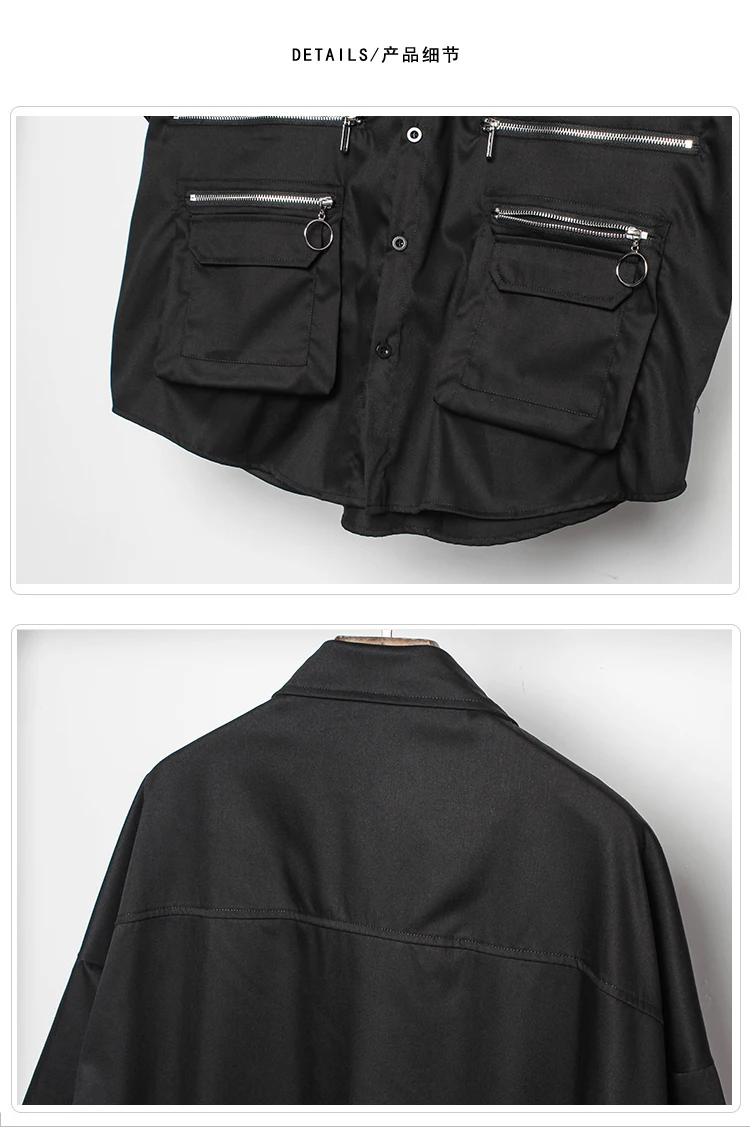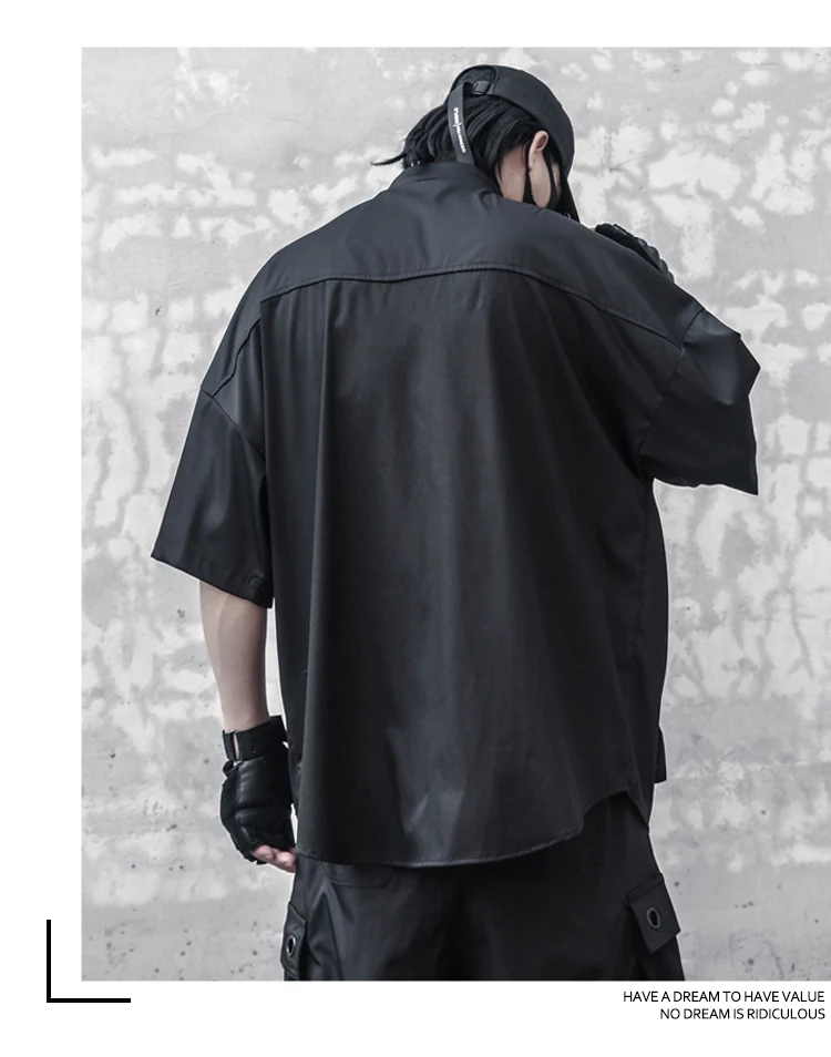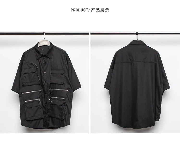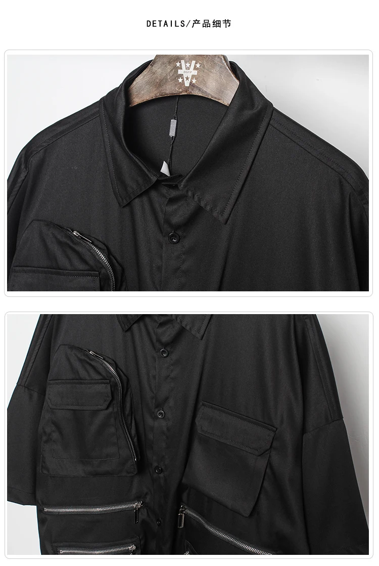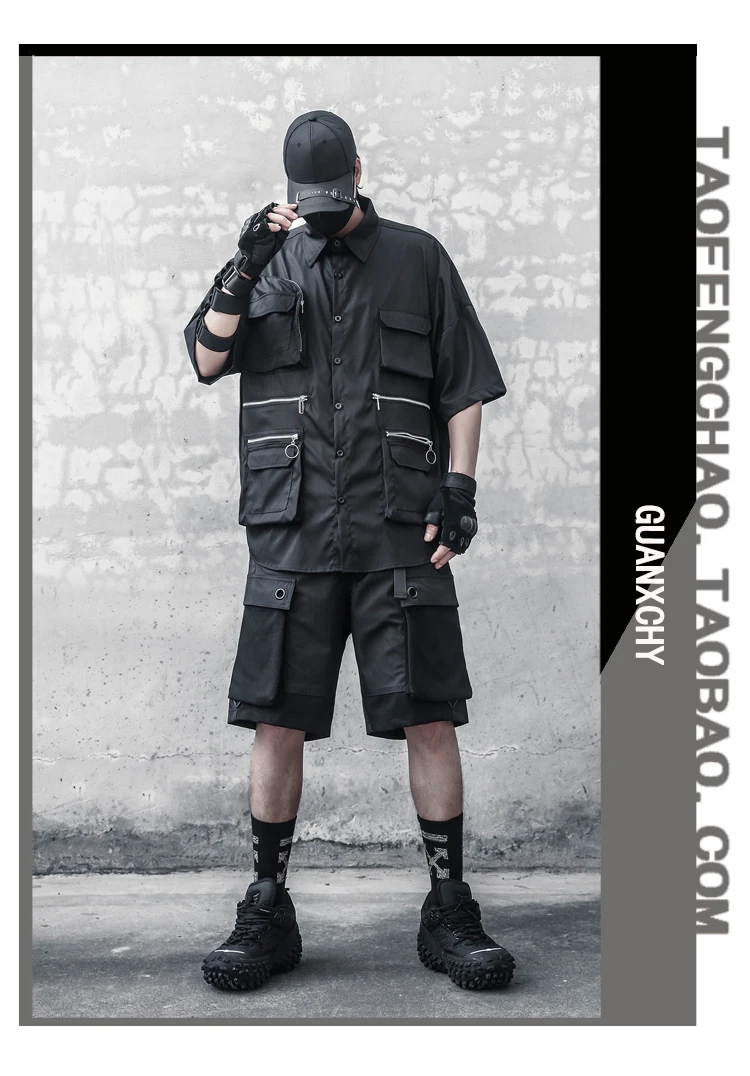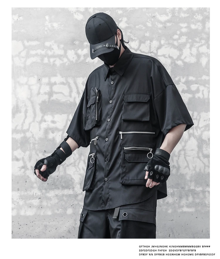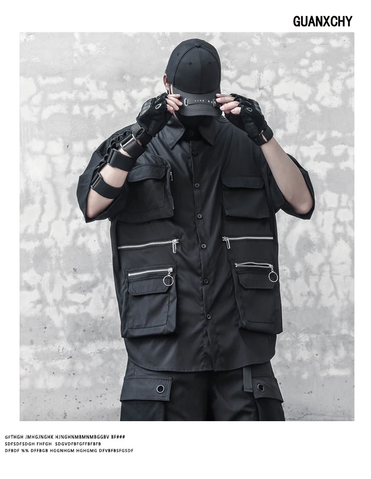 2023 Multi-pockets Tactical Techwear Cargo Shirt Mens Gothic Punk Hip Hop Short Sleeve Shirts Streetwear