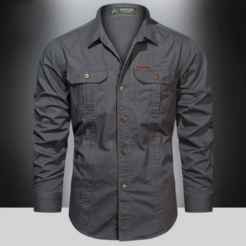 2023 New Autumn Long-Sleeve Shirt Multi-Pocket Button-Down Shirt Tooling Shirt 7 Colors Thick Cotton Casual Business Men’s Wear