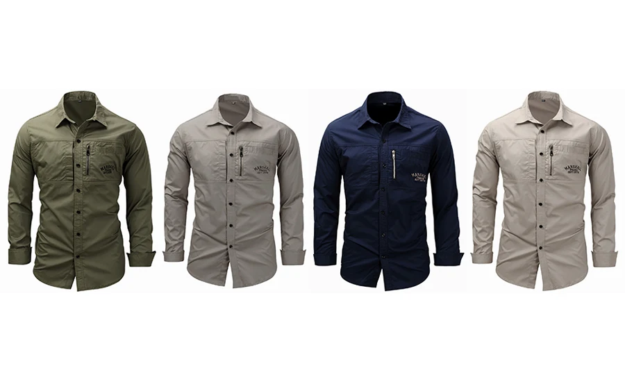 2023 New Fashion Men’s 100% Cotton Multi-Pocket Safari Shirt Long Sleeve Casual Solid Color Button Down Shirts with Embroidery
