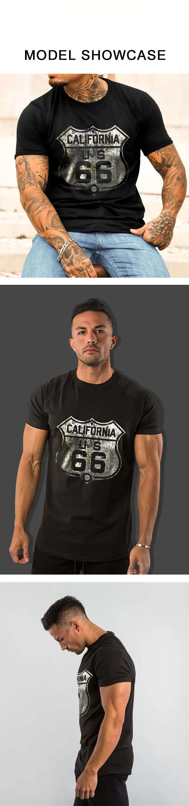 2023 New Men’s Vintage T-Shirt 3D Printed American Plus-Size Hip-Hop Personality 66 Designed Short-Sleeved Daily Casual Clothing