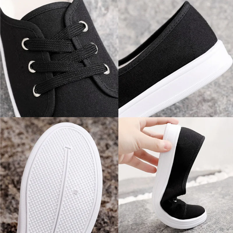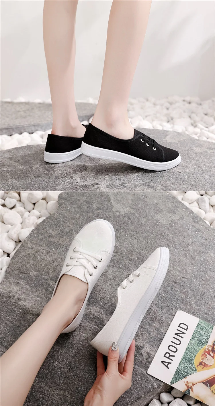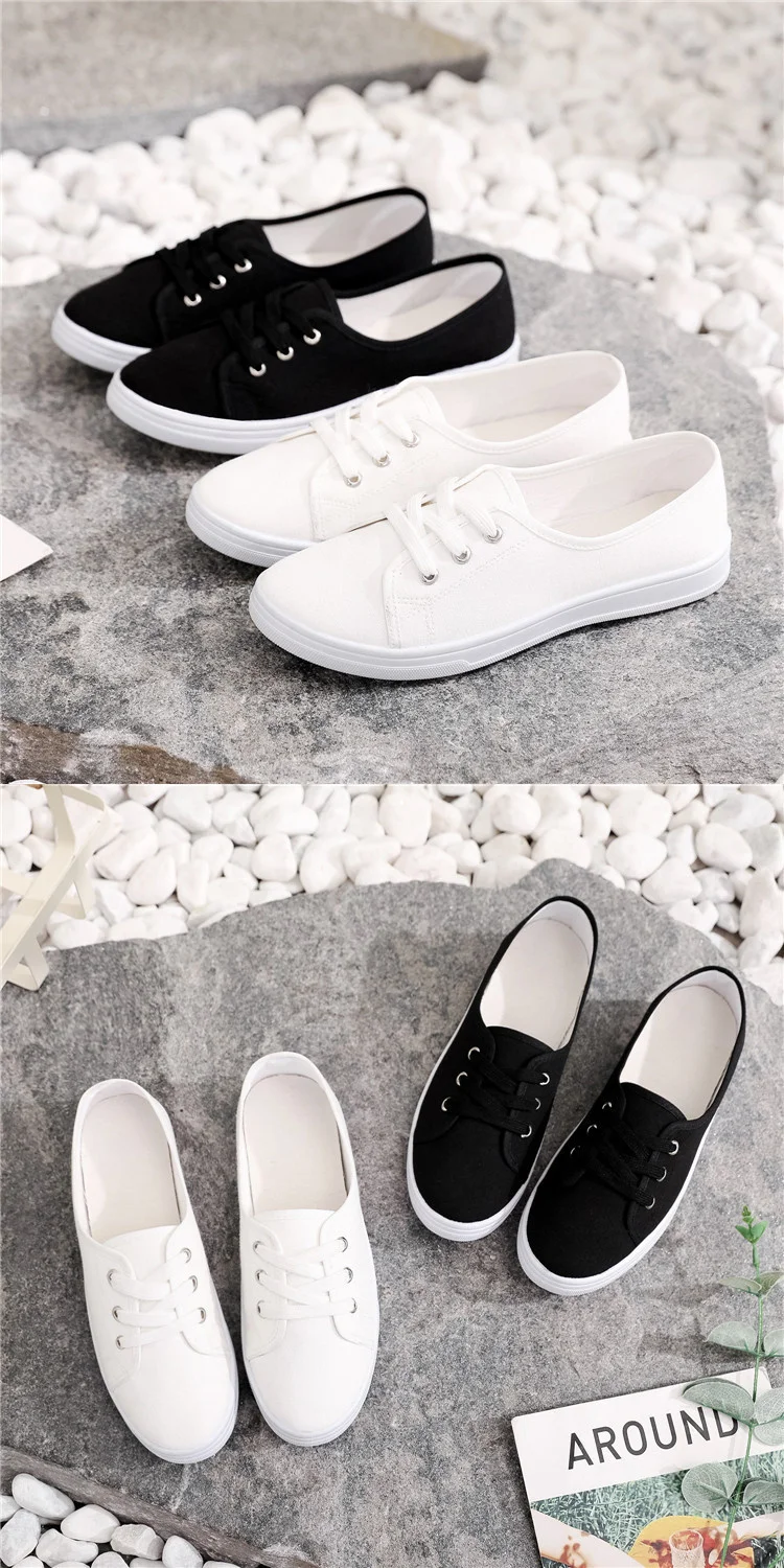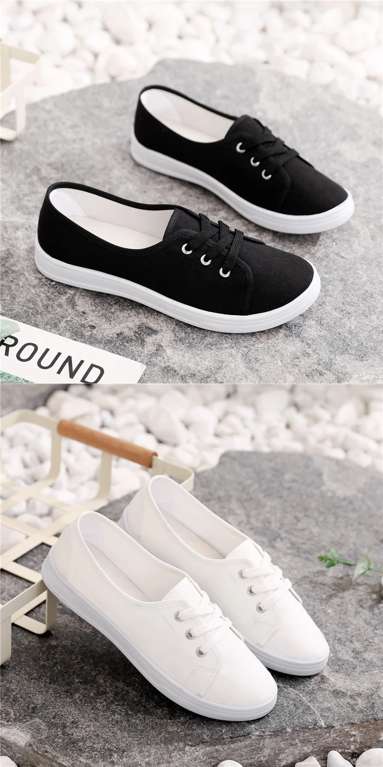 2023 New Summer Women Shoes Canvas Versatile Flat Sneakers Ladies Tenis Casual Low Upper Lace Up Slip on White Black Laofers