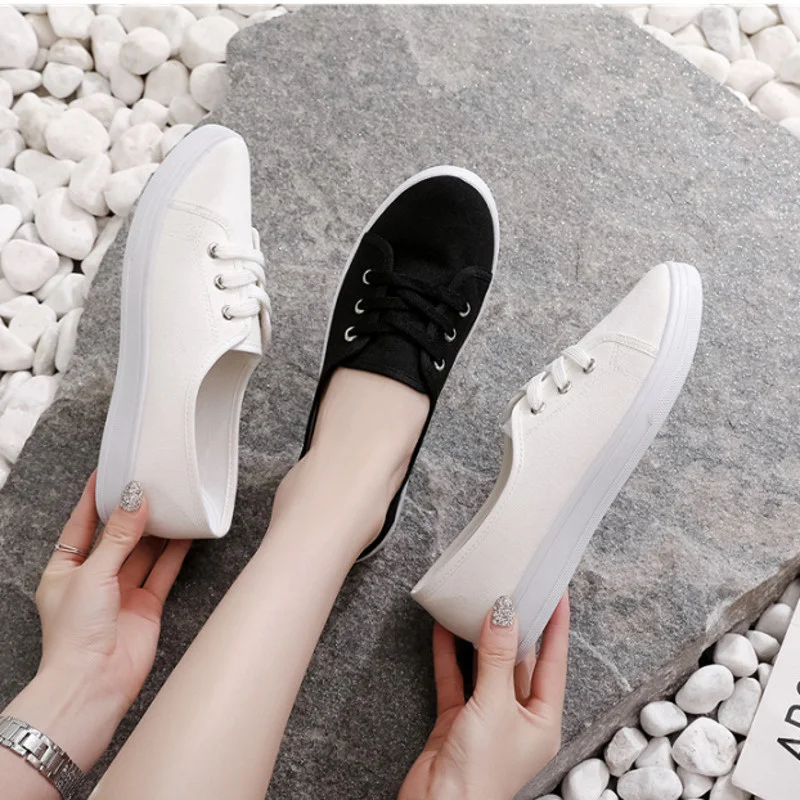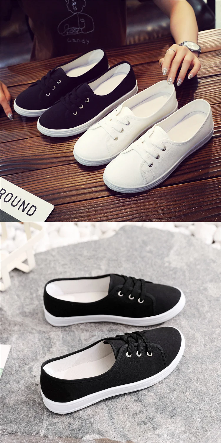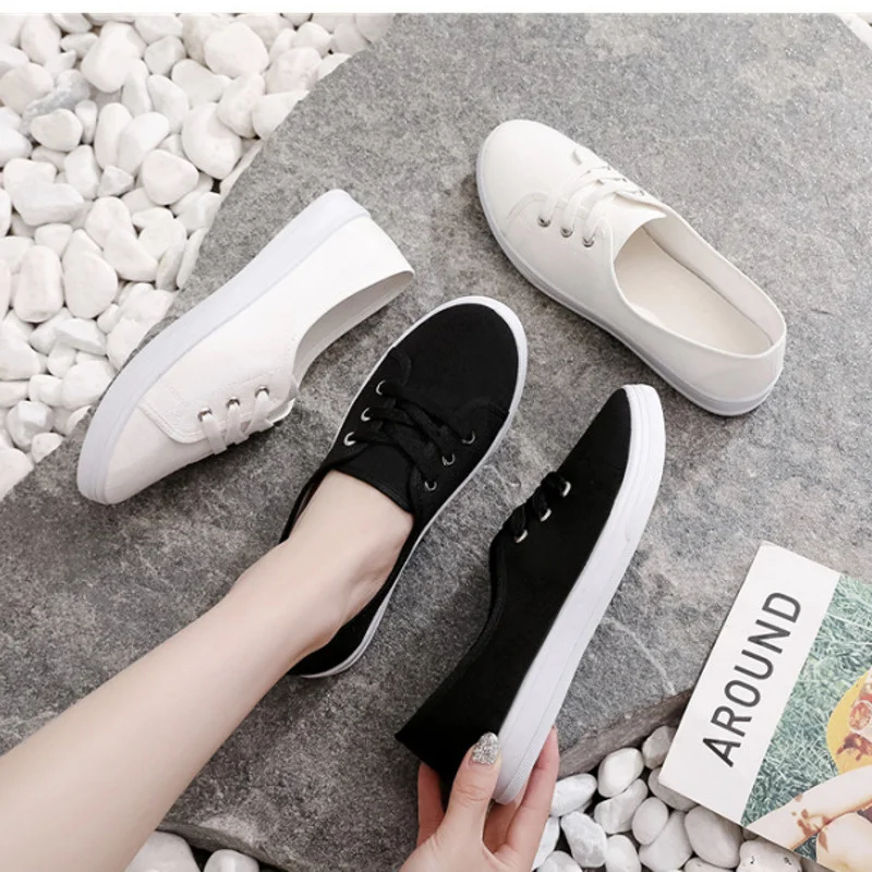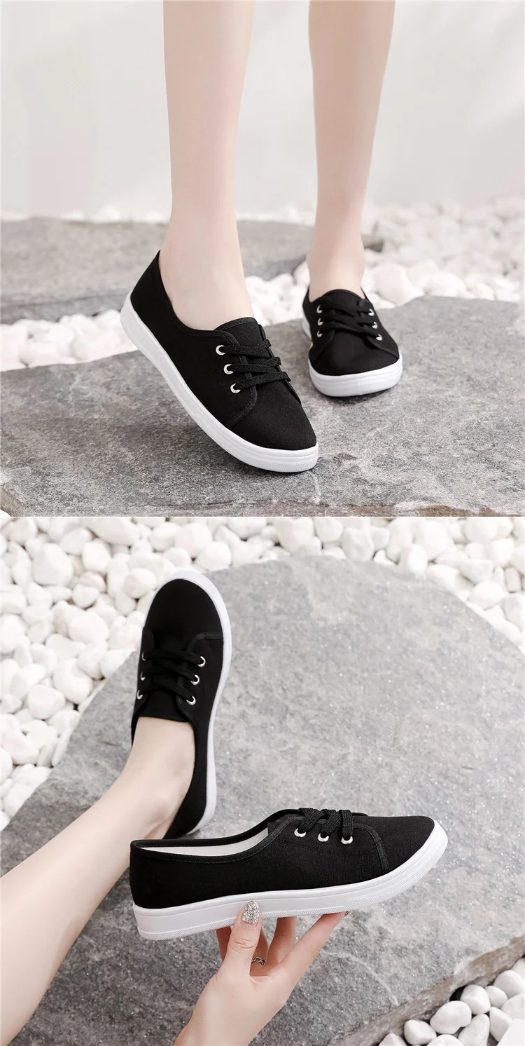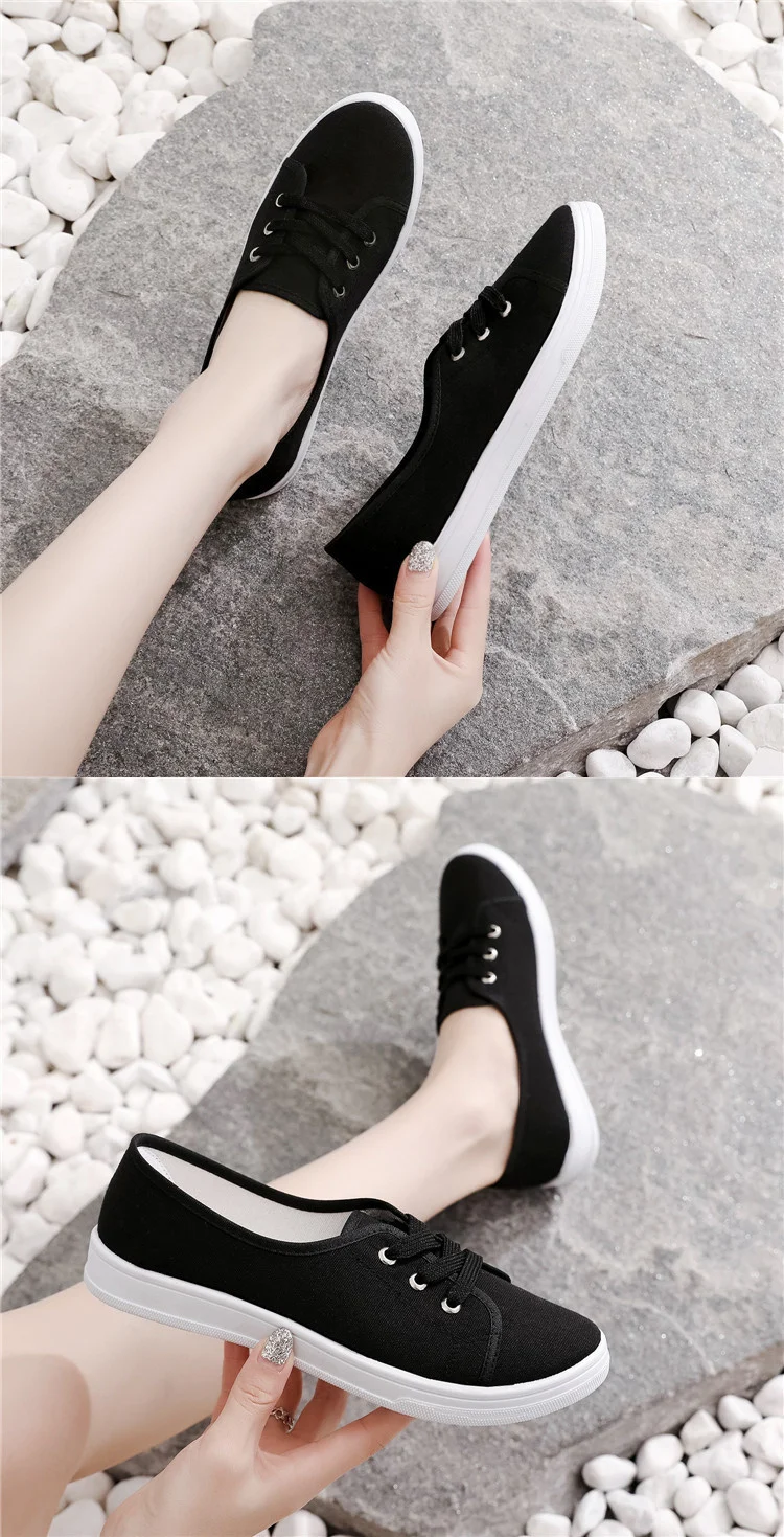 2023 New Summer Women Shoes Canvas Versatile Flat Sneakers Ladies Tenis Casual Low Upper Lace Up Slip on White Black Laofers