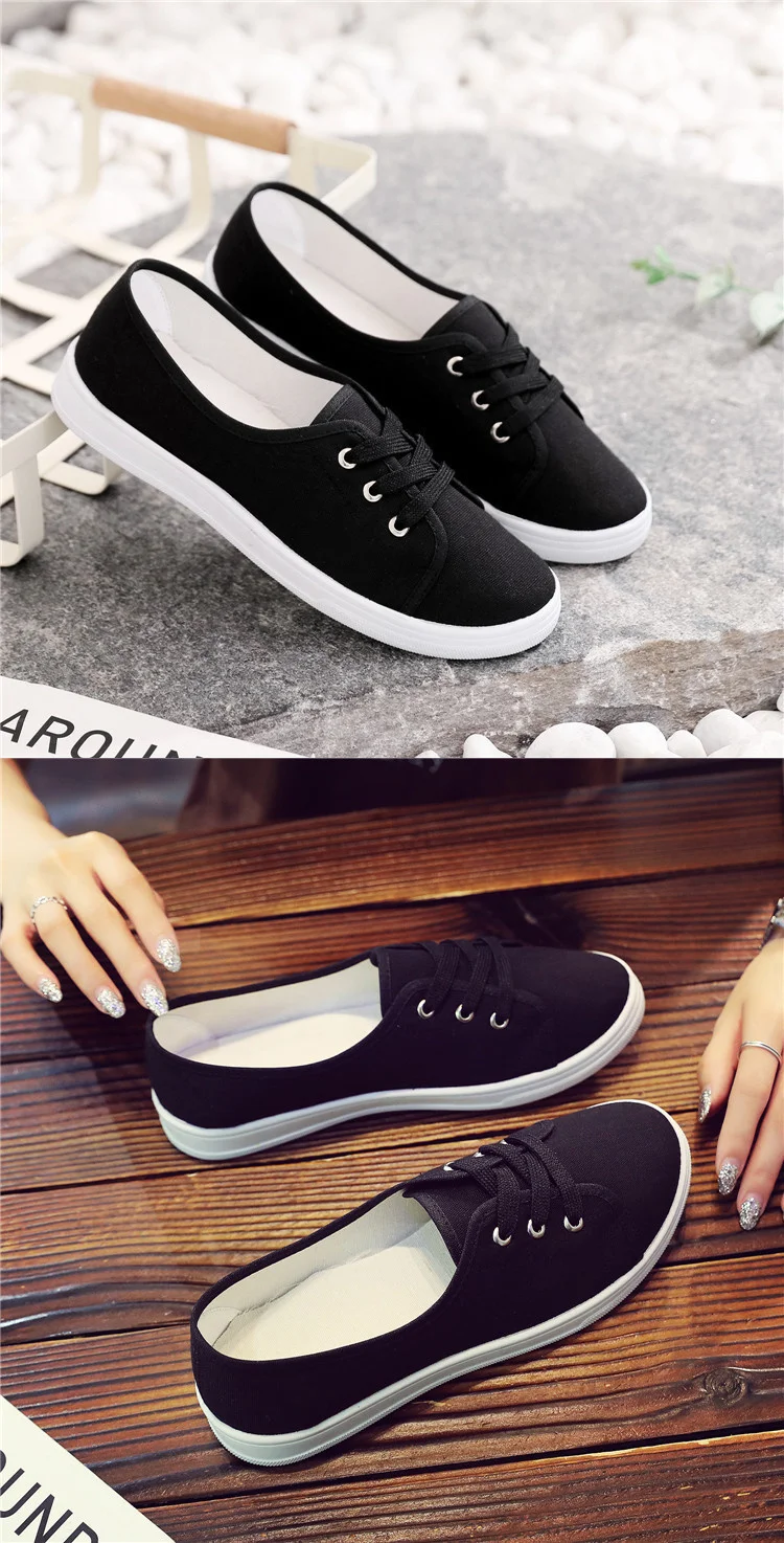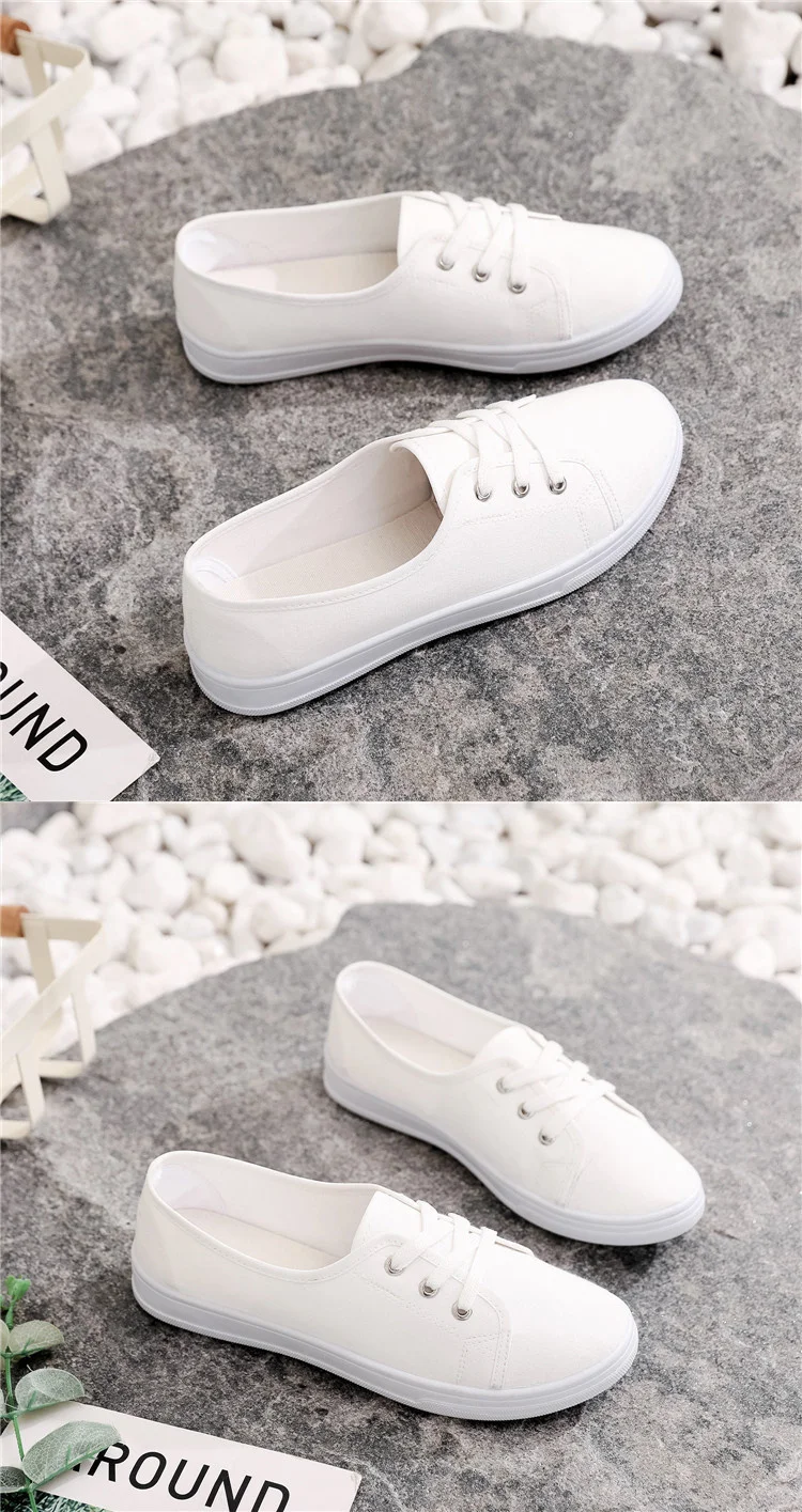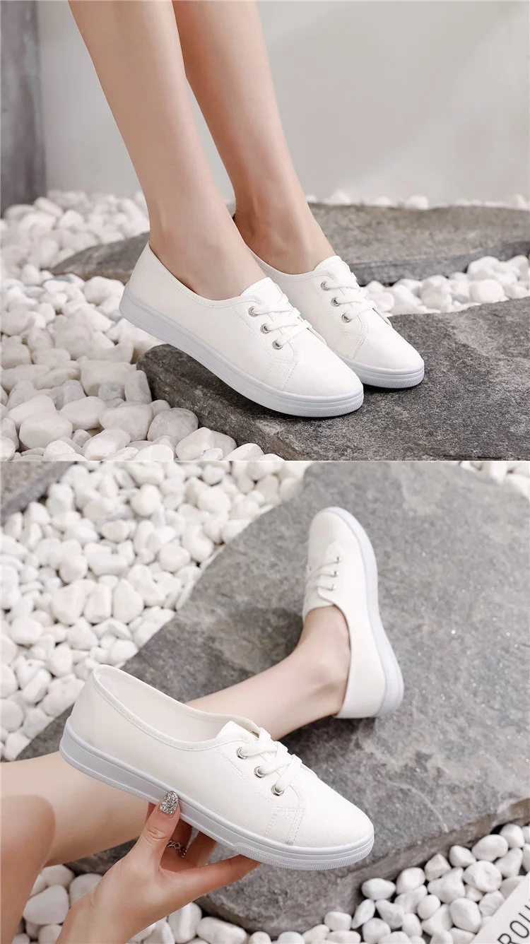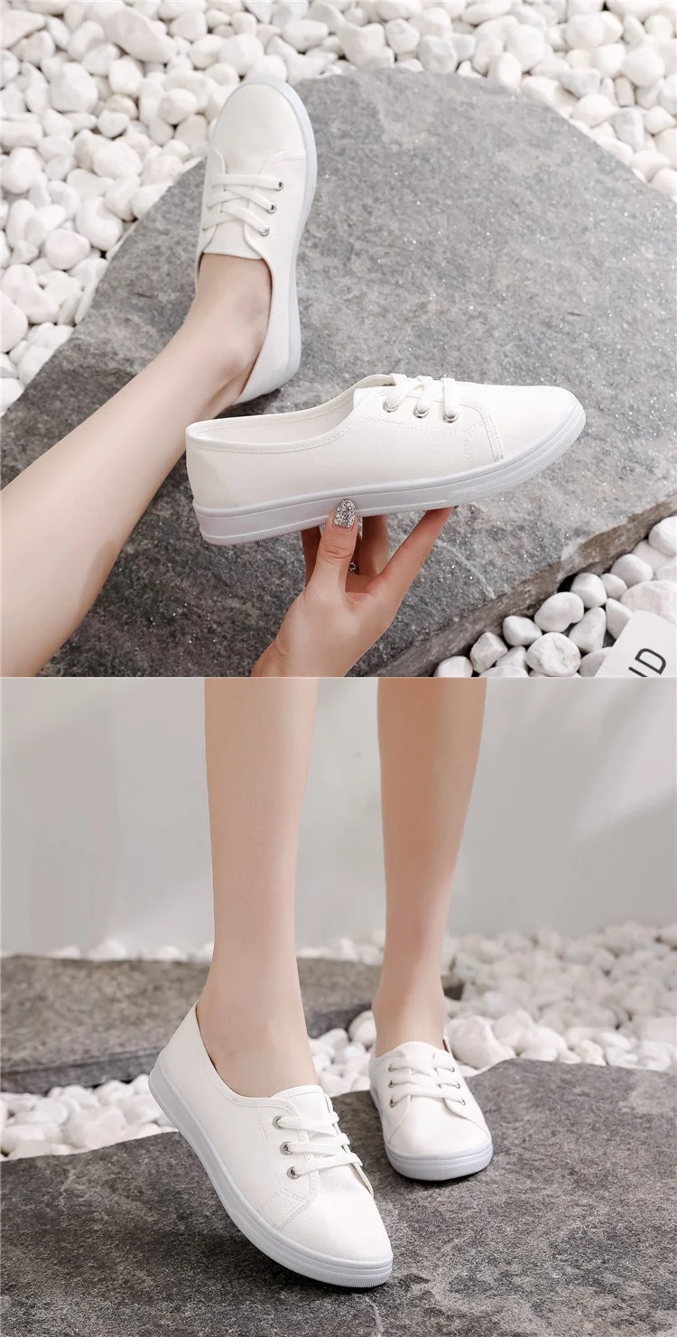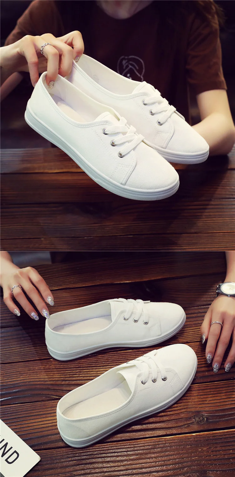 Lady Classic Round Toe White Canvas Shoes for Student School Women Comfort Street Lace Up Shoes Zapatos De Mujer