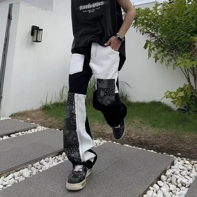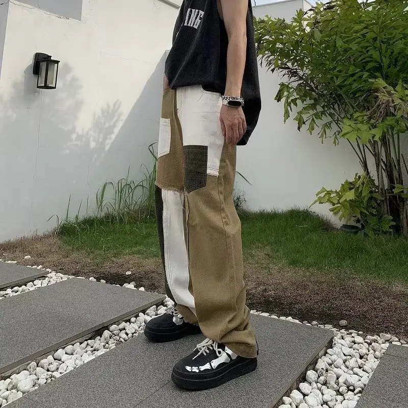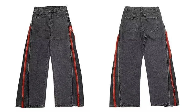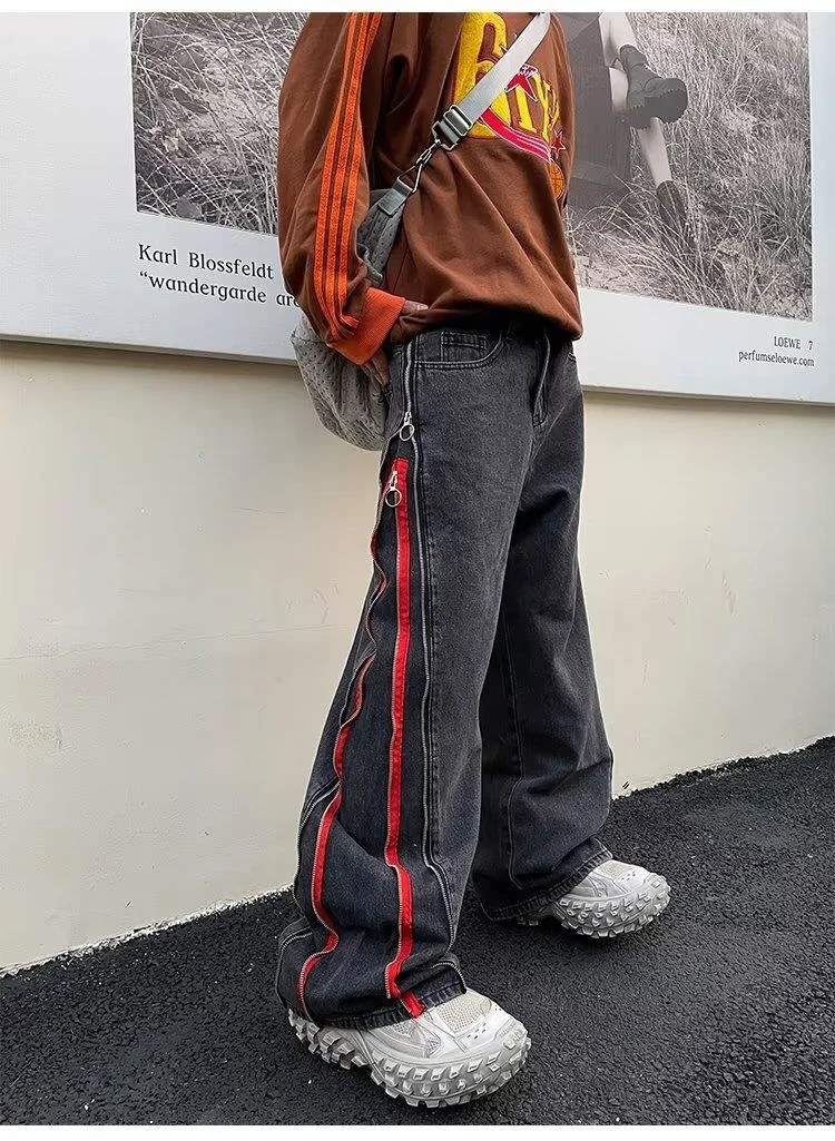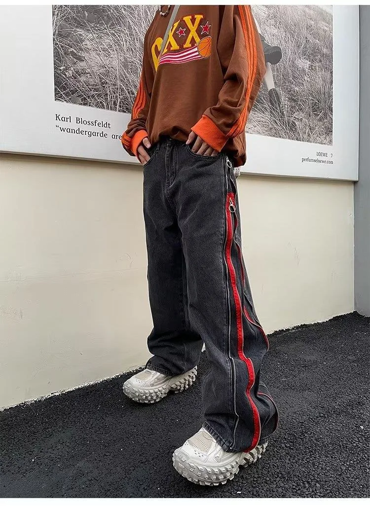 2023 Ribbon Double Zipper Edge Baggy Y2k Jeans Pants Men Harajuku Streetwear Wide Leg Loose Harem Denim Trousers for Man Autumn