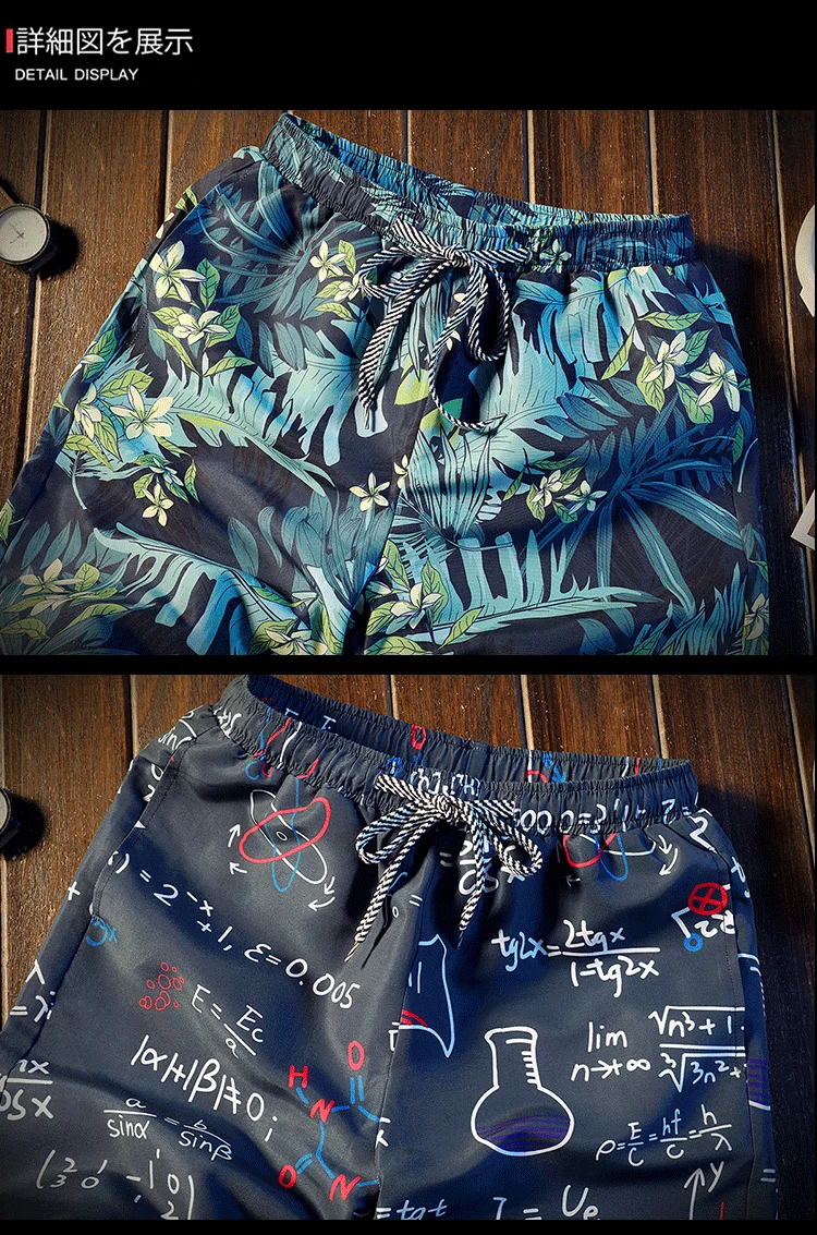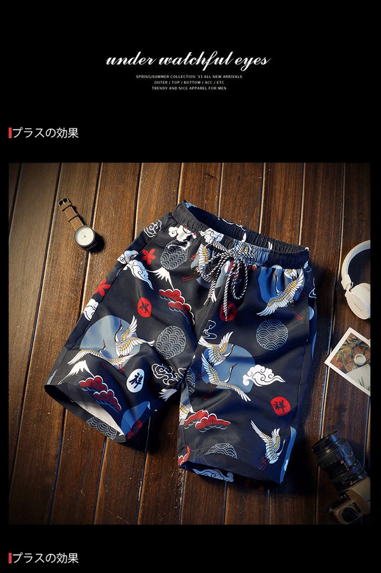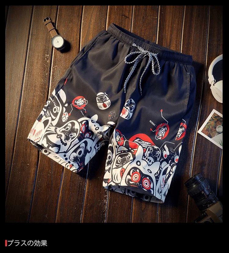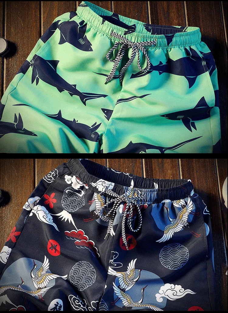 Men's Loose-fitting Beach Pants Drawstring Quick-drying Summer Shorts Men's Retro Textured Print Casual Oversized Sports Shorts