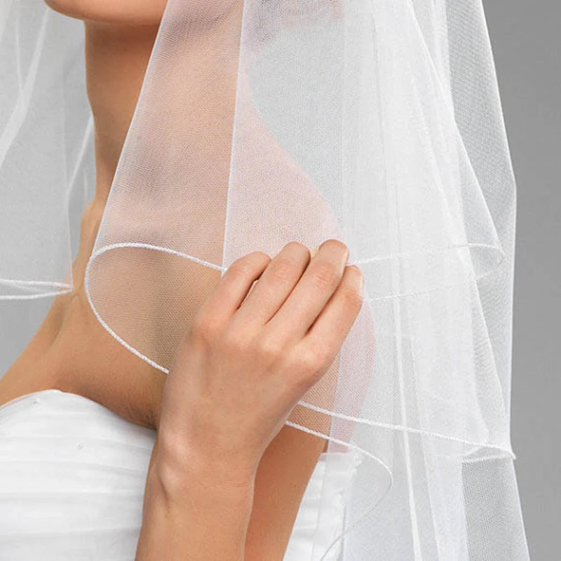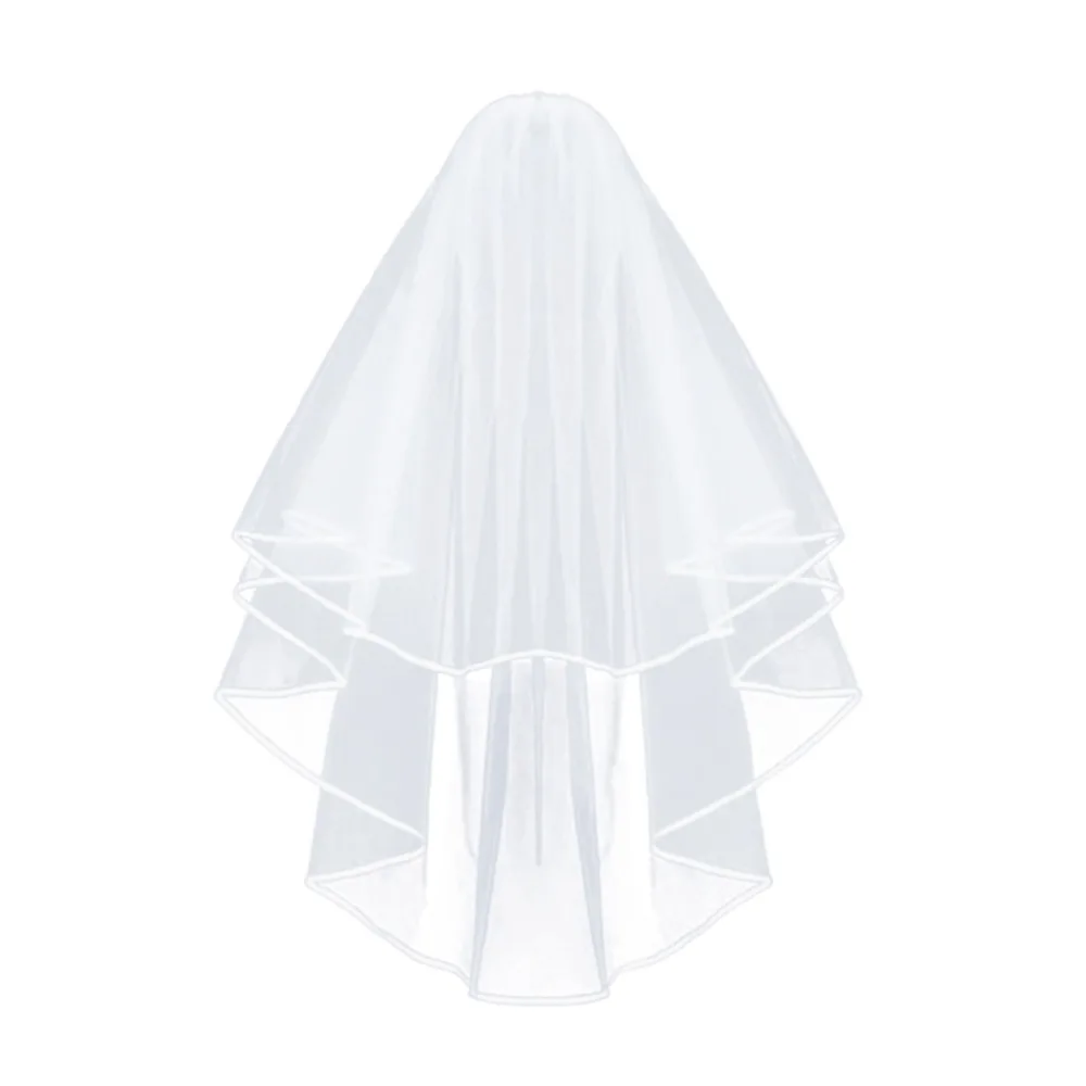2023 Wedding Simple Tulle White Ivory Two Layers Bridal Veil Ribbon Edge Bride Accessories 75cm Short Women with Metal Comb