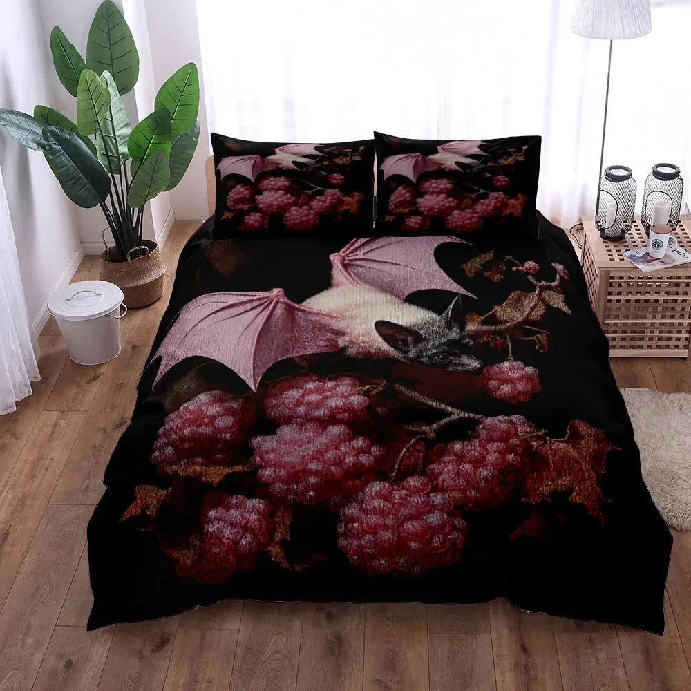 2024 3D Gothic Bats Black Duvet Cover Set King Queen Double Full Twin Single Size Duvet Cover Pillow Case Bed Linen Set
