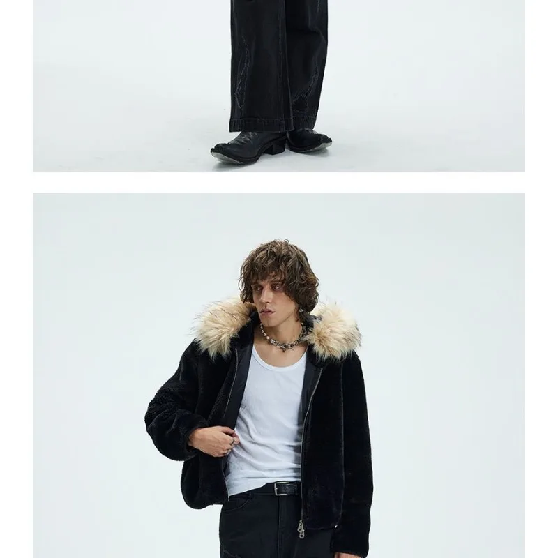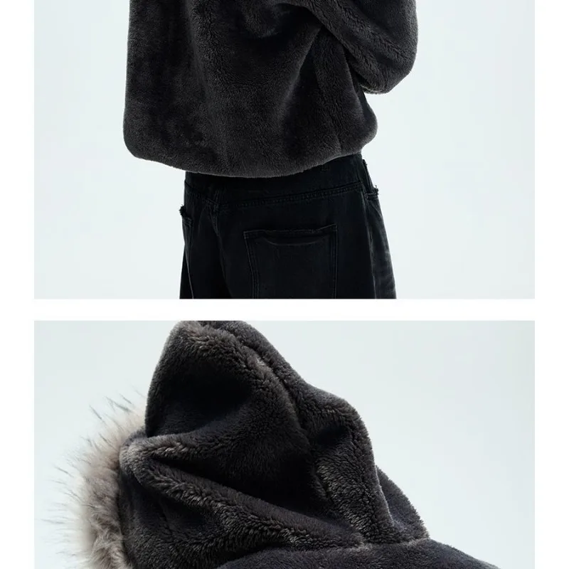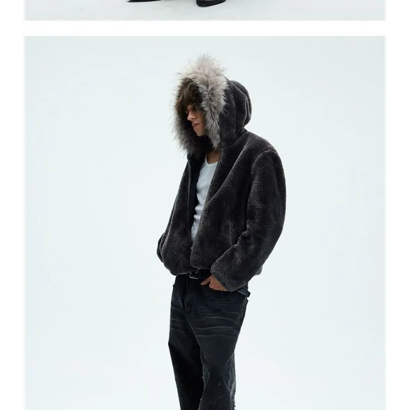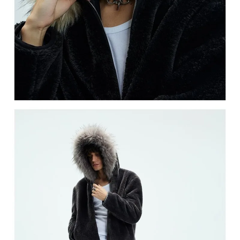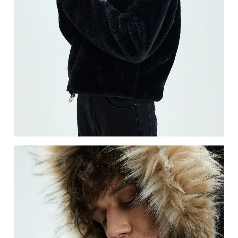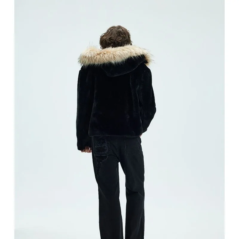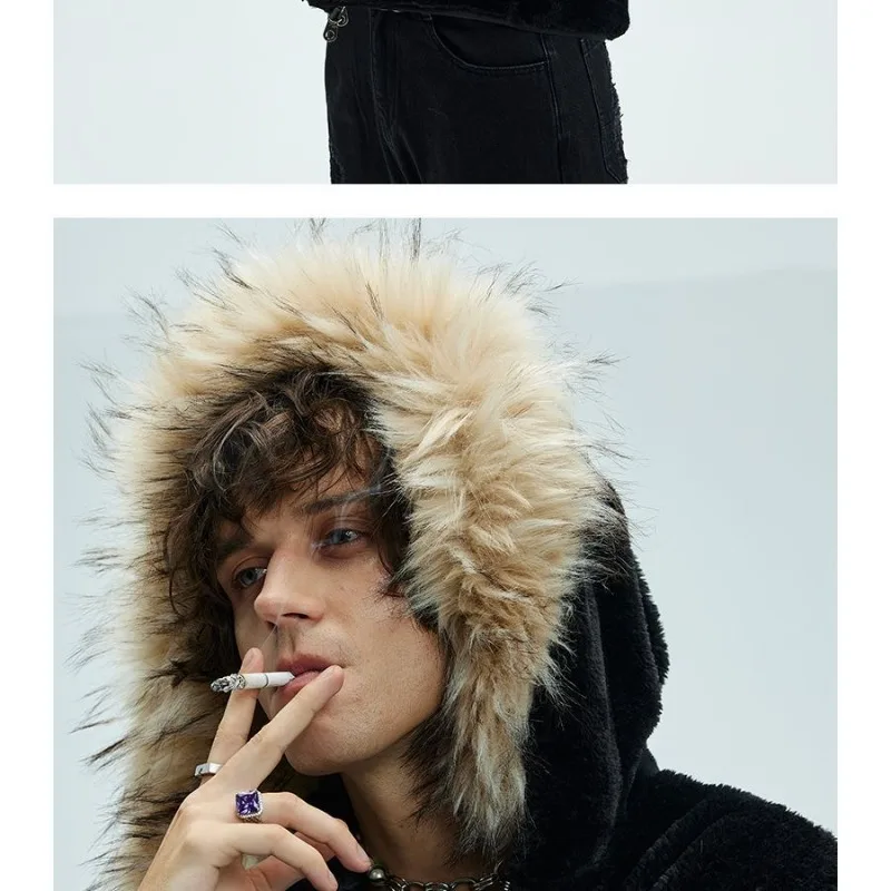 2024 Autumn and Winter New Fashion Solid Color Hooded Fur Mao Mao Jacket Men Punk Thick Warm Imitation Fox Fur Coat Trend Joker