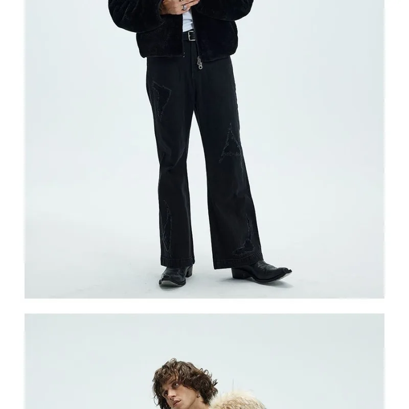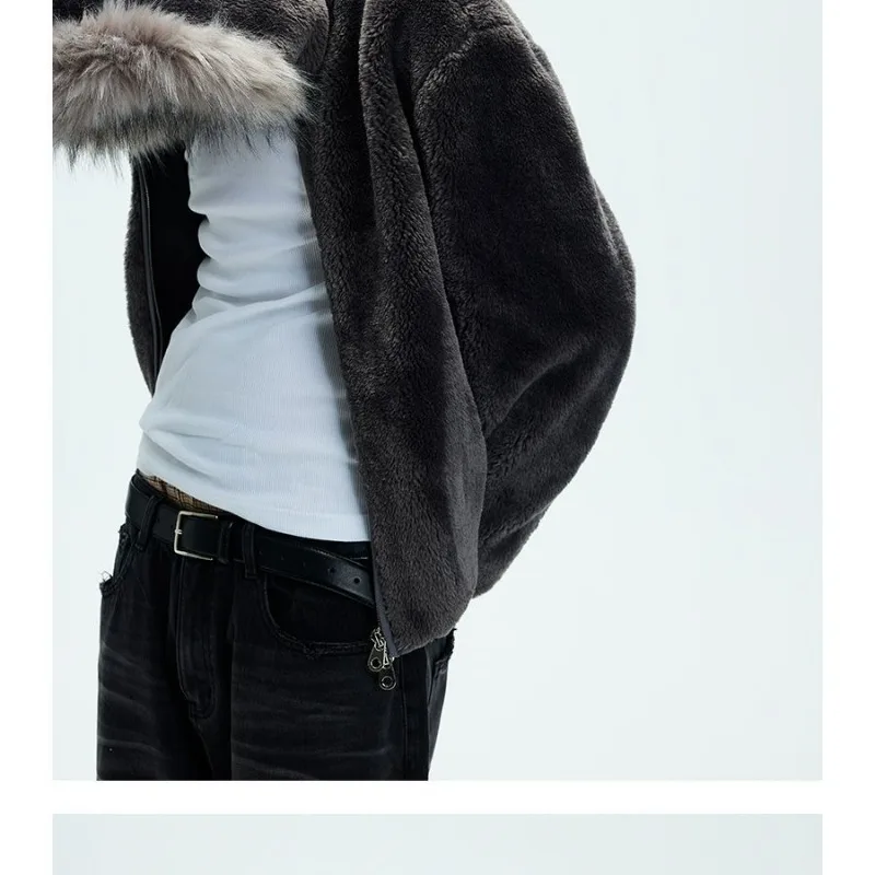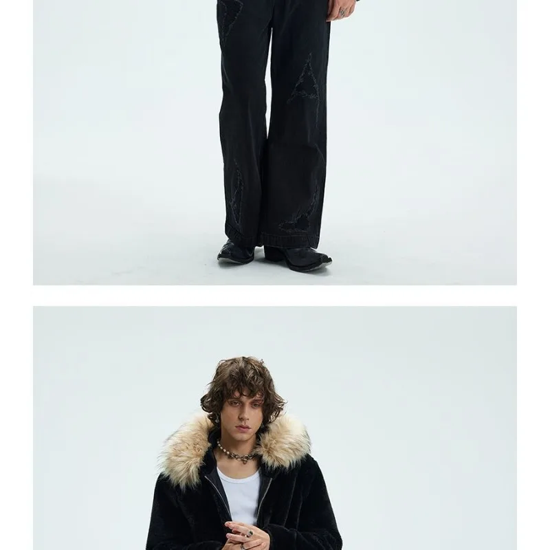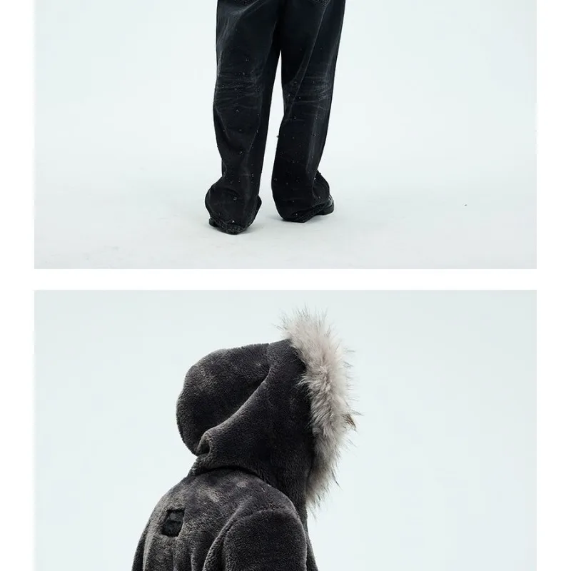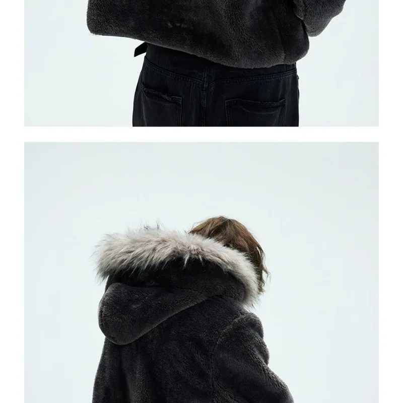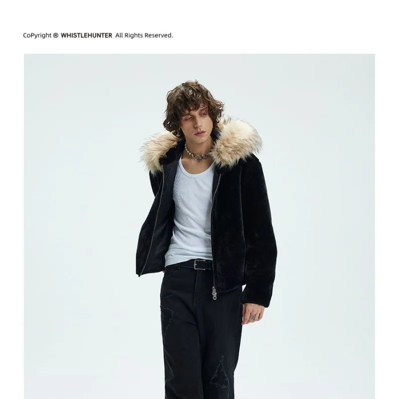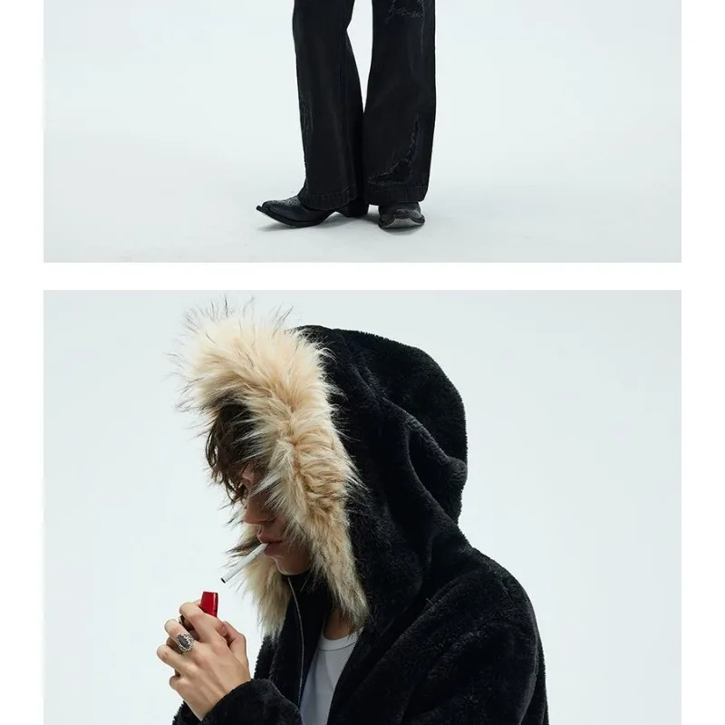 2024 Autumn and Winter New Fashion Solid Color Hooded Fur Mao Mao Jacket Men Punk Thick Warm Imitation Fox Fur Coat Trend Joker
