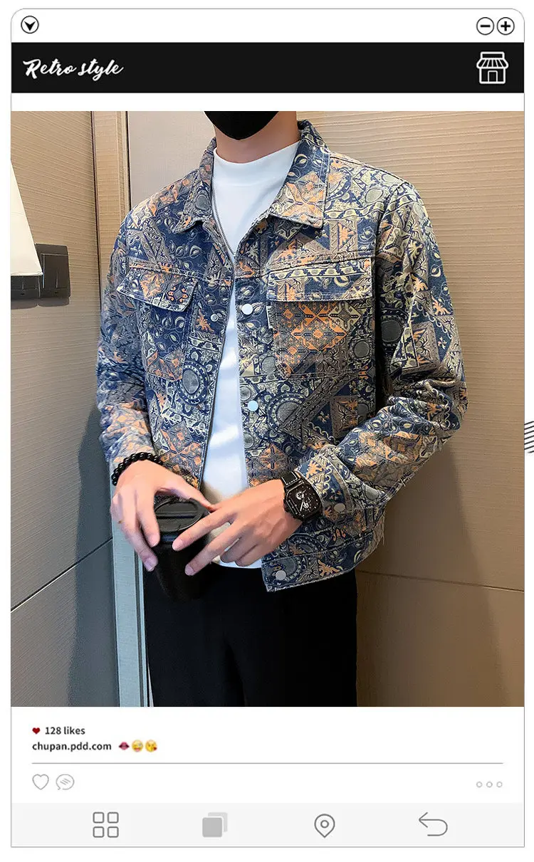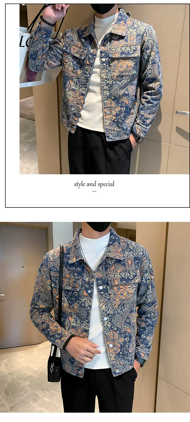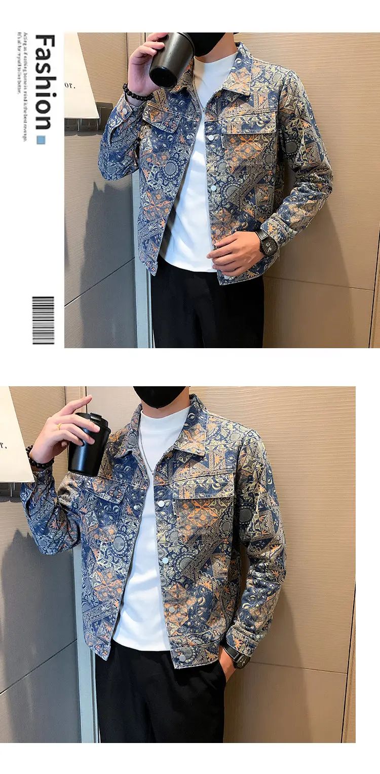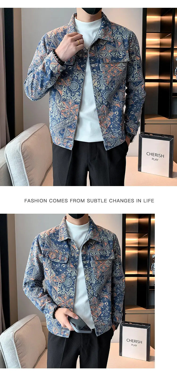 2024 Autumn New Jacquard Denim Jacket Fashion Korean Version Loose Long Sleeve Men Jacket Simplicity Versatile Casual Denim Top