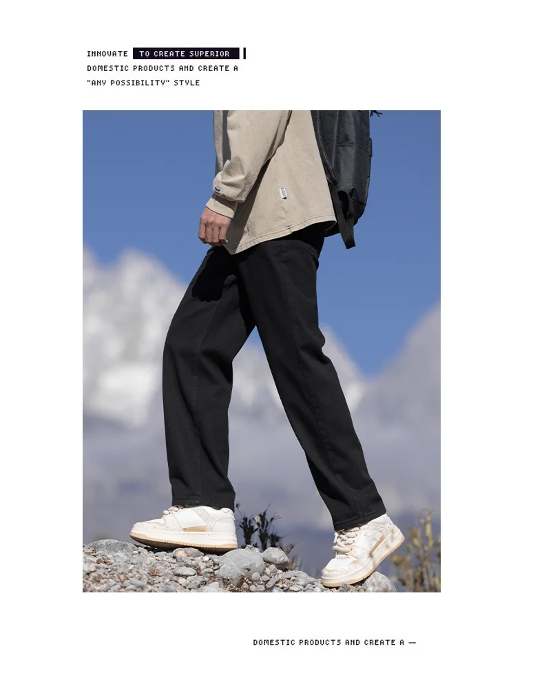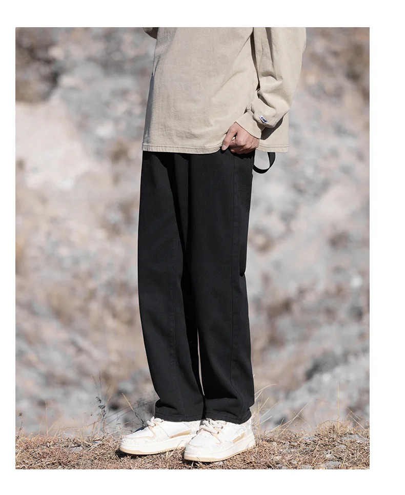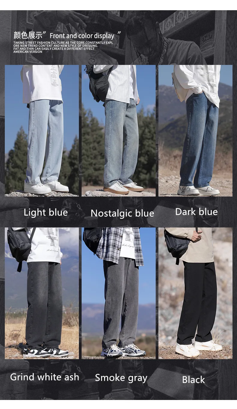 2024 Autumn New Men’s Loose Straight Jeans Korean Style College Student Street Hip Hop Baggy Wide Leg Pants Black Gray Blue y2k