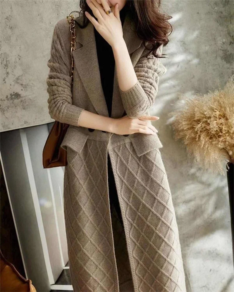 2024 Autumn Winter Female New Wool Coat Cardigan Medium Long Loose Knitted Solid Color Thickened Sweater Women’s Coat French Pop