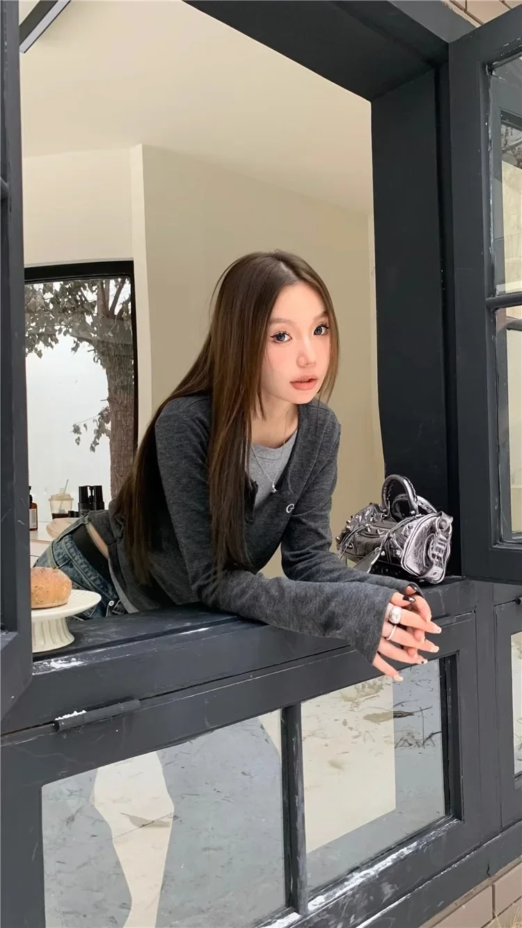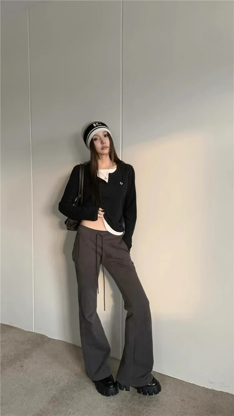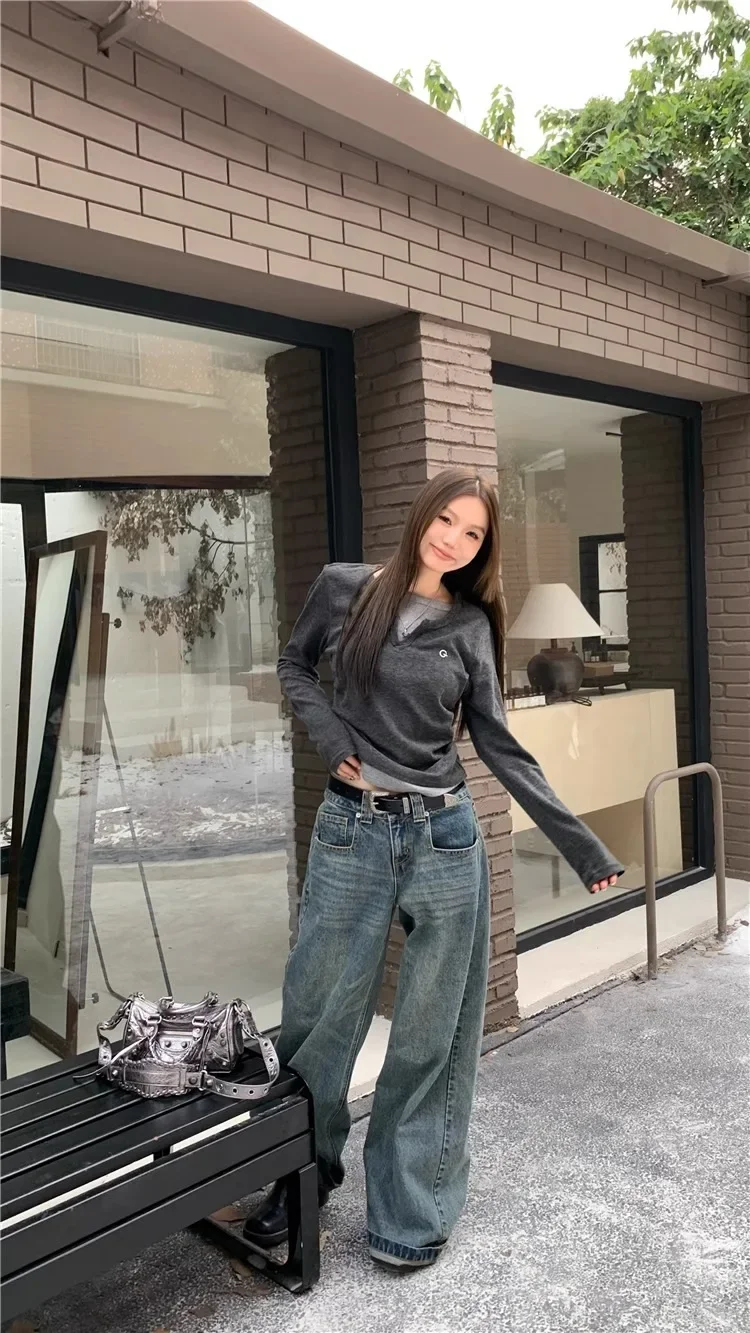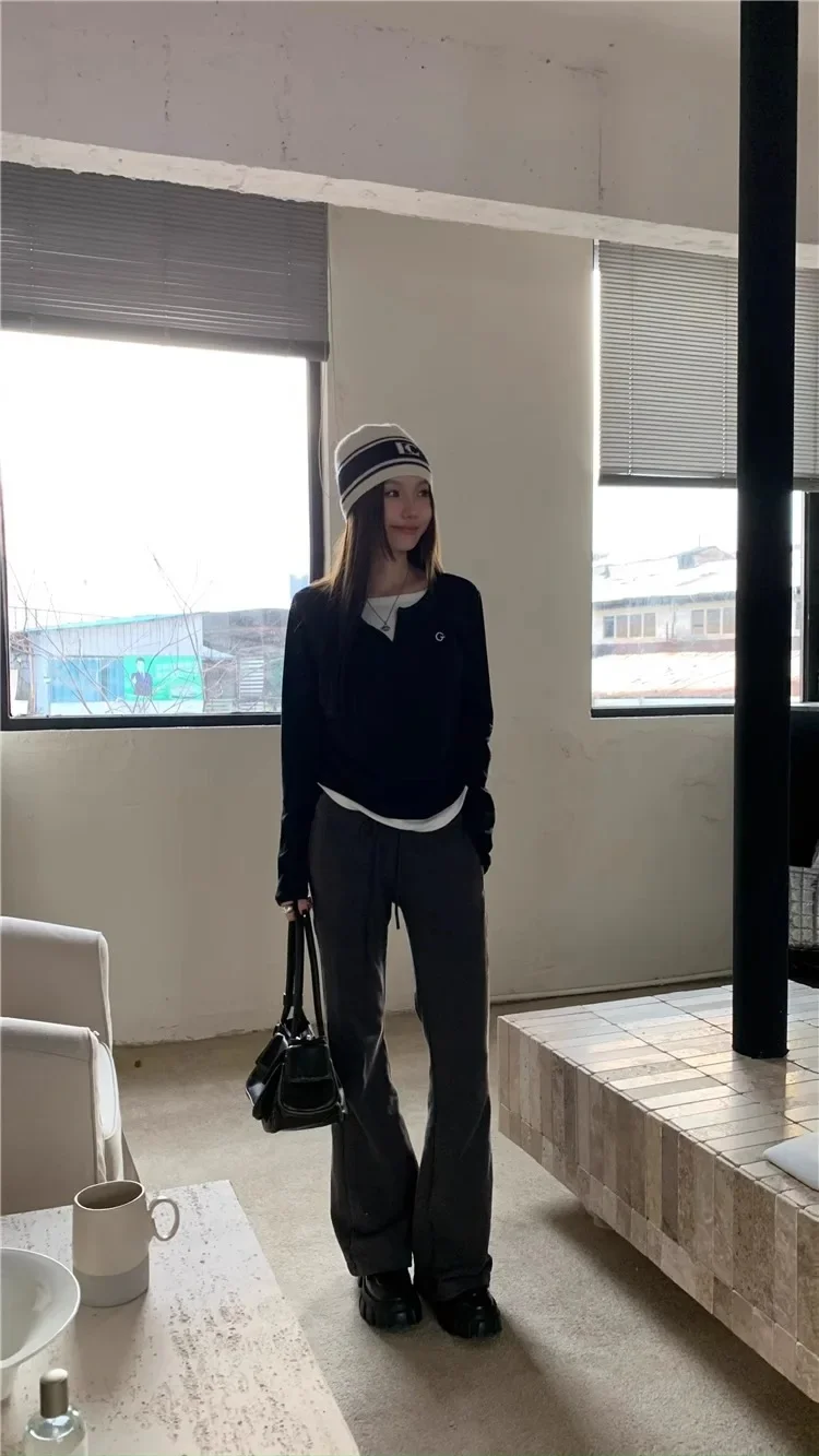 2024 Autumn Winter Long Sleeves Korean Fashion Style O-neck Tshirt For Women Fake two items T-shirts Ladies Top Tee Clothes