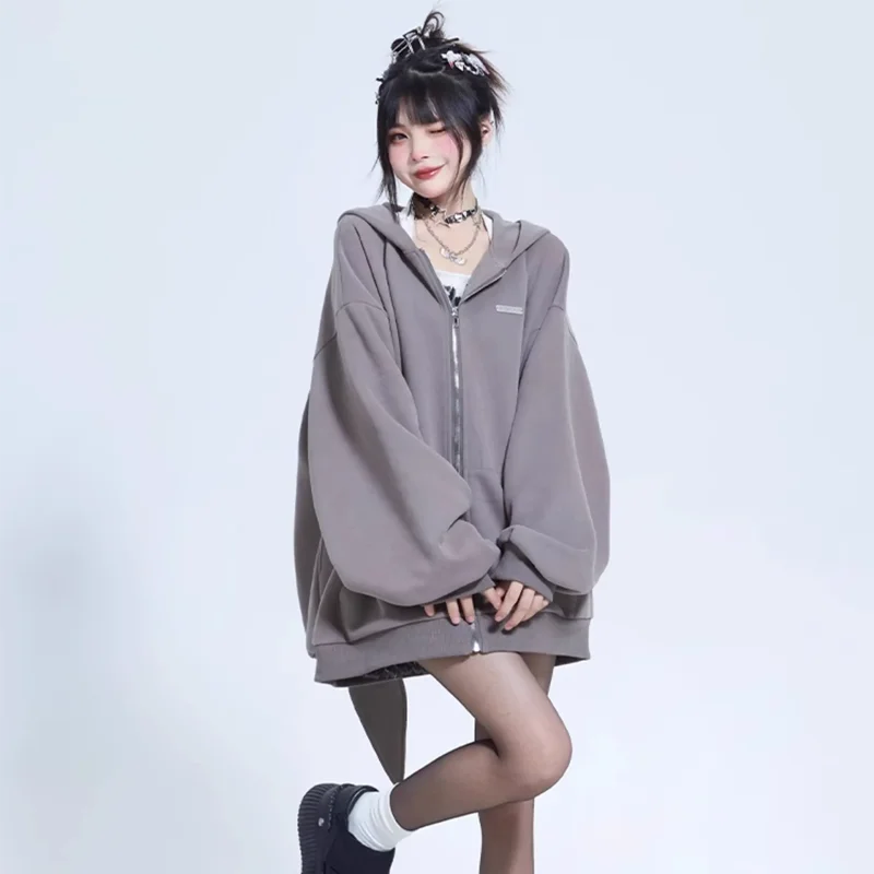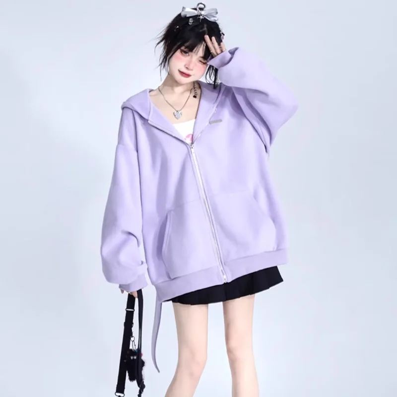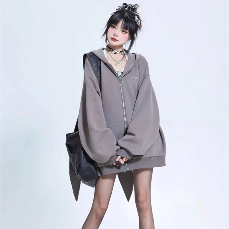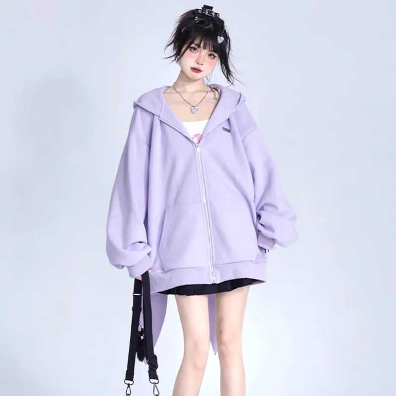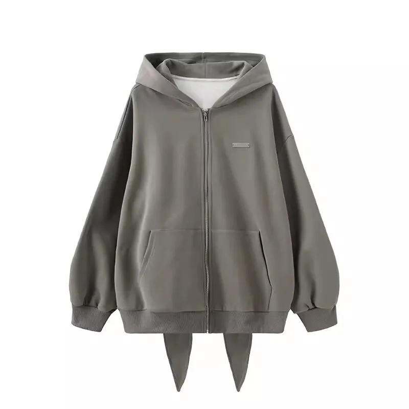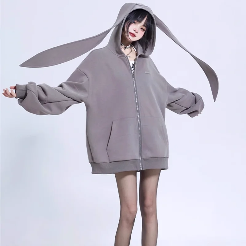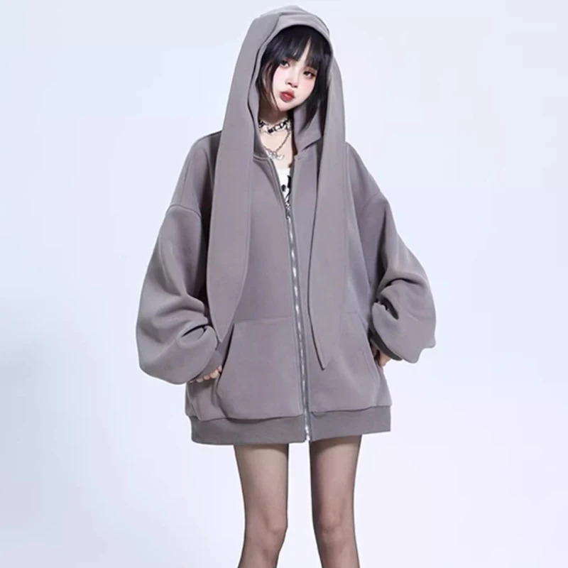 2024 Autumn Winter New Rabbit Extra Long Ears Hooded Sweatshirt Casual Loose Zipper Cardigan Hoodie Solid Zip Up Y2k Streetwear