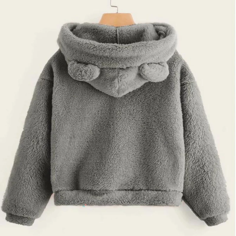 2024 Autumn Winter Women Long Sleeves Sweater Hoodies Casual Comfortable Solid Color Little Bear Hat Coat Loose Female Outwear