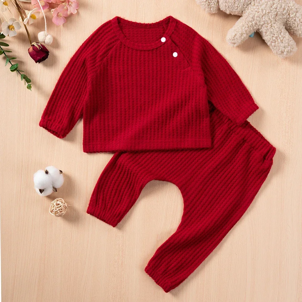 2024 Baby Solid Suit Boys Girls Long-sleeved Top Pants 2Pcs Clothes Sets Fashion Simple Casual Comfortabl Winter Fall Outfits