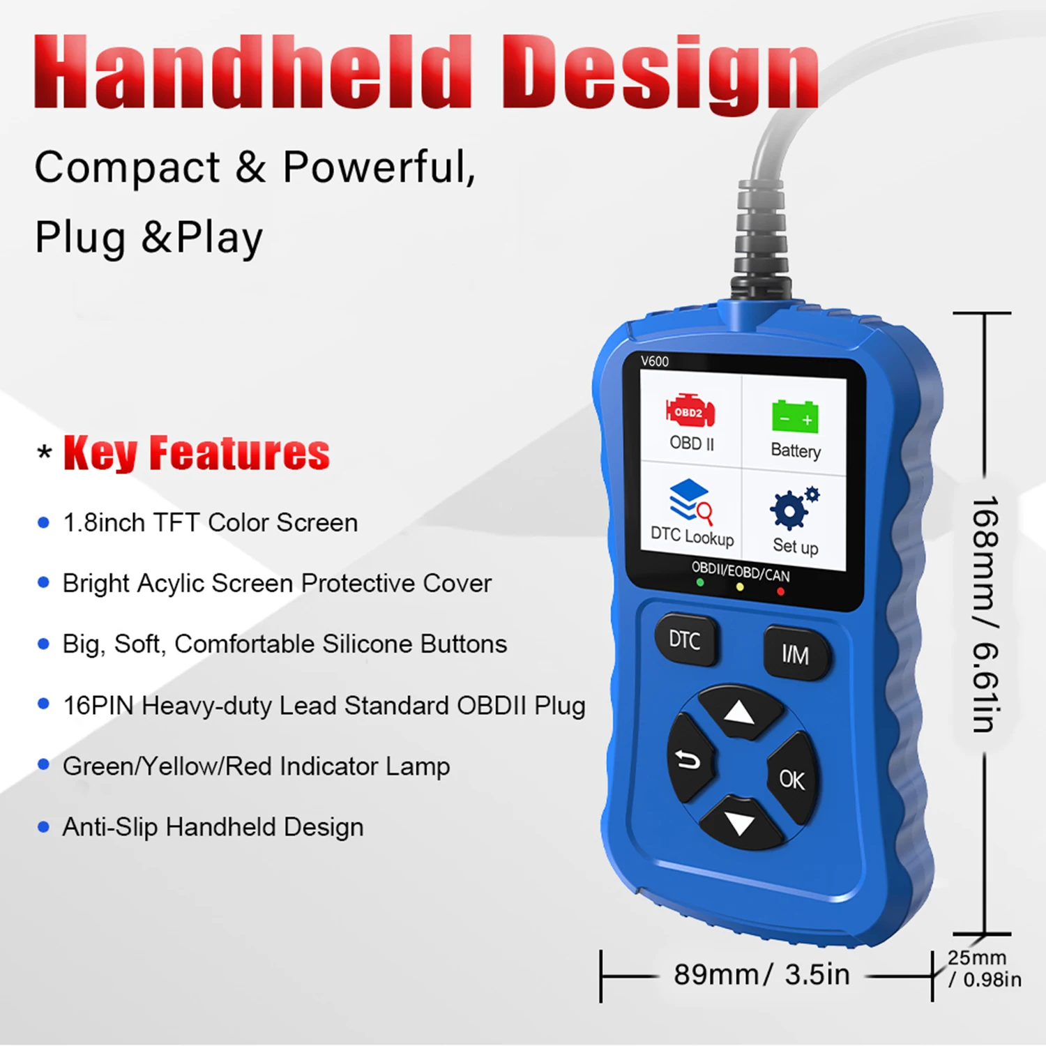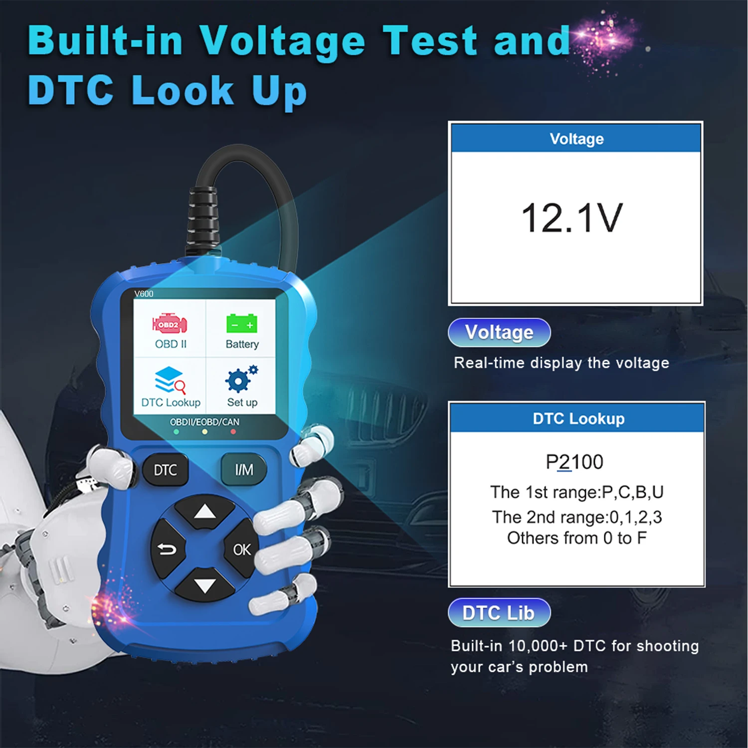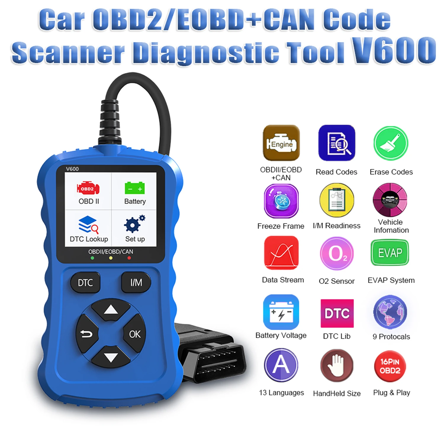 2024 Bule V600 Car Diagnostic Tool OBD2/EOBD 12V Plug & Play Can Code Scanner for Vehicle Diagnostics