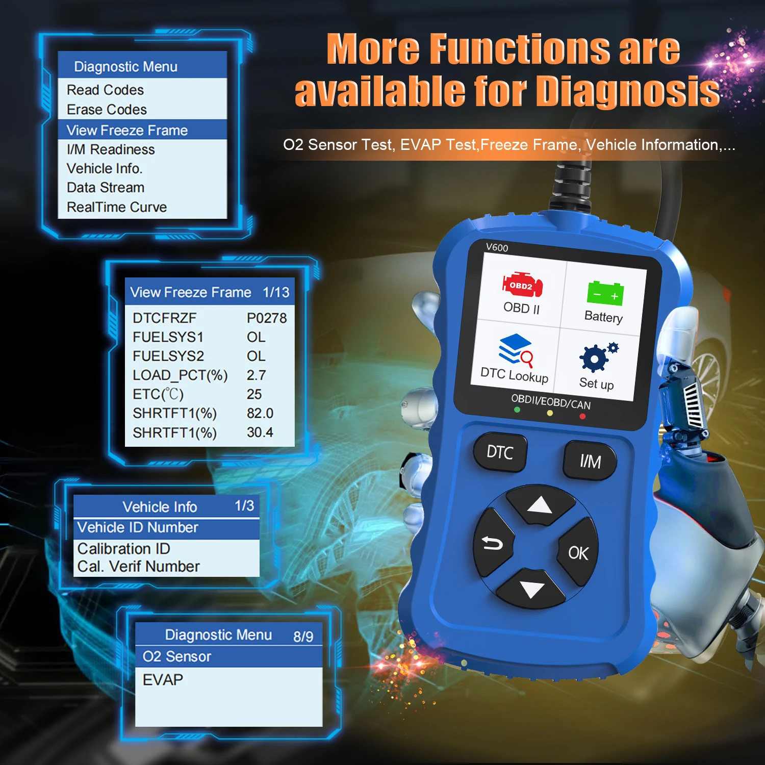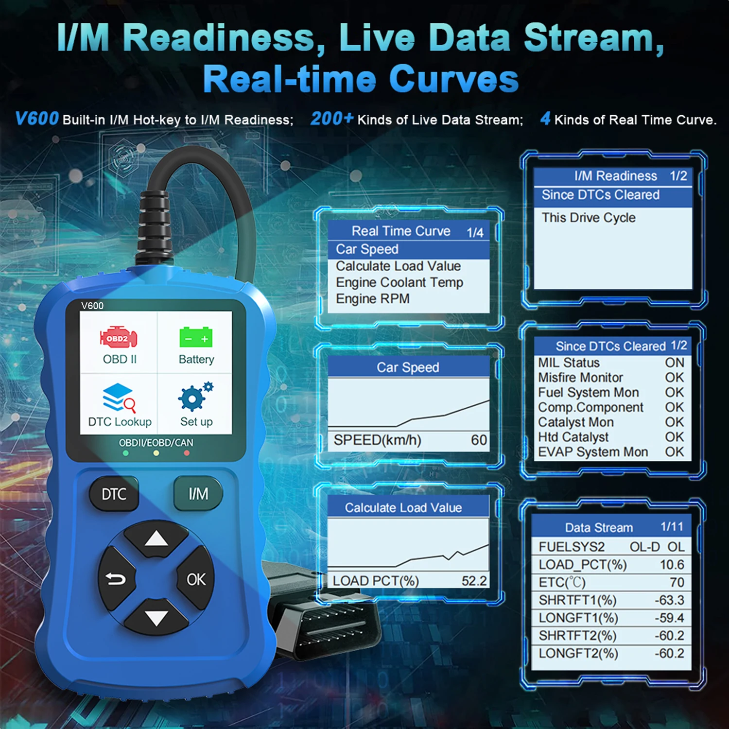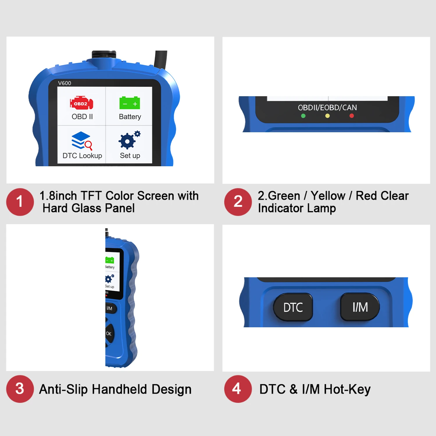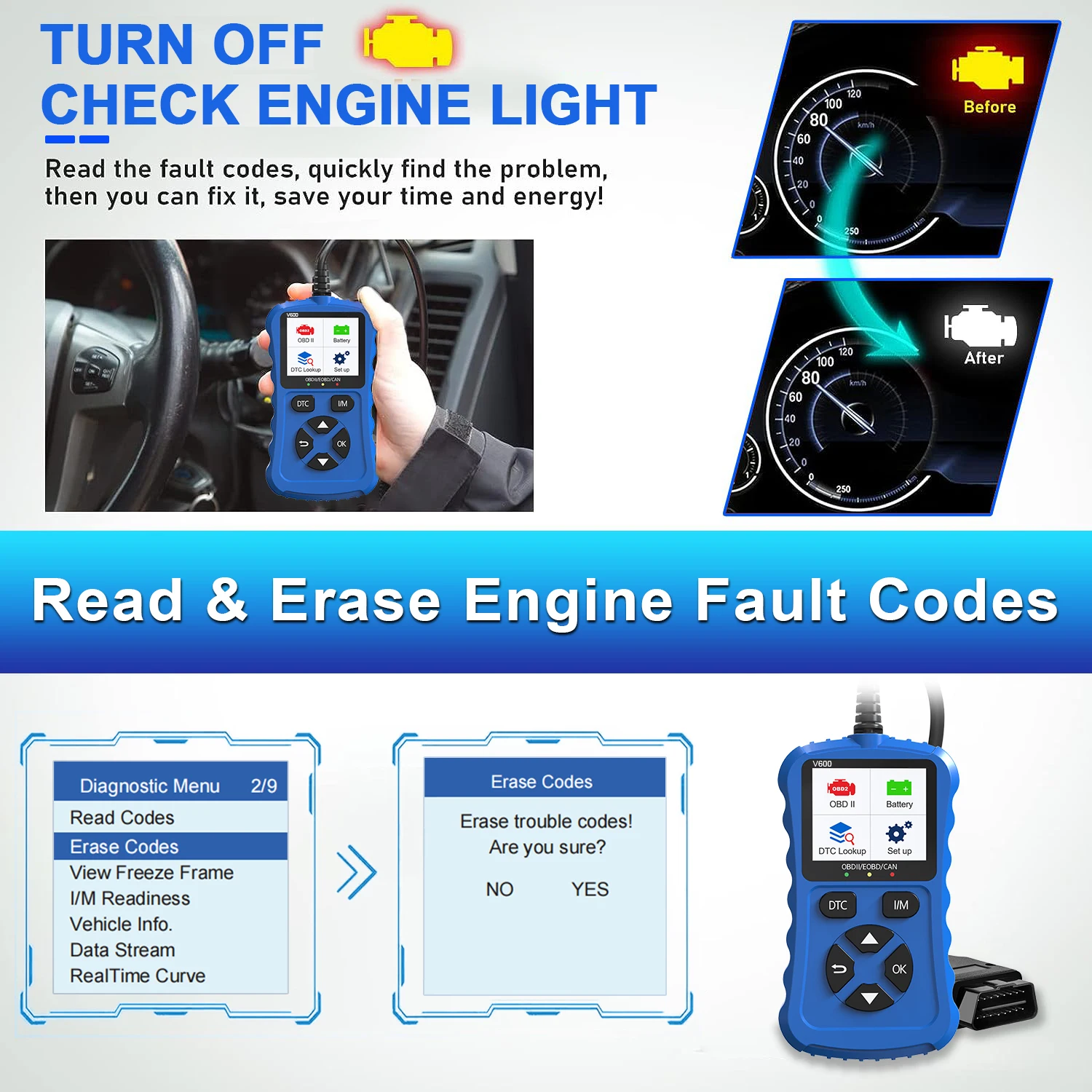 2024 Bule V600 Car Diagnostic Tool OBD2/EOBD 12V Plug & Play Can Code Scanner for Vehicle Diagnostics